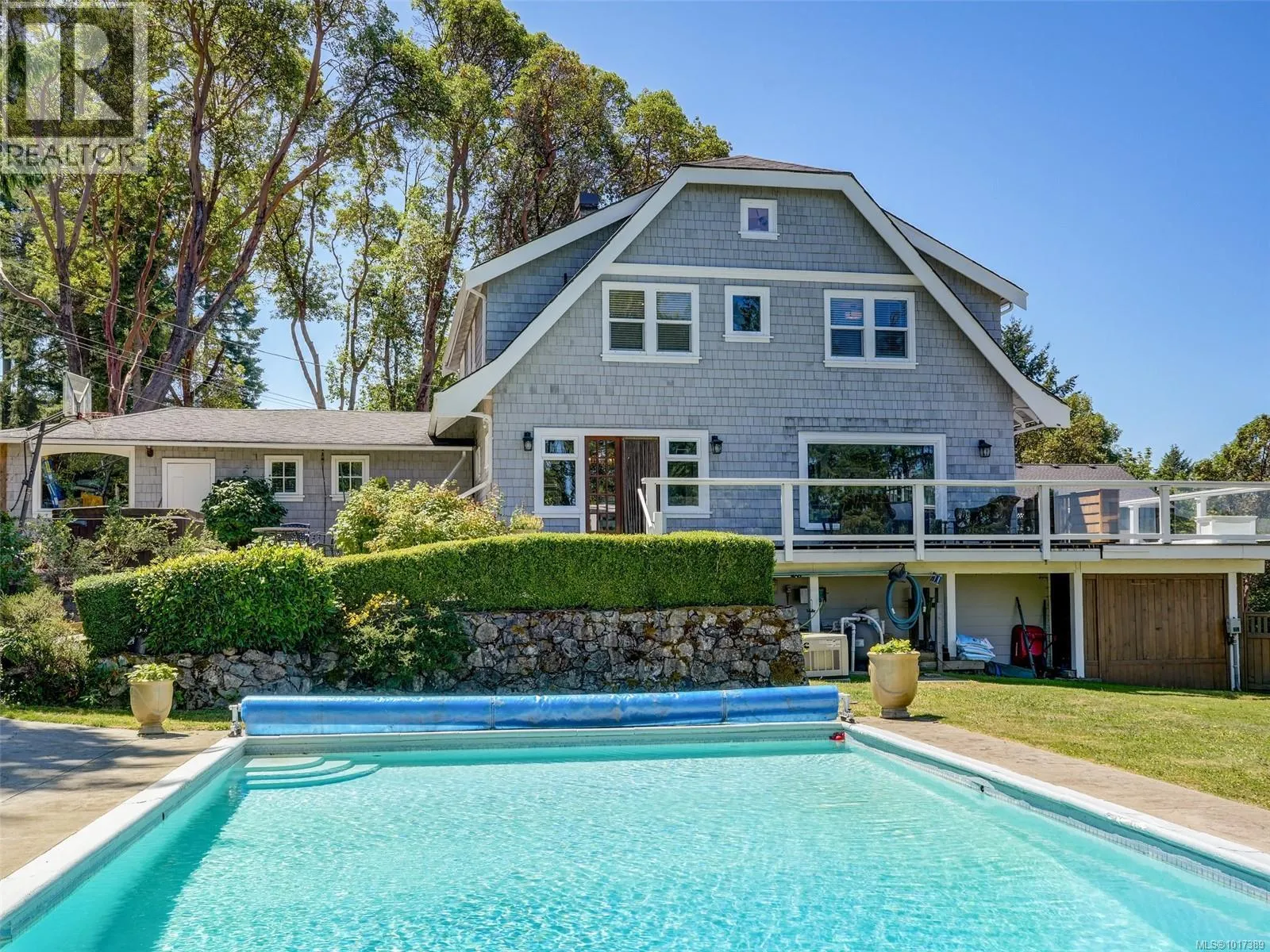 The Old Mill House, an historic landmark nearing its centennial milestone. Nestled just a three minute stroll from the Shawnigan Ski Club with all the lakeside amenities. This .61 acre estate has full off grid capabilities (see supplements for details). Five bedrooms, 4.5 baths marrying 4,650 sq ft with grace and grandeur. Entertain with ease on the main floor, which flows seamlessly outdoors to a pool framed by lush gardens. A circular driveway and generous parking to accommodate several guests. Inside the elegant open rooms offer lake views, a gourmet kitchen, a spacious dining room, three cozy fireplaces, and a wrap around deck. The primary suite is a private sanctuary, featuring a spa inspired en suite and a spacious walk in closet. Additional accommodations with views included and an airy upper loft bedroom. Whether starting new family traditions or celebrating long standing ones, the Old Mill House offers timeless serenity and an idyllic retreat for generations to come. (id:27476)