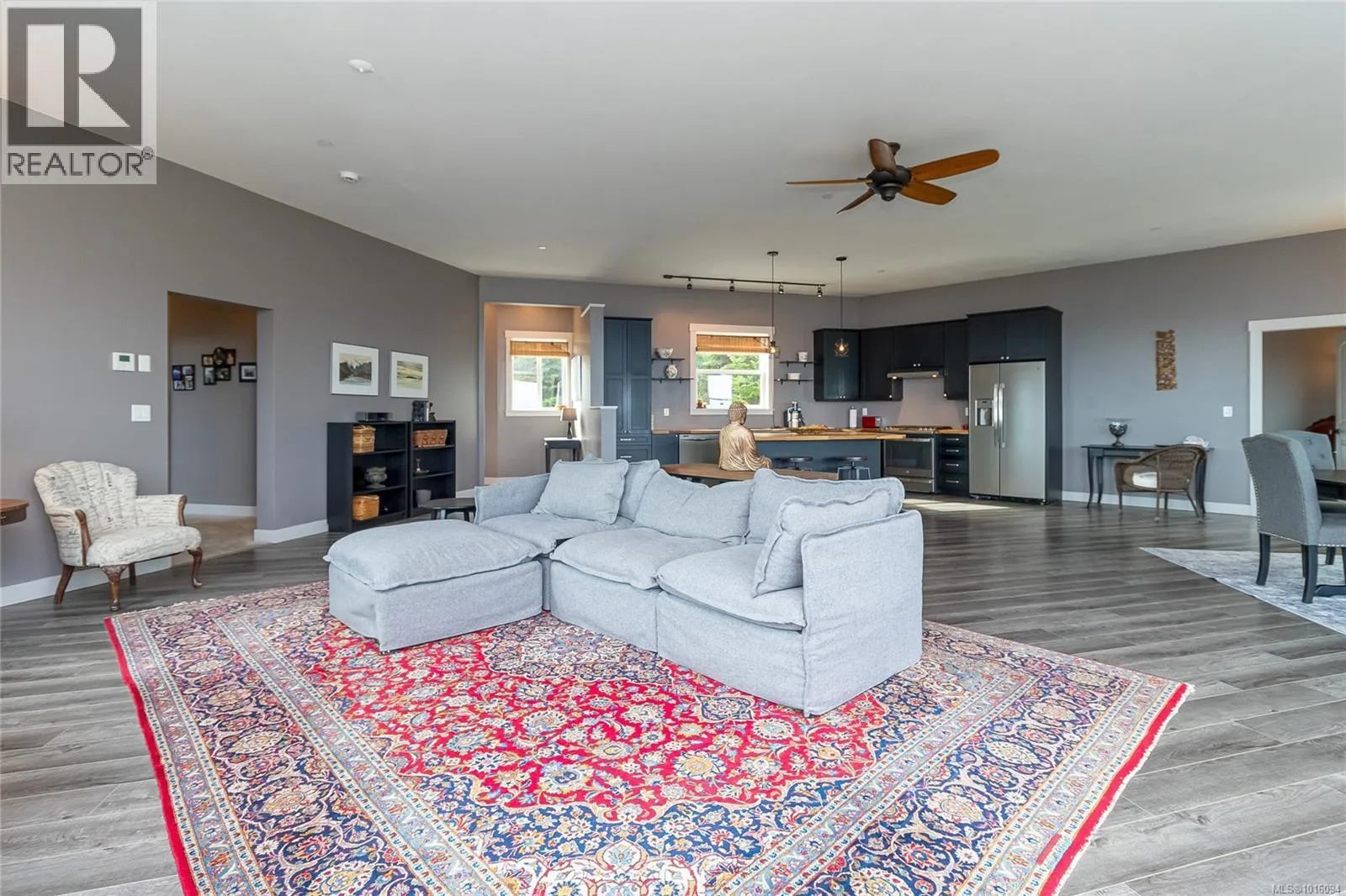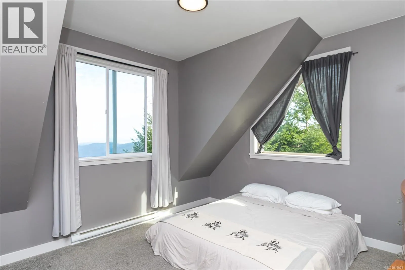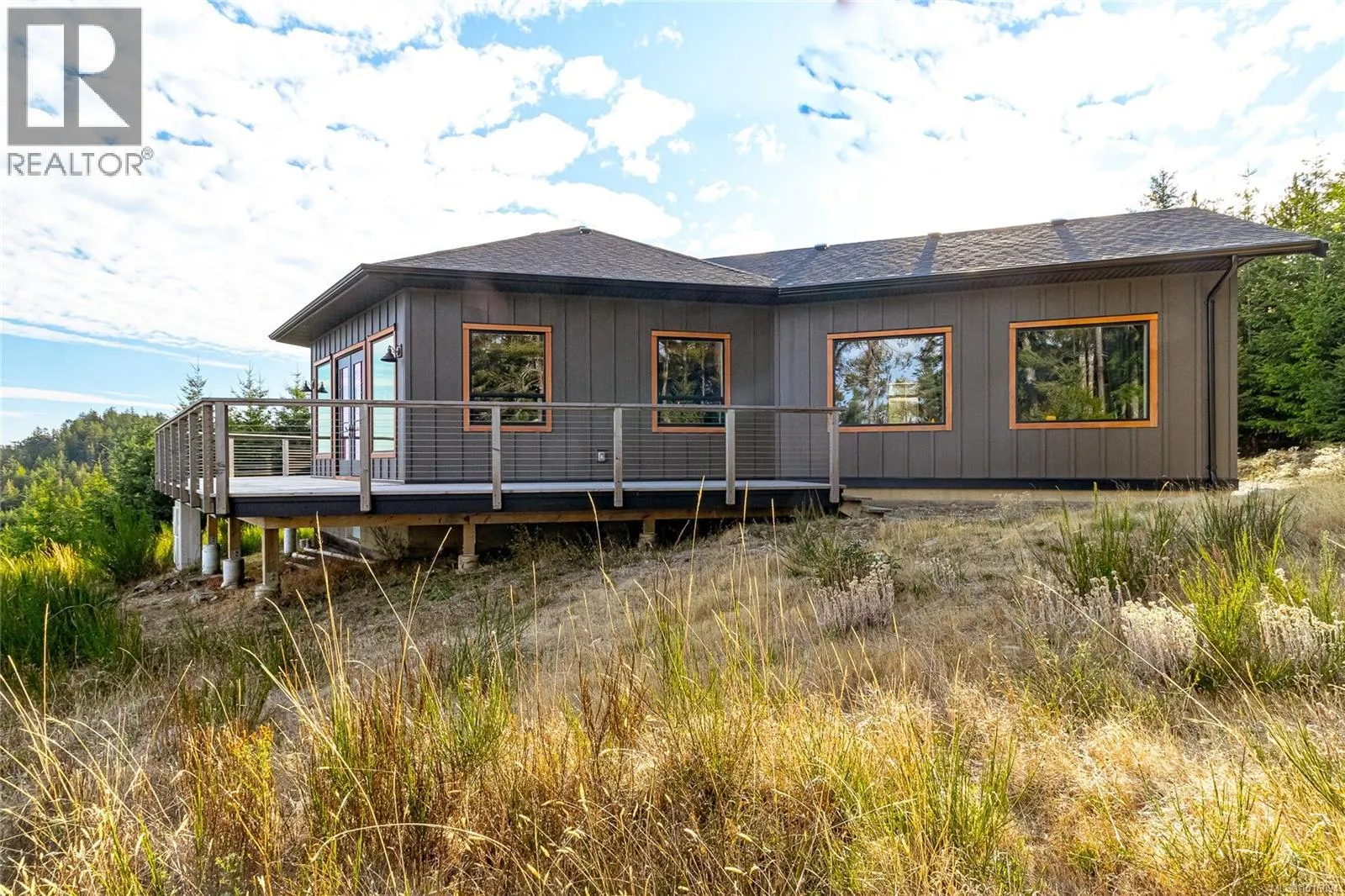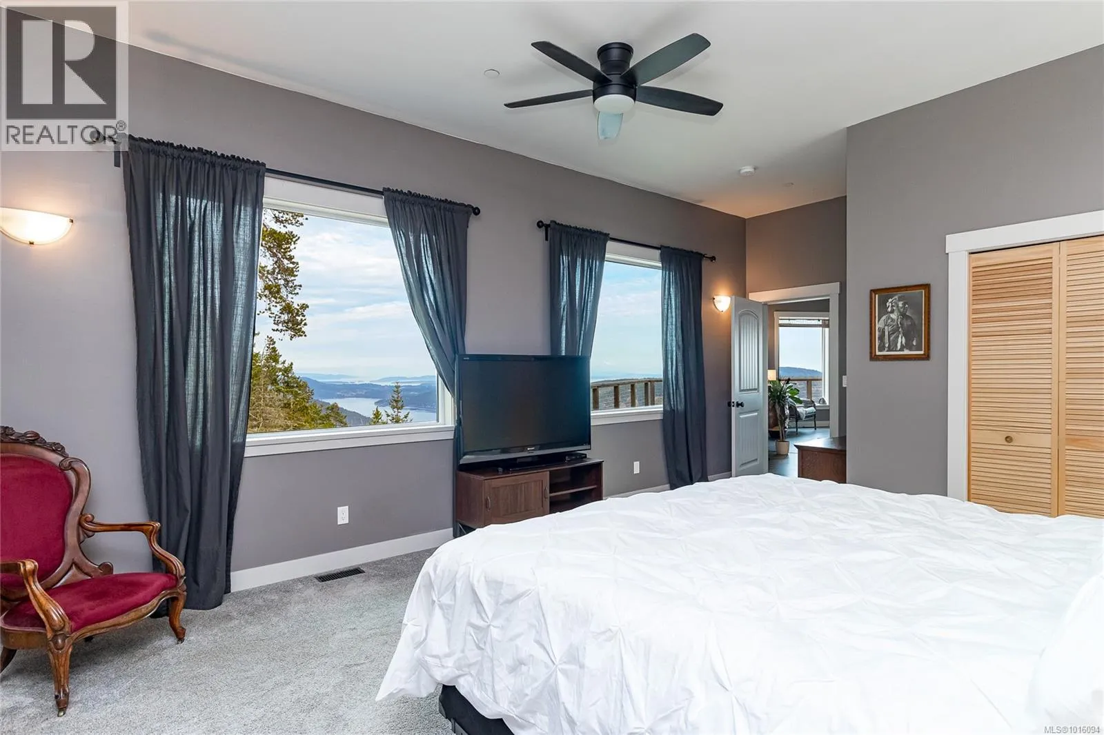 Perched on a mountainside in Goldstream Heights, this breathtaking 5.9 acre estate offers exceptional privacy and panoramic views of Finlayson Arm, Mt. Baker, the Gulf & San Juan Islands, downtown Victoria, and the Peninsula. The property features a modern 3-bed, 2-bath rancher (2,030 sq. ft.) and a detached 1-bed, 1-bath carriage house (1,025 sq. ft.) with a 1,225 sq. ft. triple garage/shop. Both dwellings are mobility-friendly, offering single-level living and ground-level access. Designed to capture the views from nearly every room, the home showcases 10â ceilings, oversized windows, an open-concept layout, a gourmet kitchen with propane range, and a spa-inspired ensuite. Enjoy outdoor living on the 600 sq. ft. wraparound deck. Additional features include a fully ducted heat pump, state-of-the-art fire suppression system, and low-maintenance landscaping. Located on a quiet cul-de-sac with direct access to horse and hiking trails, the Sooke Hills Wilderness Trail, and Wrigglesworth Lake, all just 20 minutes to Langford or Mill Bay. (id:27476)