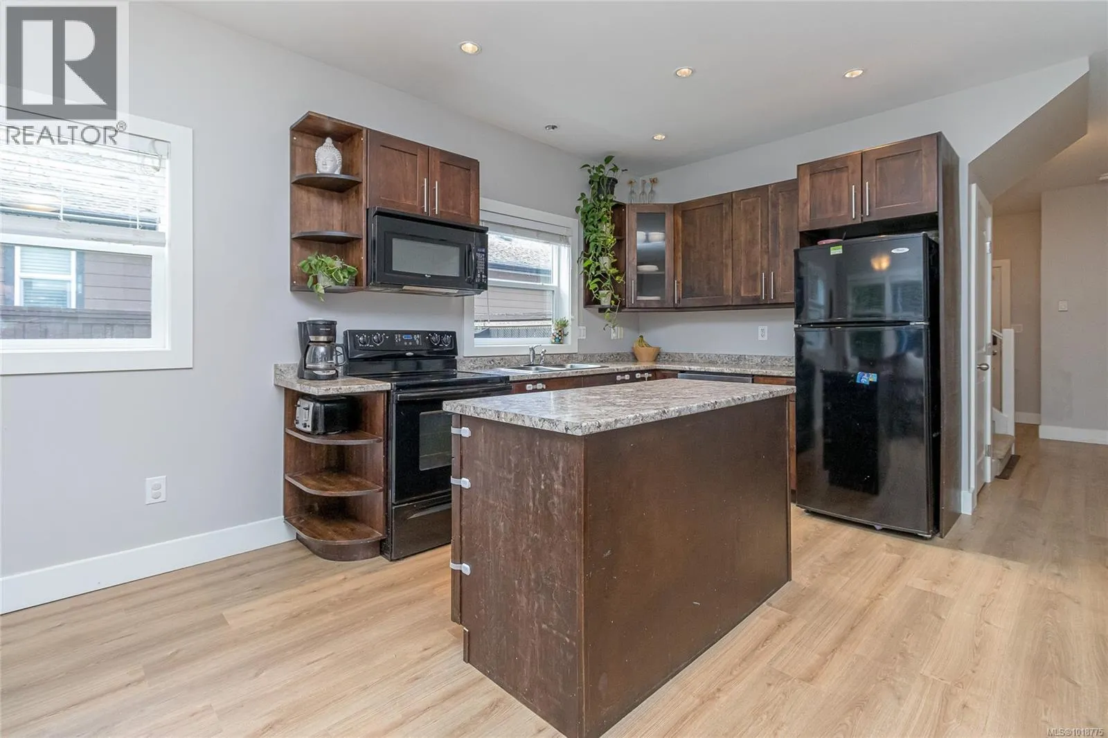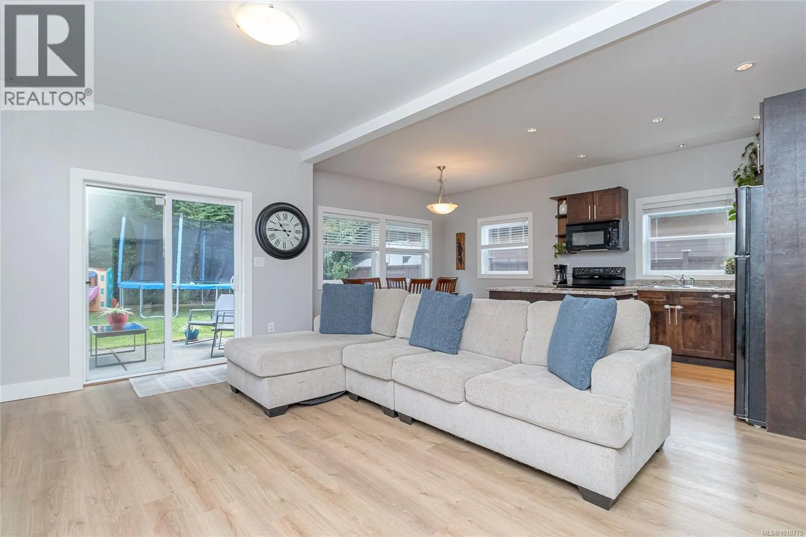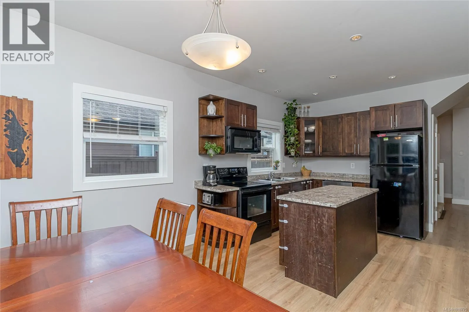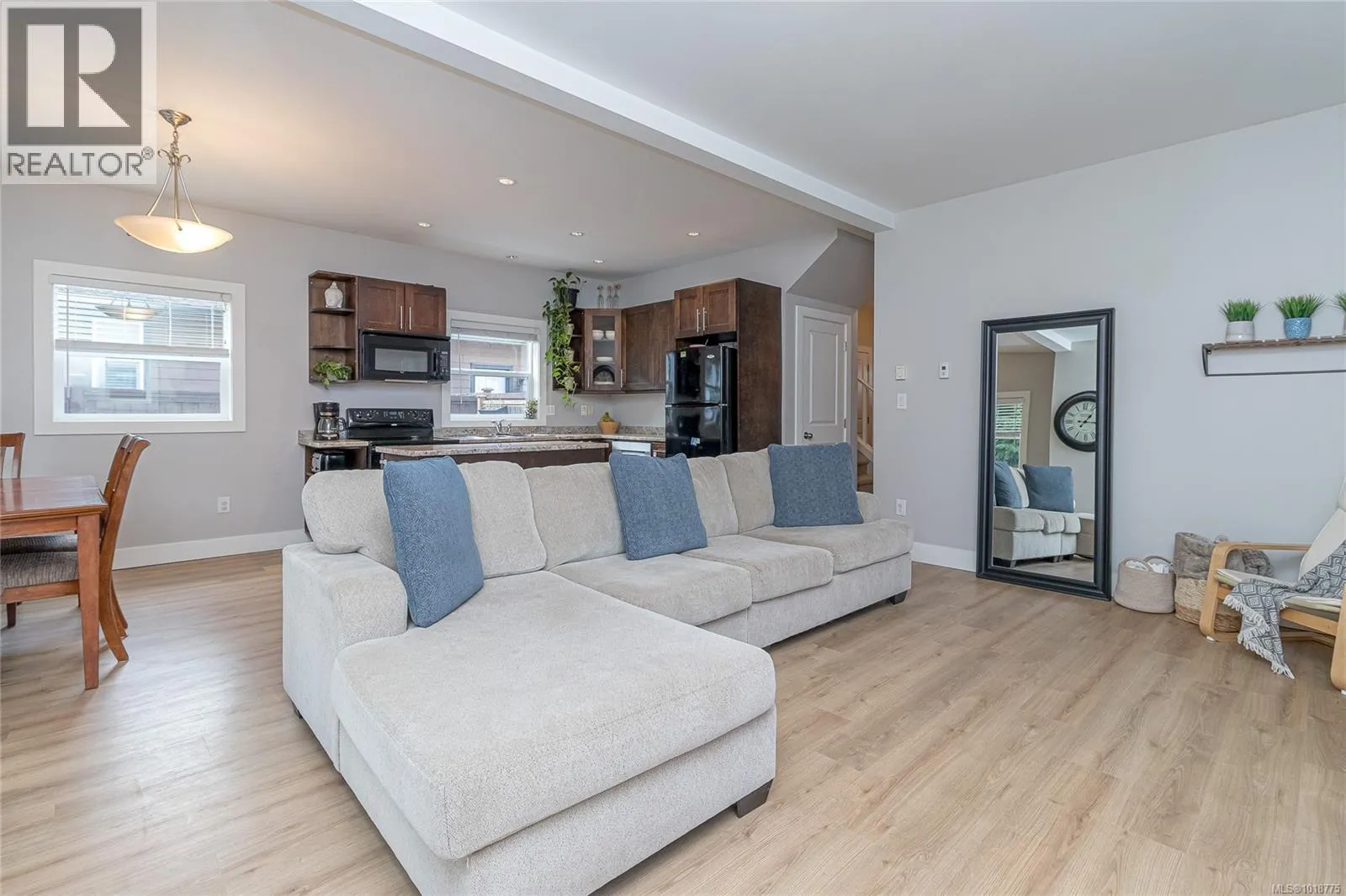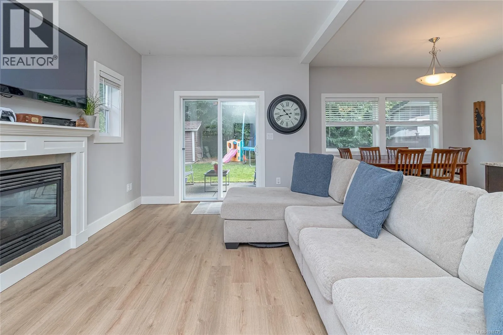 The family-friendly Shawnigan Station neighbourhood, just 15 minutes from Langford, is ready to welcome you to this 3 bed, 3 bath, well-maintained home. The main level features an open plan living area with 9â ceilings, gas fireplace, 2pc powder room, and backyard access. The bright kitchen boasts brand new countertops, plenty of cabinet space, a large island connecting living and dining areas, and brand new floors throughout. Upstairs, the spacious primary suite includes a walk-in closet and 4pc ensuite, plus 2 additional bedrooms, 4pc main bath, and laundry. Enjoy endless hot water with the new On Demand system. The fully fenced backyard backs onto greenspace, offering a private parklike setting with garden space and storage shed. Enjoy lake summers, Goldstream Park hikes, and Mill Bay beach access. Offered at $699,000. (id:27476)
