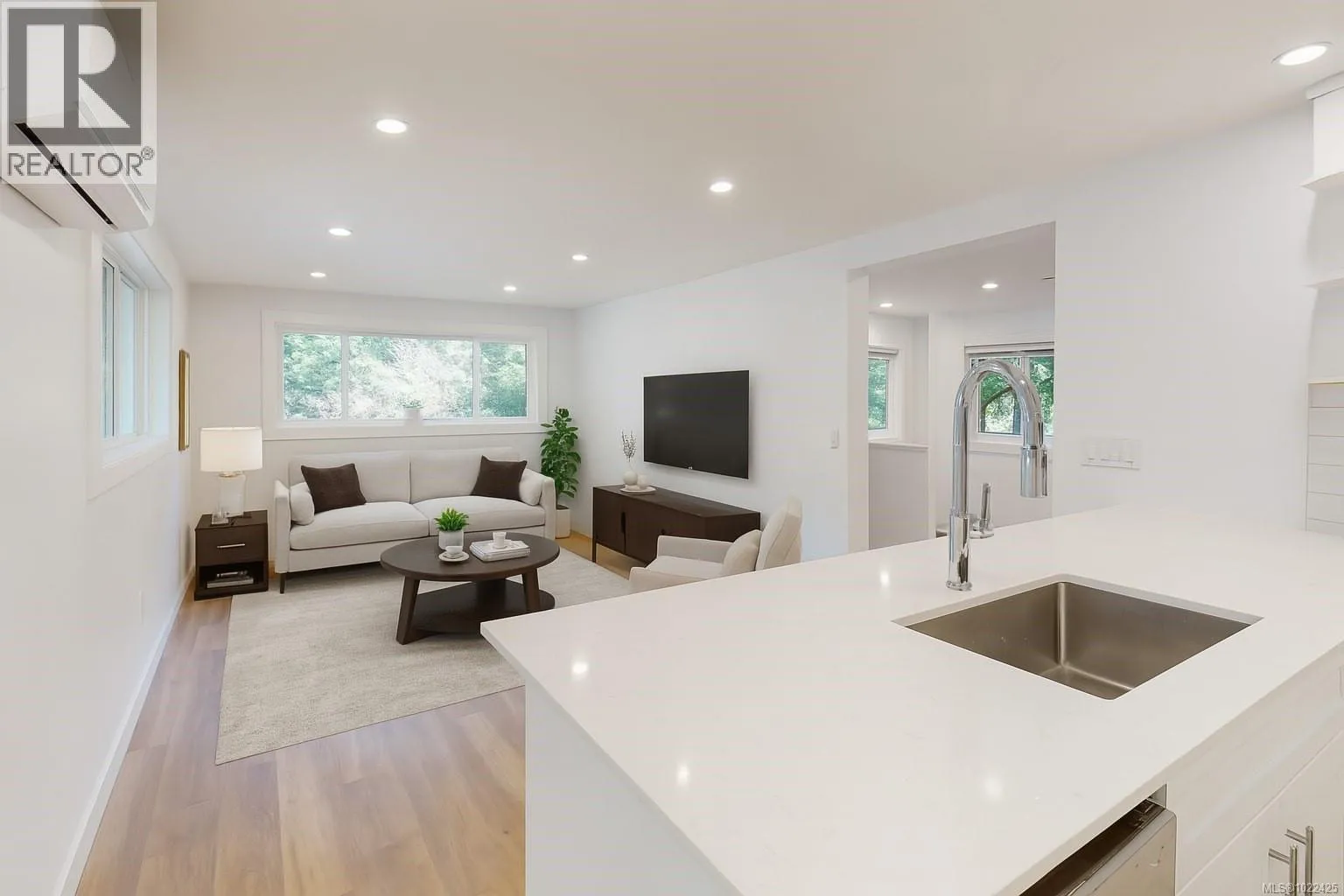 This beautifully renovated home is a rare gem that offers exceptional space, flexibility, and privacy. With 3 bedrooms and 3 bathrooms, plus a separate flex room with its own entrance, itâs perfect for a home office, gym, or even a fourth bedroom. One of the bedrooms is self-contained with a private entrance and bathroomâideal for guests or family members seeking independence. The entire home has been thoughtfully updated from top to bottom, featuring new windows and doors, a heat pump for year-round comfort, quartz countertops, brand new appliances, and high-quality finishes throughout. The open-concept layout fills the living and kitchen areas with natural light, and the primary bedroom includes a spacious ensuite. A generous pantry and laundry room add to the functionality. Located on a double lot, quiet dead-end road with only a neighbor on one side, this move-in-ready home offers both tranquility and convenience. Just a short walk to Shawnigan lakefront recreation and amenities. (id:27476)