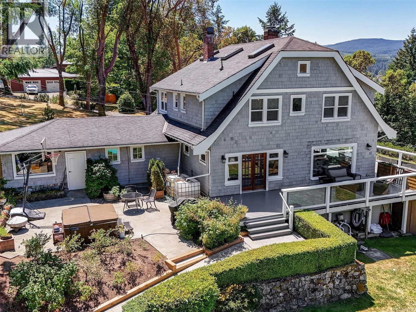 The Old Mill House, an historic landmark nearing its centennial milestone. Nestled just a three minute stroll from the Shawnigan Ski Club with all the lakeside amenities. This .61 acre estate has full off grid capabilities (see supplements for details). Five bedrooms, 4.5 baths marrying 4,650 sq ft with grace and grandeur. Entertain with ease on the main floor, which flows seamlessly outdoors to a pool framed by lush gardens. A circular driveway and generous parking to accommodate several guests. Inside the elegant open rooms offer lake views, a gourmet kitchen, a spacious dining room, three cozy fireplaces, and a wrap around deck. The primary suite is a private sanctuary, featuring a spa inspired en suite and a spacious walk in closet. Additional accommodations with views included and an airy upper loft bedroom. Whether starting new family traditions or celebrating long standing ones, the Old Mill House offers timeless serenity and an idyllic retreat for generations to come. (id:27476)