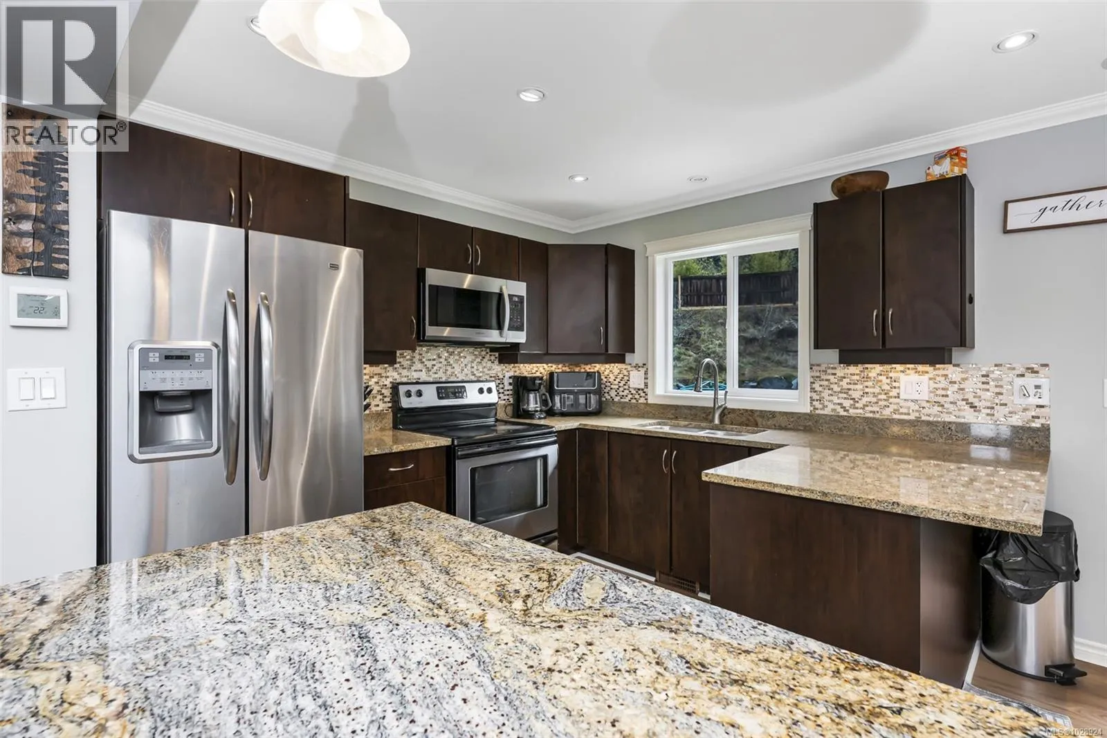 Situated on one of the largest lots in Shawnigan Station, this 4 bed, 3 bath home offers a functional layout and plenty of flexibility for growing families. The entry level features a rec room, laundry, bedroom, and full bath, making it ideal for guests, teens, extended family, or a home office setup. Upstairs, the main living level includes the kitchen, dining and living spaces, along with 3 additional bedrooms and 2 full bathrooms. The fully fenced backyard offers room to play, garden, and entertain. Set in a popular family-friendly neighbourhood near schools and everyday amenities, this home also puts you close to everything people love about Shawnigan Lake, with nearby trails for hiking, biking, and dog walking, easy access to the lake and surrounding outdoor recreation, plus all the amenities and variety of dining options in the Village. A great opportunity to enjoy space, community, and lifestyle all in one. (id:27476)