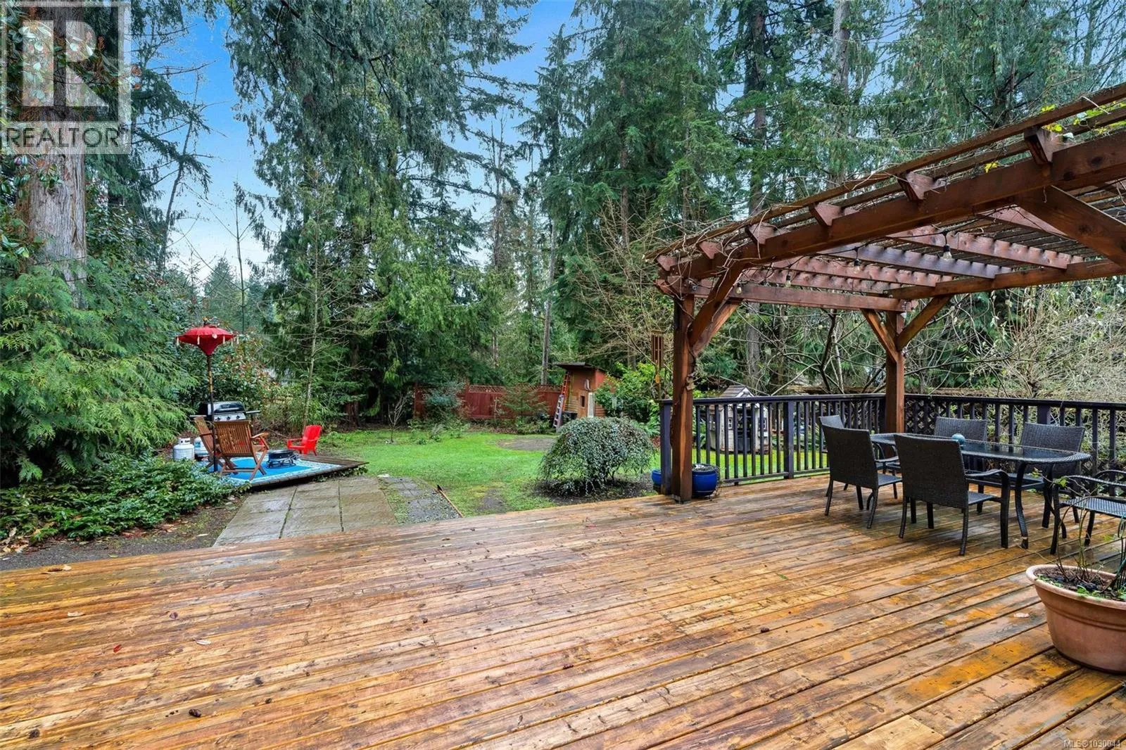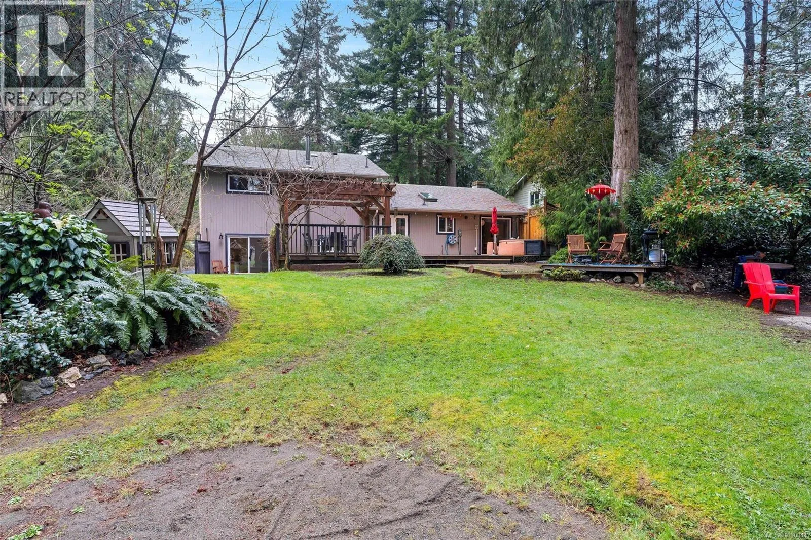 Charming 4 bed/3 bath family home in the Shawnigan Beach Estates on 1/3 of an acre. This West Coast inspired home features a large sunken living room, vaulted skylit ceiling and an electric fireplace. Both the kitchen/eating area and dining room open to a spacious deck. Sliding glass doors to the private back yard, pergola, hot tub and grill patio. Upstairs are 3 bedrooms, bathroom and spacious primary bedroom w/private balcony, huge walk-in closet and ensuite. Downstairs is the family room w/woodstove, bedroom with separate entrance/deck and 2 piece bathroom, laundry room w/storage. Flex space next to the garage could be an office/studio. A private setting with established gardens and mature fruit and nut trees, the side and back are greenbelt-protected. Relax around the fire pit to enjoy this wildlife wonderland! Plenty of parking including room for boat/RV. Amazing neighbourhood near excellent schools, friendly people, hiking trails, Shawnigan Hills Park and minutes from the lake. (id:27476)