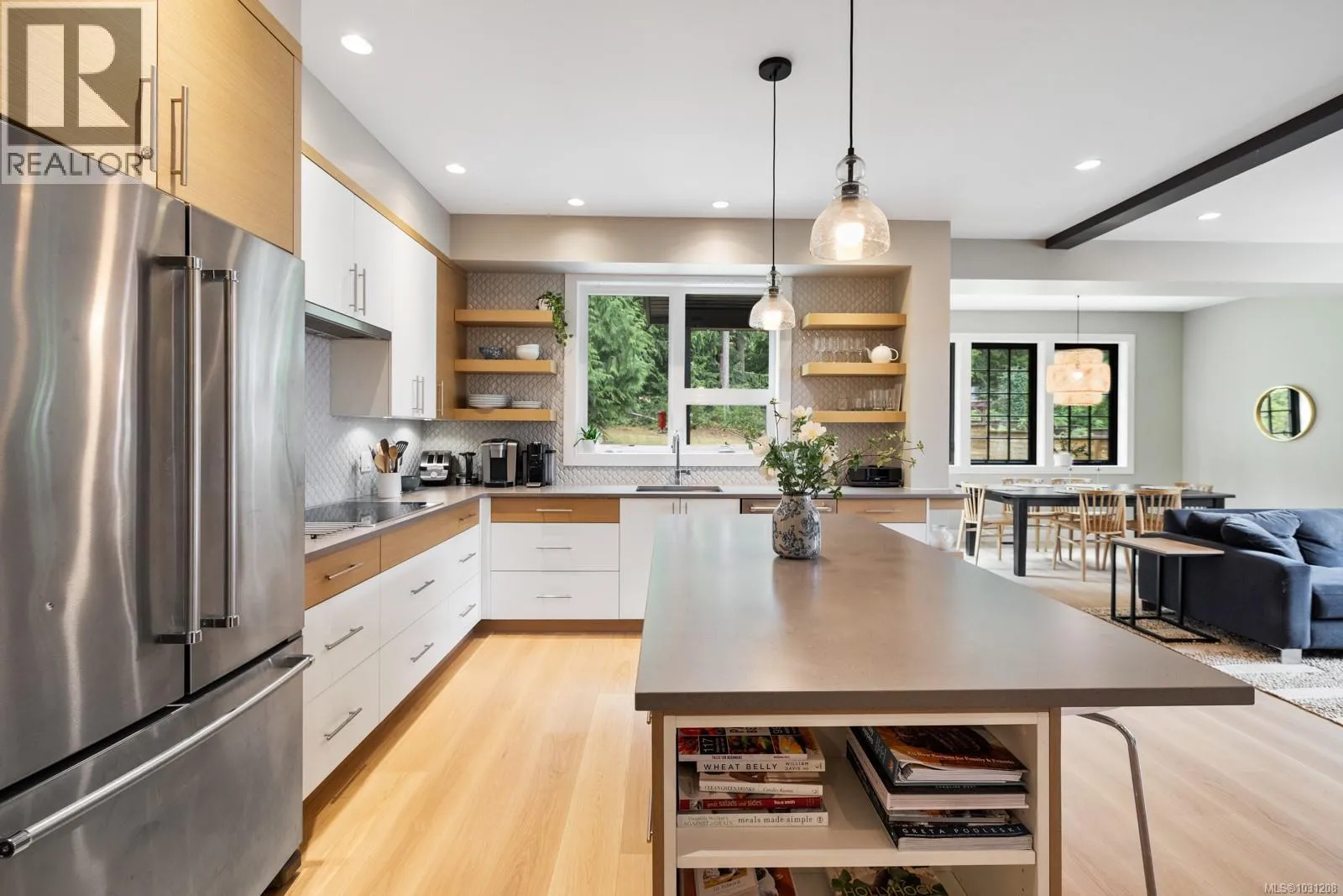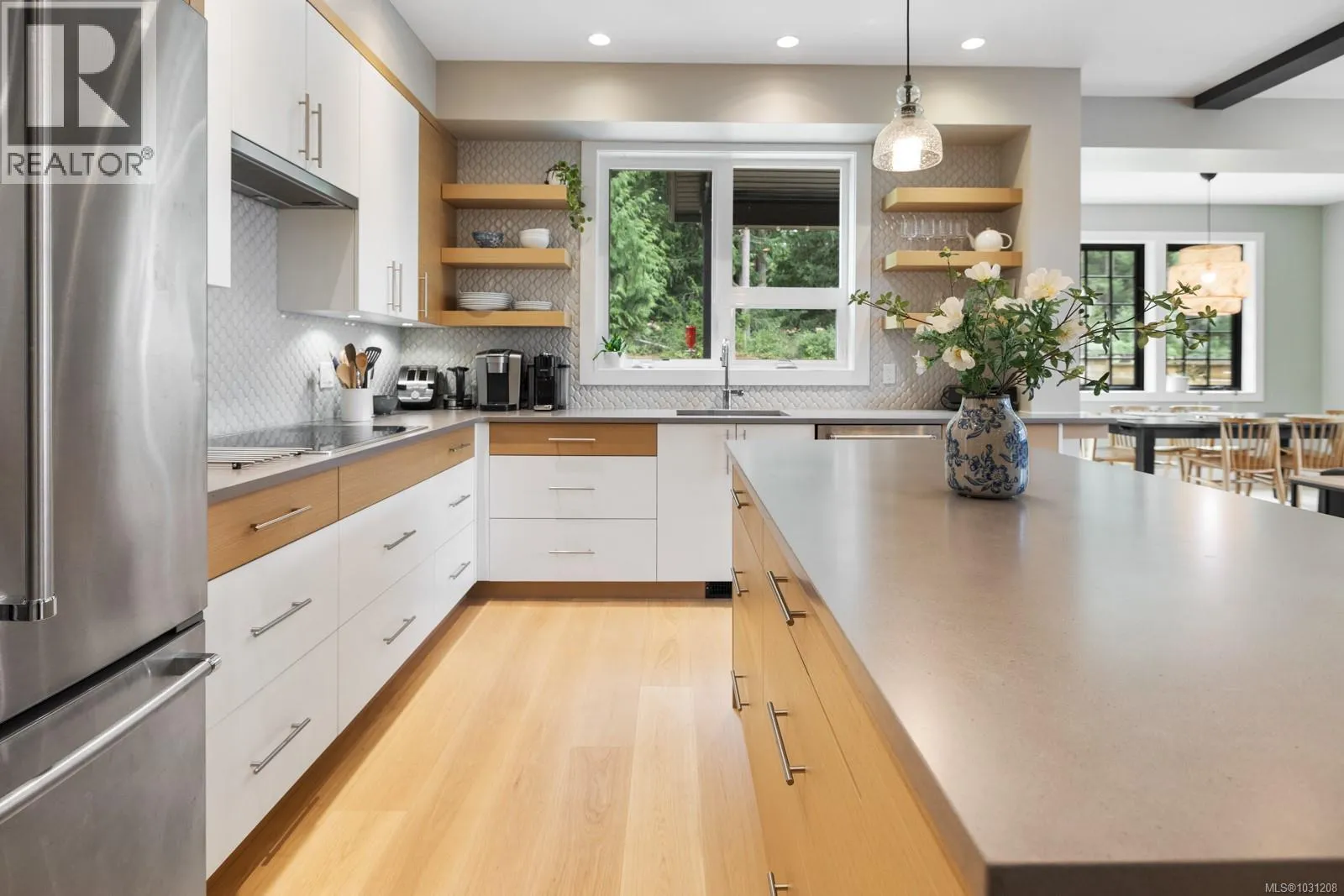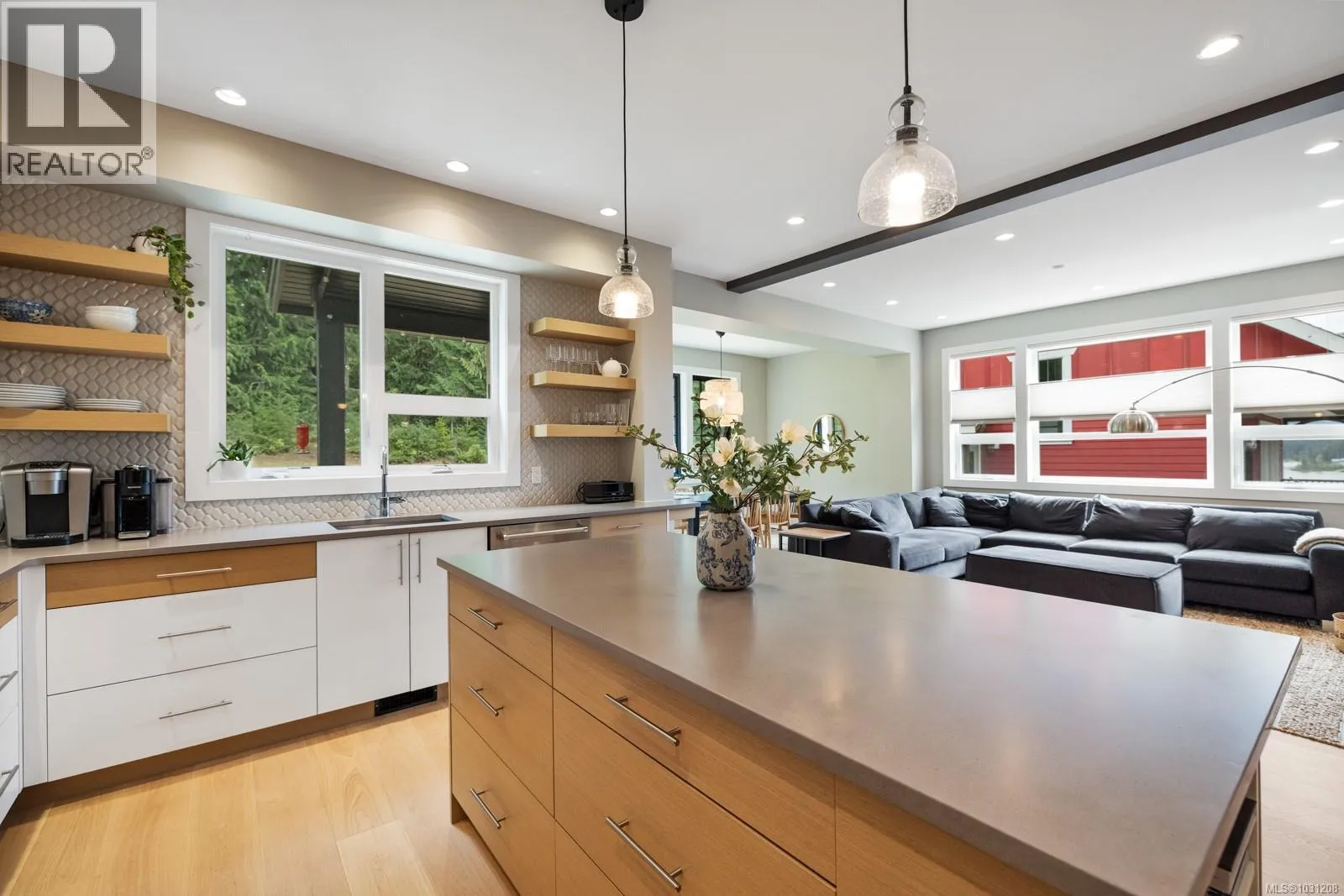 Beautifully maintained custom designed contemporary West Coast home. Nestled in a private location with stunning lake views, this property offers direct access to the lake and nearby walking trailsâan ideal blend of nature and design. Inside, the 3-bedroom + den, 2.5-bath layout showcases thoughtful craftsmanship and elegant finishes. The custom kitchen features quartz countertops and flows seamlessly into the open-concept living space, all grounded by engineered white oak hardwood flooring. Vaulted ceilings enhance the sense of space and light, while the second-level deck offers breathtaking viewsâperfect for morning coffee or evening gatherings. The private backyard is a true retreat, complete with patio and fire pit for cozy nights under the stars. Additional features include attached garage, HVAC system, and den ideal for a home office or guest space. This home is a must-see for those seeking a peaceful lifestyle with refined architectural detail and proximity to nature. (id:27476)