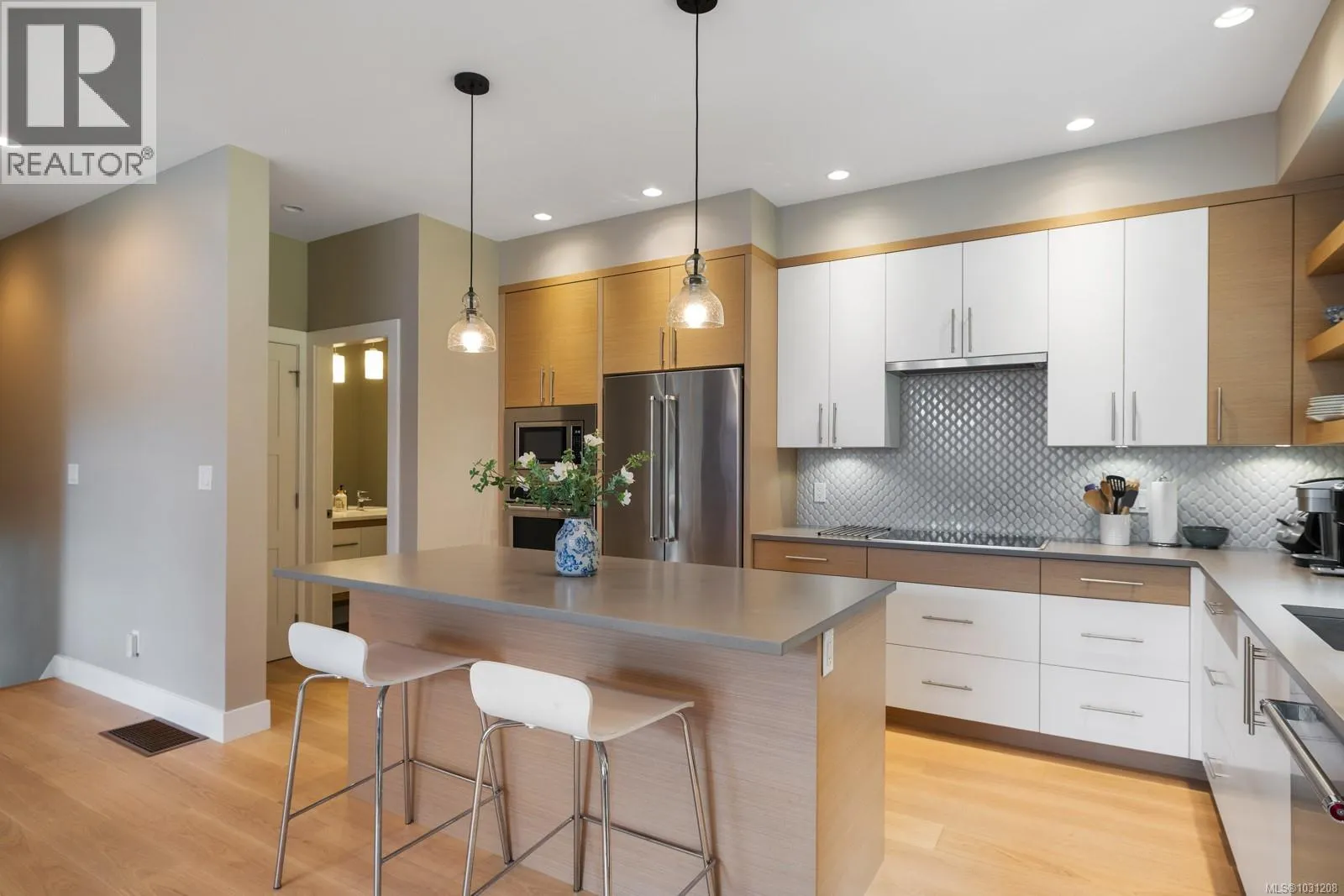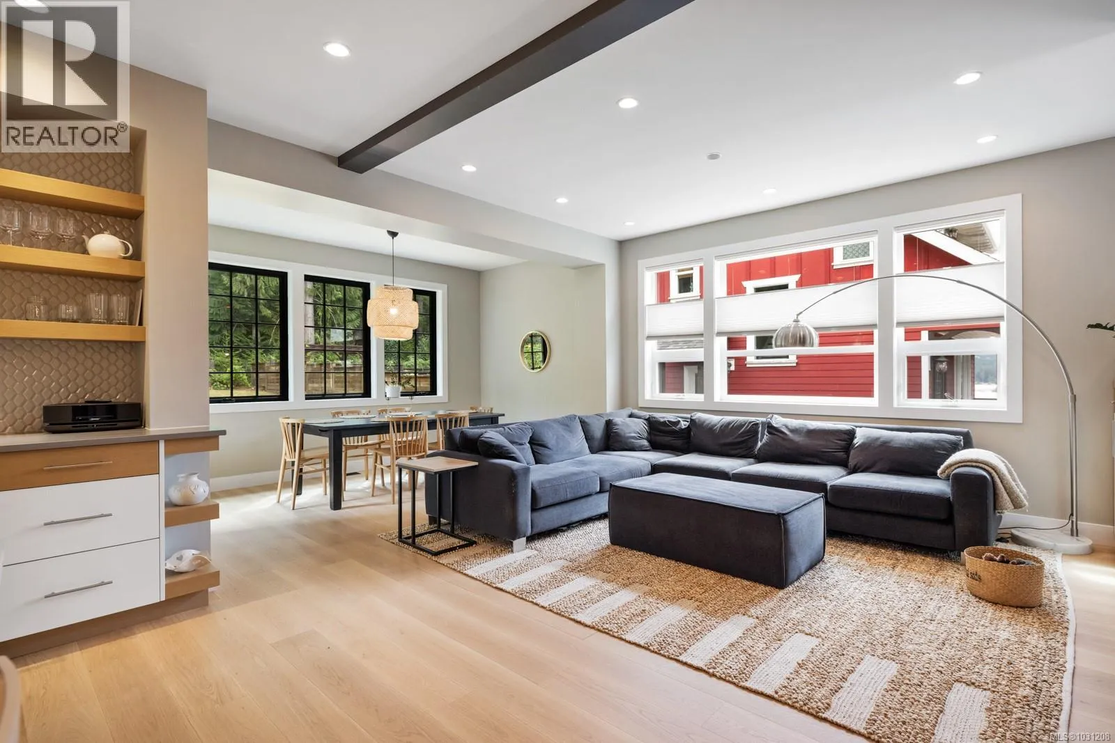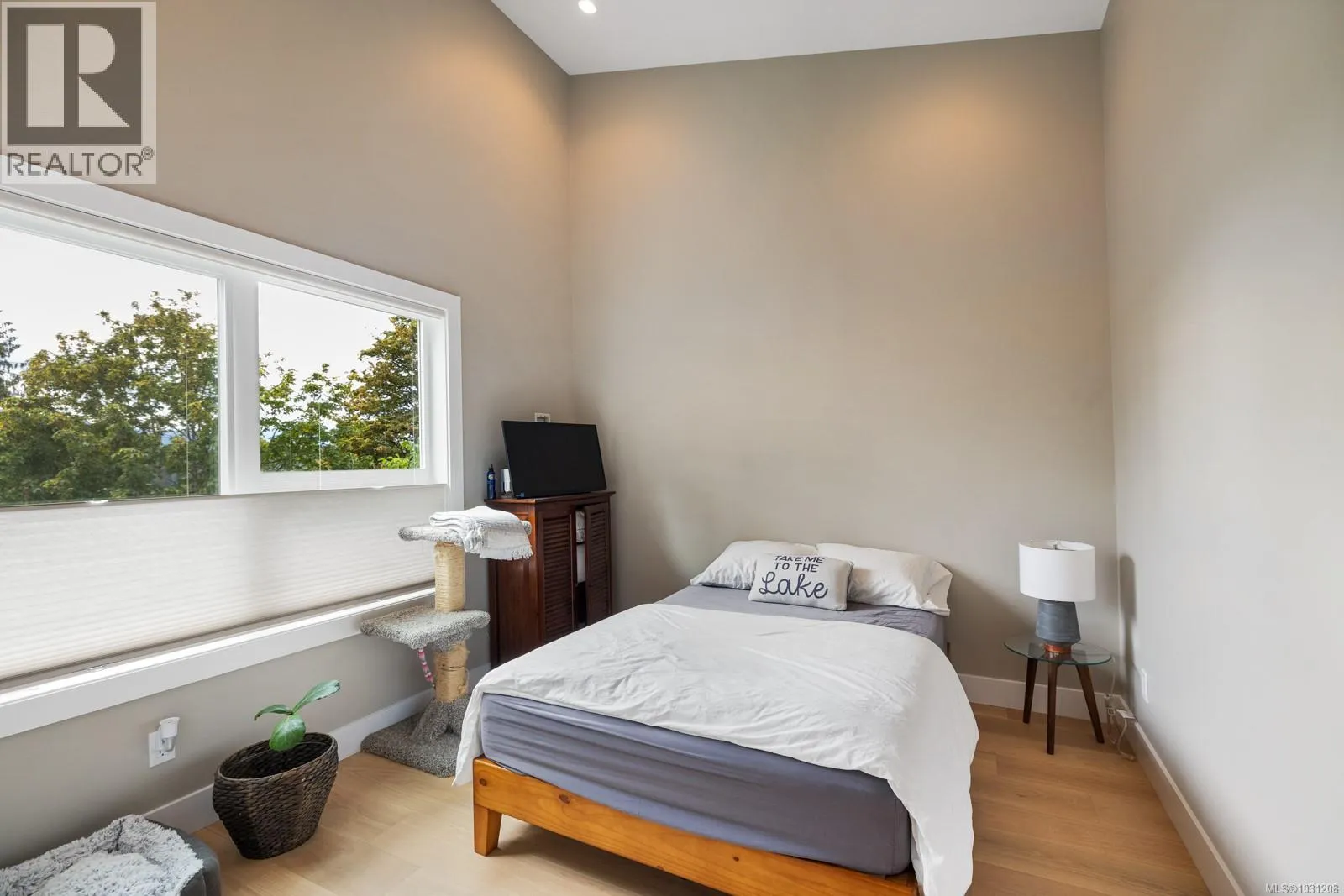 Beautifully maintained custom designed contemporary West Coast home. Nestled in a private location with stunning lake views, this property offers direct access to the lake and nearby walking trailsâan ideal blend of nature and design. Inside, the 3-bedroom + den, 2.5-bath layout showcases thoughtful craftsmanship and elegant finishes. The custom kitchen features quartz countertops and flows seamlessly into the open-concept living space, all grounded by engineered white oak hardwood flooring. Vaulted ceilings enhance the sense of space and light, while the second-level deck offers breathtaking viewsâperfect for morning coffee or evening gatherings. The private backyard is a true retreat, complete with patio and fire pit for cozy nights under the stars. Additional features include attached garage, HVAC system, and den ideal for a home office or guest space. This home is a must-see for those seeking a peaceful lifestyle with refined architectural detail and proximity to nature. (id:27476)