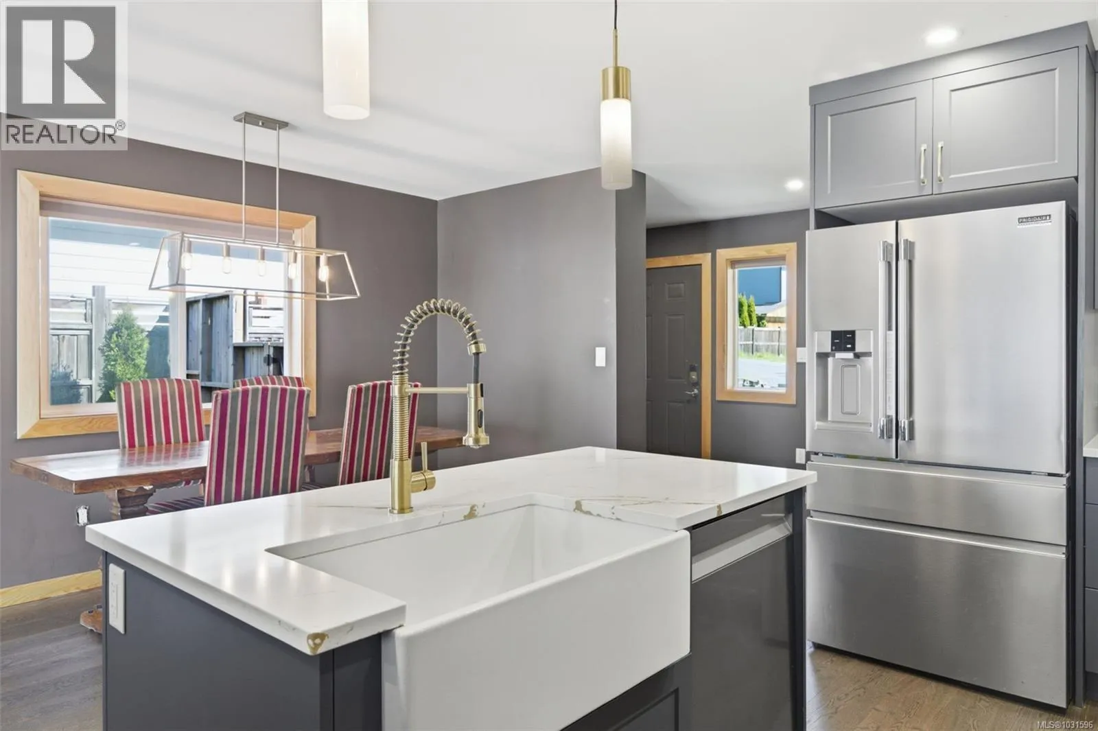 Welcome to the Estates at Shawnigan Station, a professionally managed, family-oriented bareland strata community. This complex is conveniently located just minutes away from the lake, the village amenities and the beloved swimming spot of Masons Beach Park. This home is situated on a 5,000 sq ft, easily manageable, landscaped lot with a private backyard. Features include 3 bedrooms, 2 full bathrooms, an open concept layout with a good-sized kitchen island, a gas fireplace, a spacious and main-floor primary bedroom, a double garage, a deck with a gas BBQ outlet and a cute front porch. The development boasts picturesque mountain and valley views. This strata would be ideal for families and retirees or anyone who is looking to purchase an affordable, move-in-ready gem in one of the most popular Vancouver Island lake destinations. (id:27476)