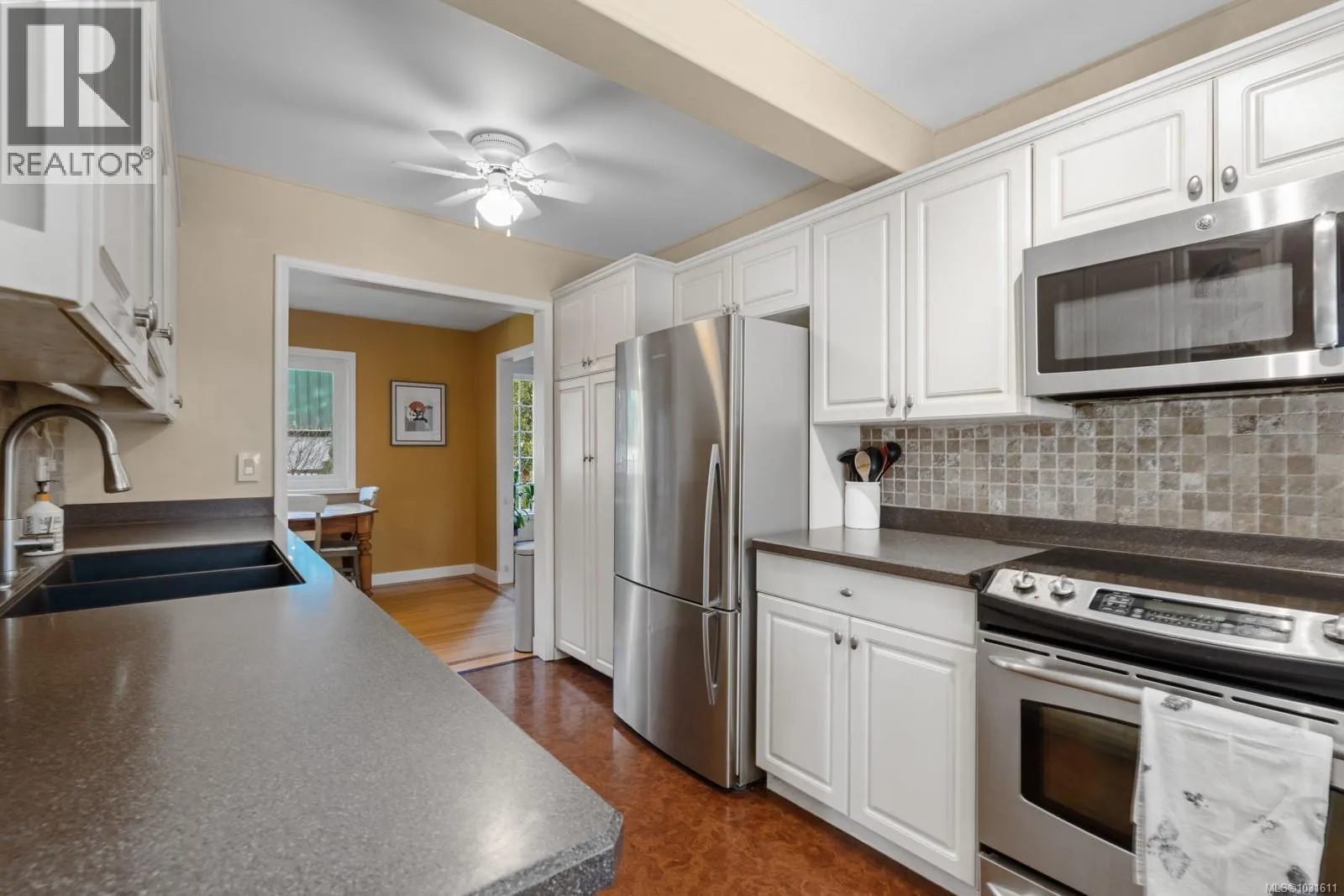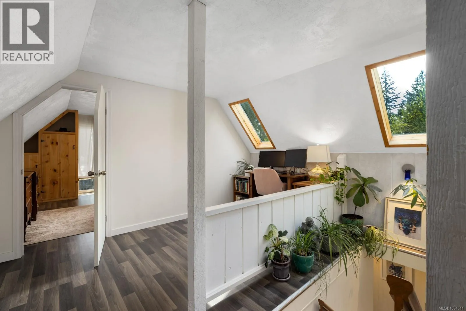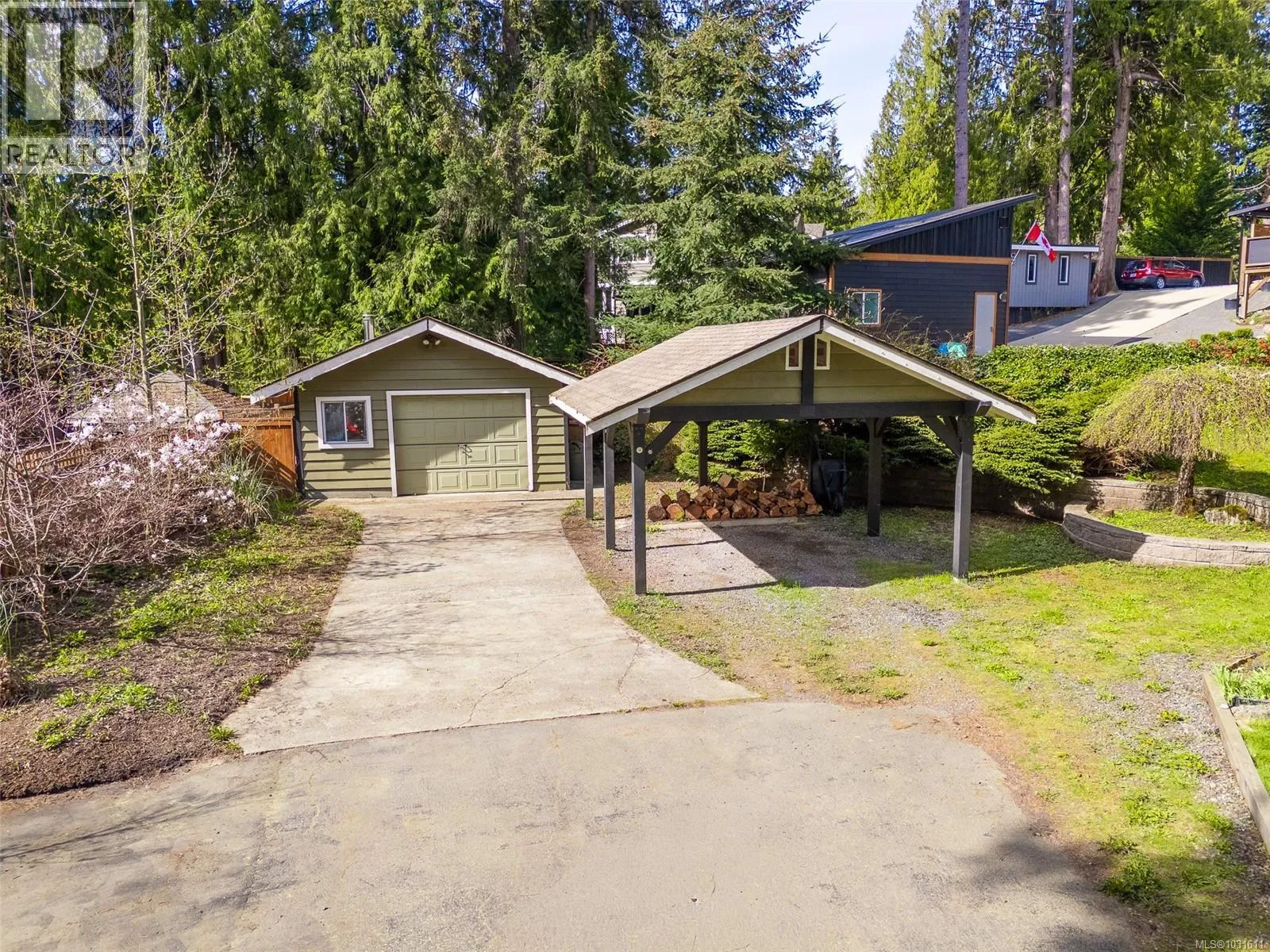 Nestled on a quiet, secluded cul-de-sac, this tranquil home welcomes you with a charming covered porch. The main level features a functional galley kitchen with adjoining dining area, and a spacious living room warmed by a natural gas fireplace. A versatile main-floor room offers flexibility as a bedroom, den, or home office. A custom Euro-style staircase leads upstairs to the primary suite, guest bedroom, and a cozy office nook. Updated windows (2018) enhance comfort and efficiency. The expansive yard provides ample parking, a large garage with excellent storage, and a separate covered area ideal for boat storage. Conveniently located near parks and scenic forest trails, this property offers both privacy and outdoor lifestyle appeal. (id:27476)