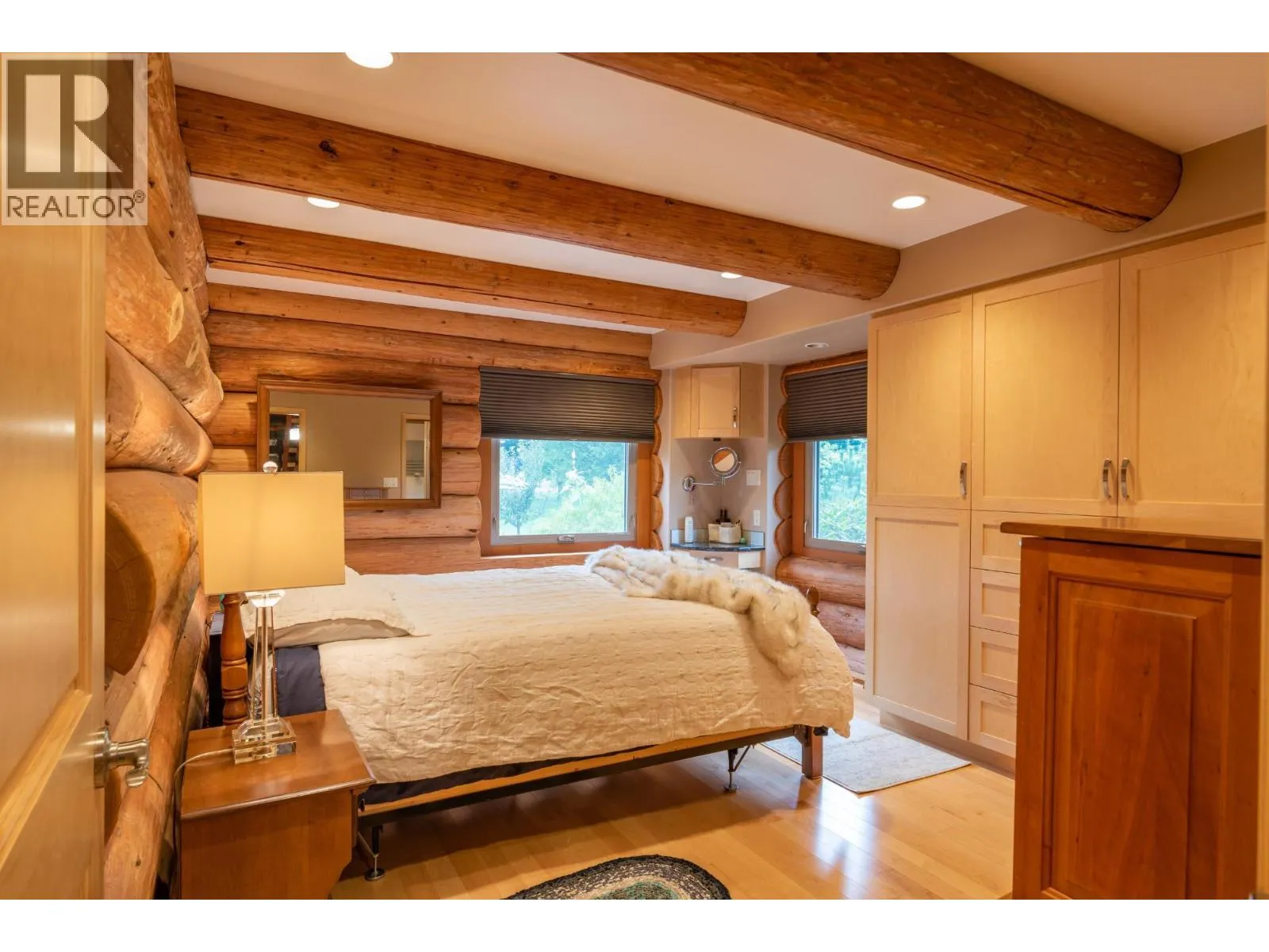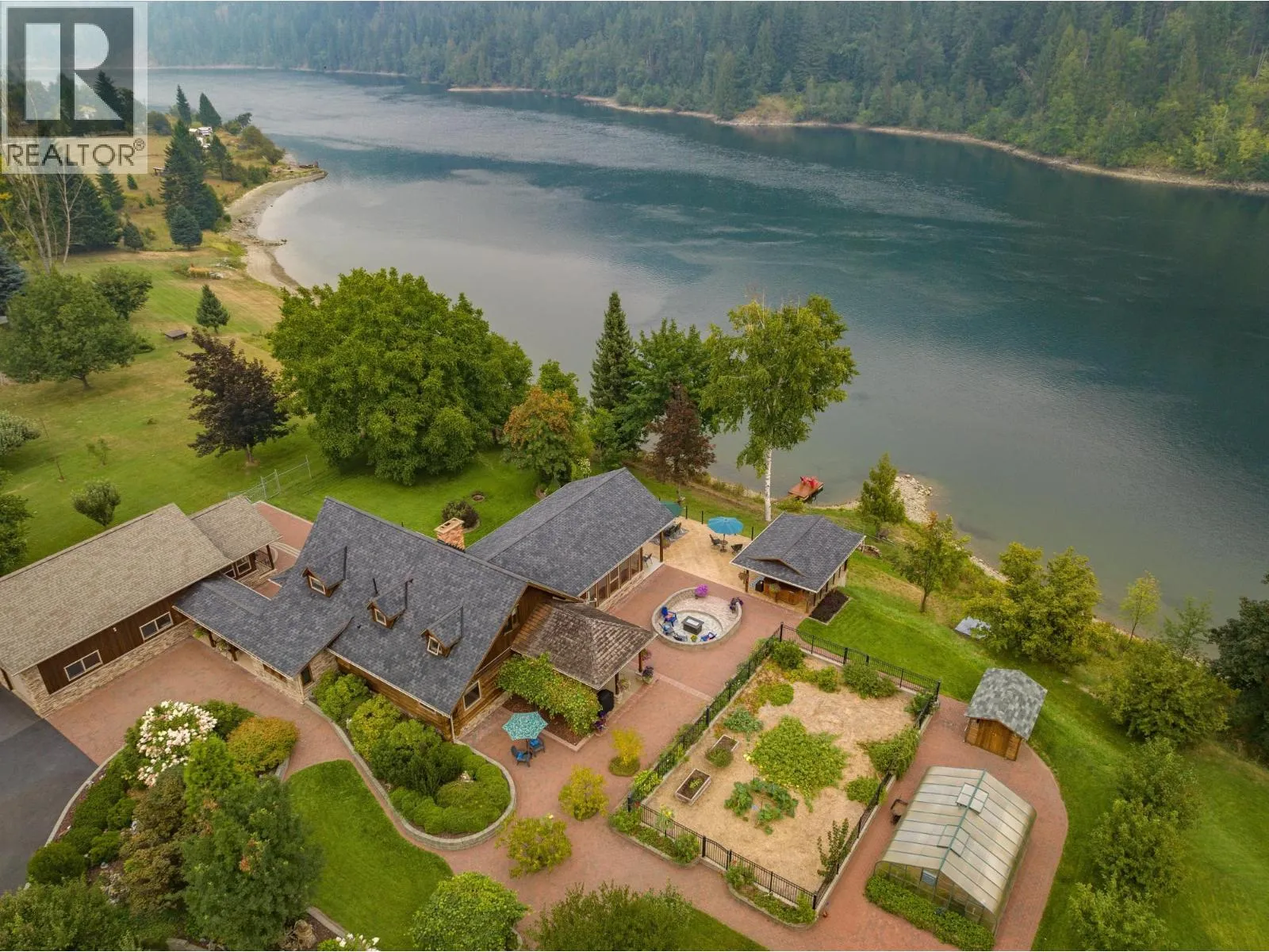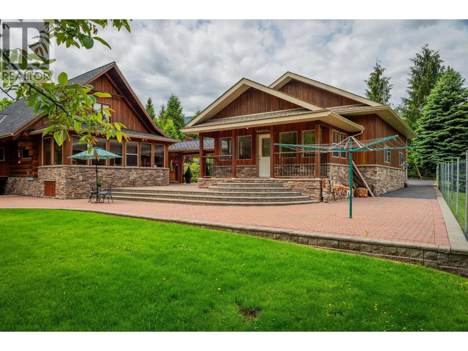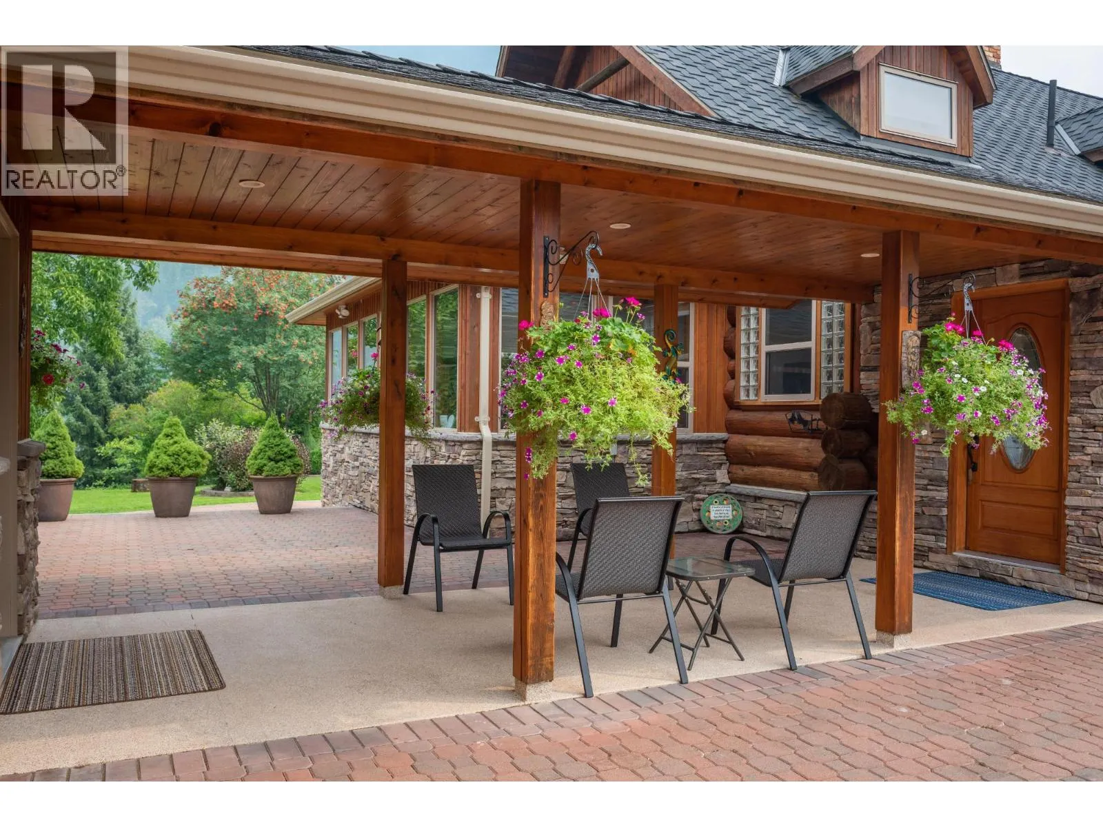 Nestled in the tranquil beauty of Shoreacres, BC, this custom-built log home epitomizes waterfront living on the picturesque Kootenay River. Top quality craftsmanship is evident throughout and only the highest quality finishing materials were used. The home has been meticulously maintained with extensive recent upgrades. Upon entering, be greeted by the rustic charm and inviting ambiance that defines every corner of this exceptional property. The open-concept design seamlessly marries the timeless allure of log architecture with contemporary comforts, offering three spacious bedrooms and three elegantly appointed bathrooms. Surrounded by nature's serenity, this fully fenced, meticulously maintained executive residence features a downstairs in-law suite, perfect for hosting family or friends. Step outside onto the expansive concrete stamped deck to immerse yourself in the tranquil sounds of nature and panoramic vistas. The low maintenance 1.18 acre landscaped yard creates a park-like oasis, ideal for relaxation and connecting with the outdoors. A private dock invites you to indulge in water activities like boating and fishing or simply bask in the sun along the river's edge. The property also highlights an orchard-like setting with many varieties of fruit and berries. Whether seeking a peaceful sanctuary or an adventurous getaway, 906 James Road promises an unparalleled lifestyle. Spacious 24X34 high ceiling garage with bonus studio room. (id:27476)