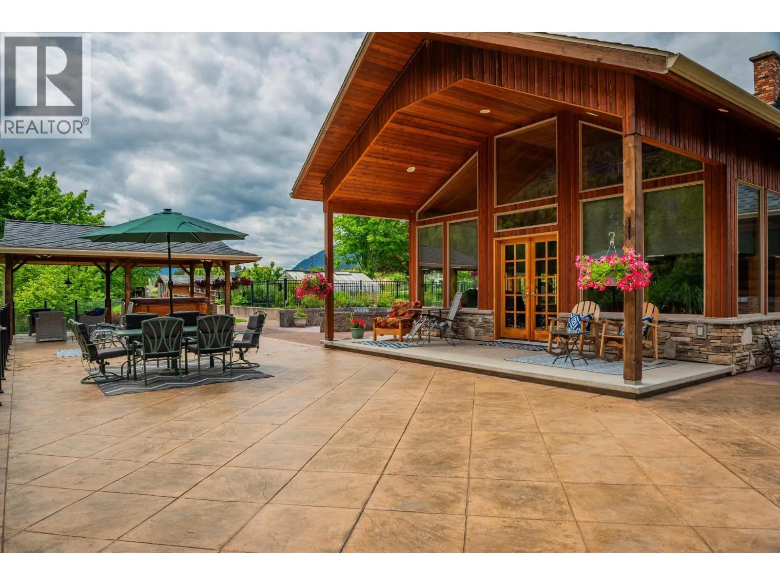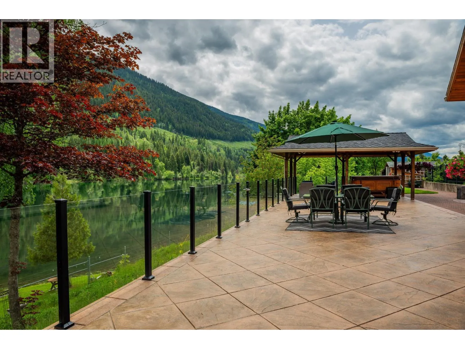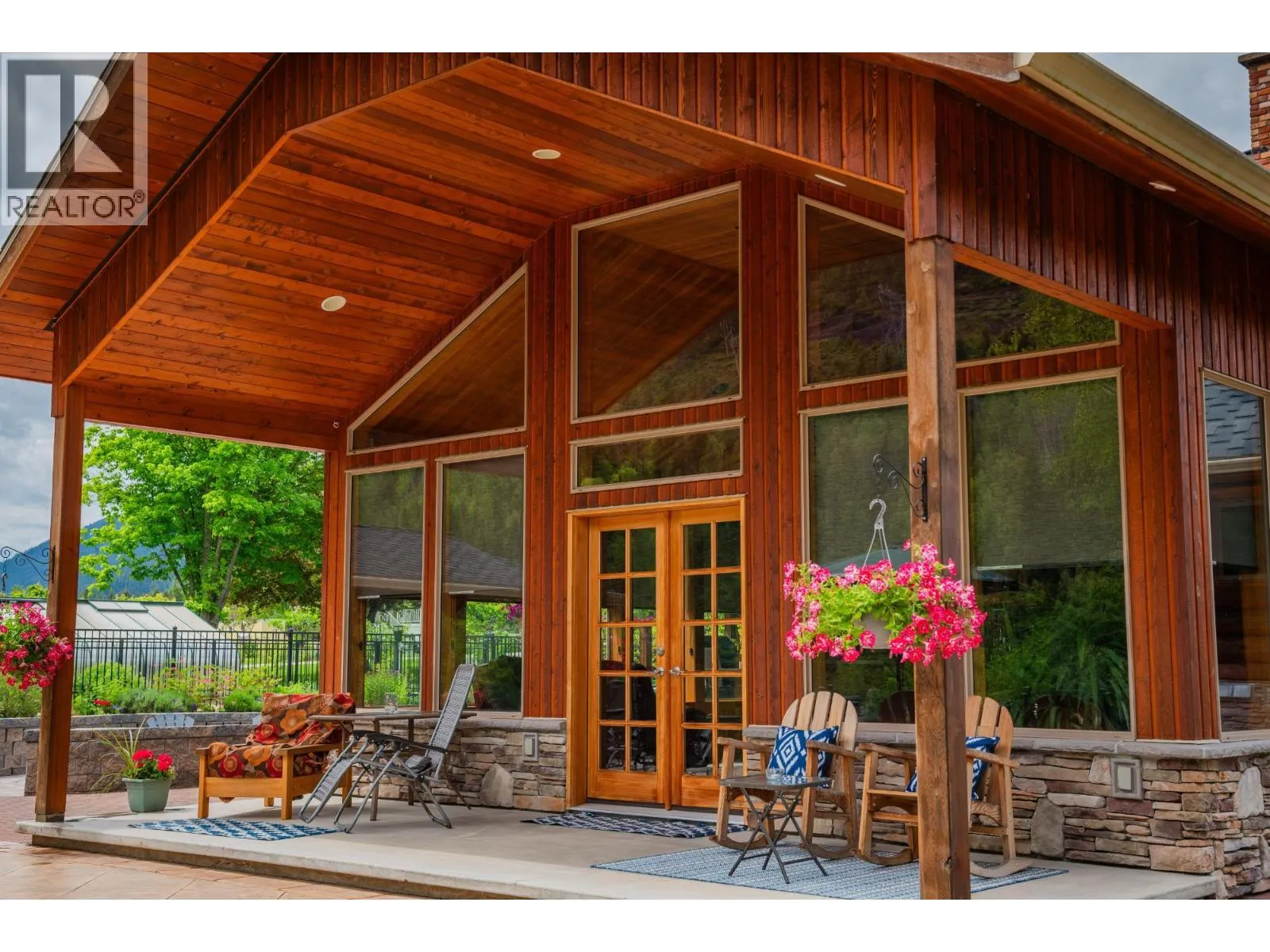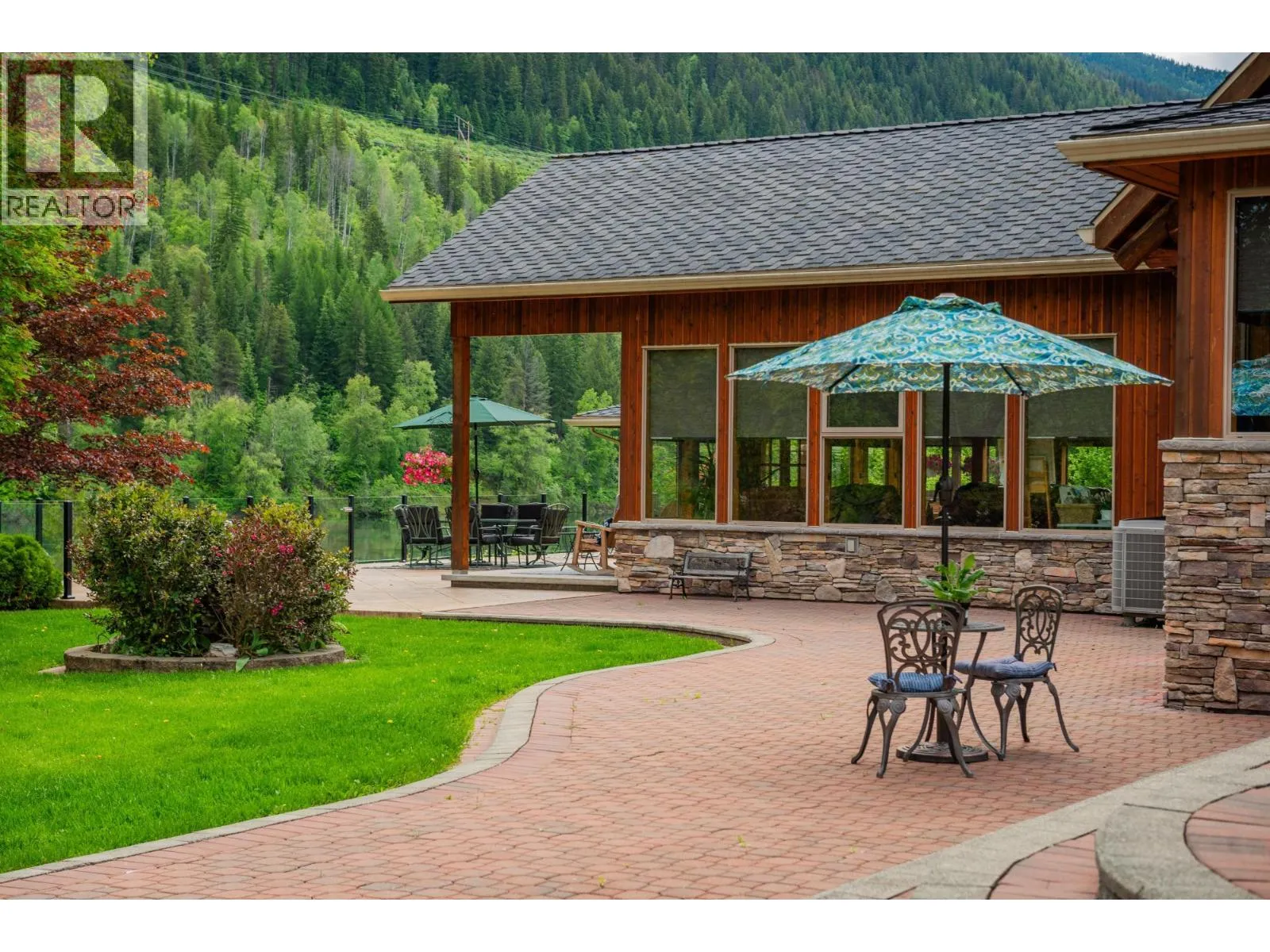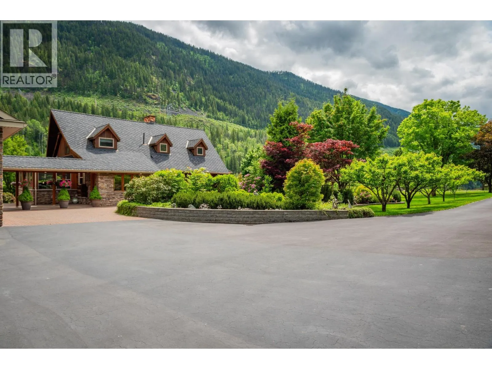 Nestled in the tranquil beauty of Shoreacres, BC, this custom-built log home epitomizes waterfront living on the picturesque Kootenay River. Top quality craftsmanship is evident throughout and only the highest quality finishing materials were used. The home has been meticulously maintained with extensive recent upgrades. Upon entering, be greeted by the rustic charm and inviting ambiance that defines every corner of this exceptional property. The open-concept design seamlessly marries the timeless allure of log architecture with contemporary comforts, offering three spacious bedrooms and three elegantly appointed bathrooms. Surrounded by nature's serenity, this fully fenced, meticulously maintained executive residence features a downstairs in-law suite, perfect for hosting family or friends. Step outside onto the expansive concrete stamped deck to immerse yourself in the tranquil sounds of nature and panoramic vistas. The low maintenance 1.18 acre landscaped yard creates a park-like oasis, ideal for relaxation and connecting with the outdoors. A private dock invites you to indulge in water activities like boating and fishing or simply bask in the sun along the river's edge. The property also highlights an orchard-like setting with many varieties of fruit and berries. Whether seeking a peaceful sanctuary or an adventurous getaway, 906 James Road promises an unparalleled lifestyle. Spacious 24X34 high ceiling garage with bonus studio room. (id:27476)