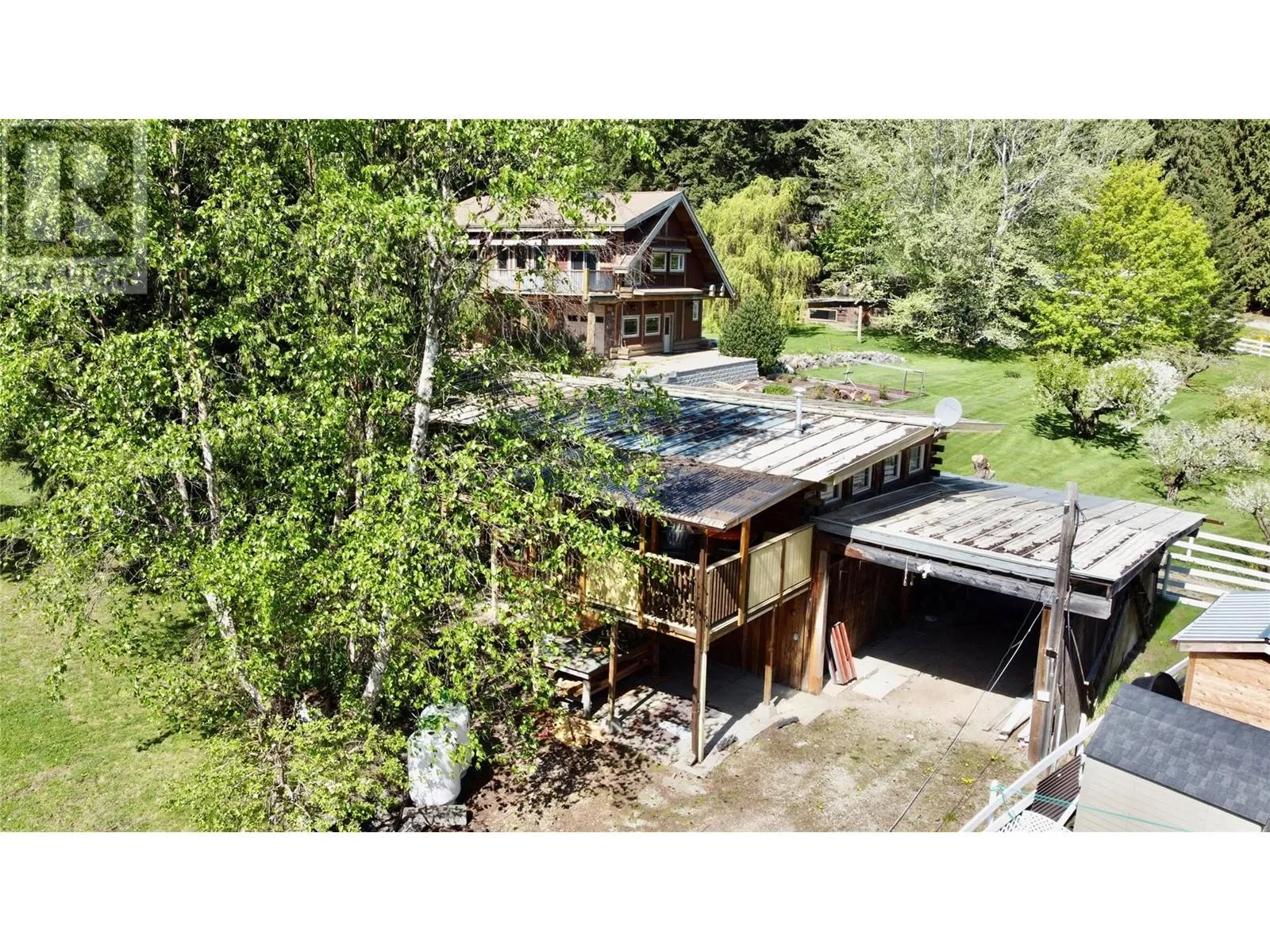 Charming Log Post & Beam Home with Second Residence on 1.93 Acres â Just Minutes from Sicamous Welcome to your dream rural retreat! Nestled on a private and serene 1.93-acre parcel on the outskirts of Sicamous, this stunning 2-bedroom, 3-bathroom log post and beam home offers the perfect blend of rustic charm and modern comfort. Crafted with rich wood tones, vaulted ceilings, and exposed beams, the main home exudes warmth and character throughout. The open-concept living space features a cozy propane-burning stove, ideal for those cool Shuswap evenings, and large windows that fill the home with natural light while offering picturesque views of the surrounding nature. The spacious kitchen boasts ample cabinetry and flows seamlessly into the dining and living areas â perfect for entertaining or relaxing in comfort. The primary suite offers a private sanctuary with a full ensuite and direct access to the outdoors, while the second bedroom is equally inviting with a nearby full bath. A third bathroom adds convenience for guests. In addition to the main home, the property includes a second residence â ideal as a mortgage helper, guest house, or private space for extended family. The gently sloping 1.93-acre lot is partially treed and offers ample space for gardening, recreation, or future development. Enjoy peace, privacy, and a true connection to nature, all while being just a short drive from Sicamousâ shops, restaurants, Shuswap Lake, and year-round outdoor adventure. (id:27476)