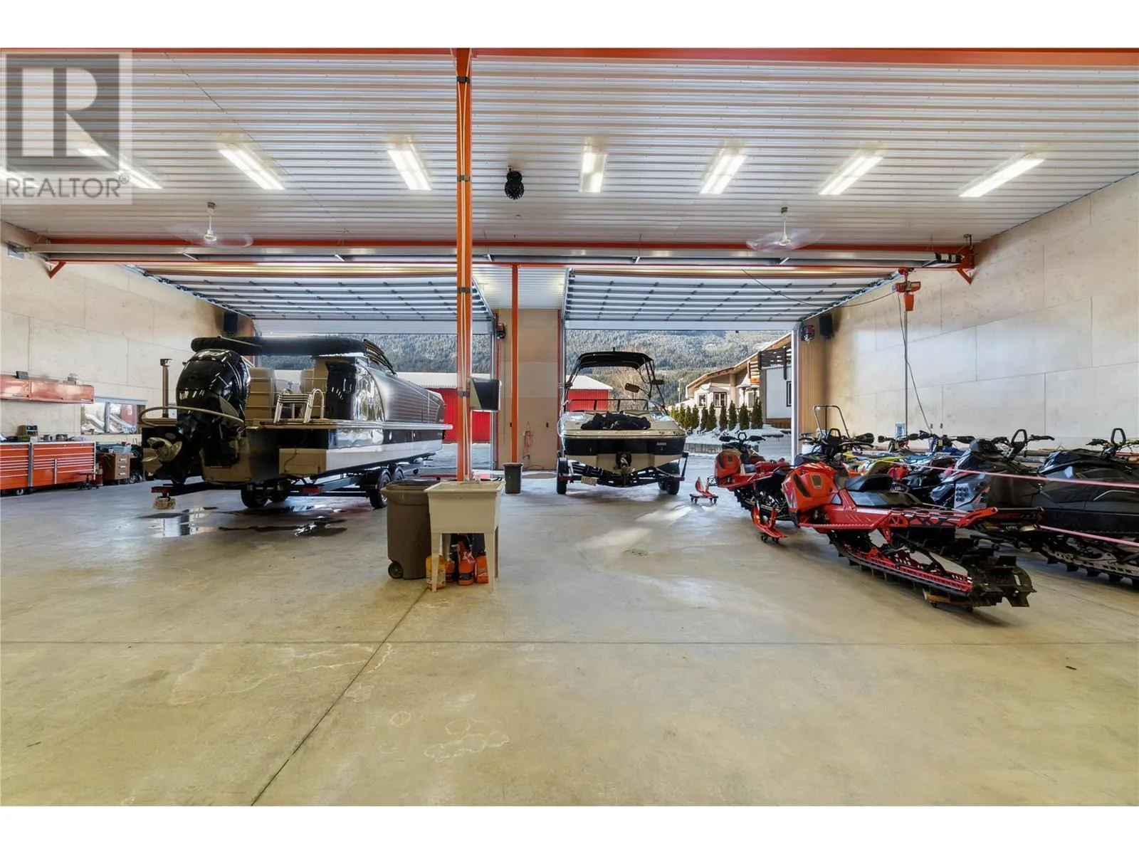 Eagle Valley Storage Marine & Lodge is located approximately 3 km north of Sicamous, on a 9-acre property, just off the Trans Canada Hwy. It features a large boat and recreational complex with four acres dedicated to buildings, boat, RV & Sled storage, office/shop building, and accommodations. The shop is a spacious, heated two-story building with an elevator, offering upper-level sled storage and a lower level for Marine Mechanics. There's also an office & retail store with storage and a bathroom, two full suites, and a separate large lodge with an open concept living area, fireplace, games room, poker table, multiple bedrooms, and six bathrooms. The property provides heated and cold storage options, full Marine services, detailing, valets, and accommodations. Past services included sled and boat rentals and sled guiding, which could potentially be reintroduced to substantially increase revenues. There is also opportunity for more boat repairs and maintenance. This business has tons of growth potential. The shop comes with a Snap-on tool chest, welder, built-in pressure washer, and other equipment. The lodge is fully furnished and includes a hot tub, barbecue, skid steer, and tractor. Offered at $3,350,000 + GST (appraised value 2023: $3,800,000). (id:27476)