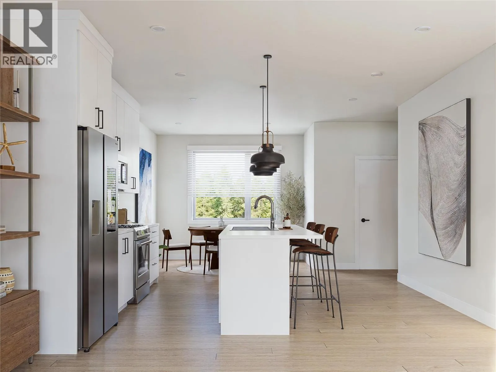 Welcome to MaraVista, Sicamousâs newest townhome community where modern design meets practical living. Unit 4 -This 1,486 sq.ft. 3-bedroom, 2.5-bathroom home features a generous 39â x 13â garageâgreat for storing recreational gear, boats, or extra vehicles. Inside, the open-concept main floor offers a bright & functional layout with 9â ceilings, enhanced soundproofing, & a galley-style kitchen complete w/ quartz countertops, matte black hardware, soft-close cabinetry, & a convenient eating bar. A street-facing deck extends your living space outdoorsâideal for sunny mornings & great people-watching. Upstairs, the spacious primary bedroom includes a full ensuite & walk-in closet. 2 additional bedrooms, a second full bathroom, & laundry are also located on the upper floor, offering comfort & practicality for families, couples, or long-term guests. Quality finishings run throughout, including durable vinyl plank flooring, energy-efficient windows, & a high-efficiency mini-split heating & cooling system. Exterior features include low-maintenance Hardie Plank siding and modern curb appeal. MaraVista is just steps to Sicamousâs main street, beaches, marinas, & year-round recreation. Pet-friendly (w/ size restrictions) & zoned for long-term rentals only, this development is ideal for those seeking a vibrant yet low-maintenance lifestyle. BONUS $5,000 appliance credit offered for the first 4 units sold, this is your opportunity to own in one of BCâs best lakefront communities. (id:27476)