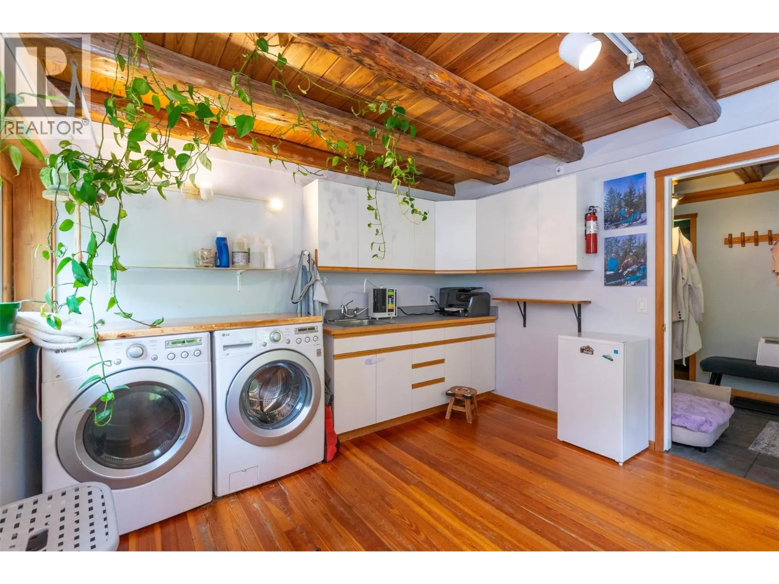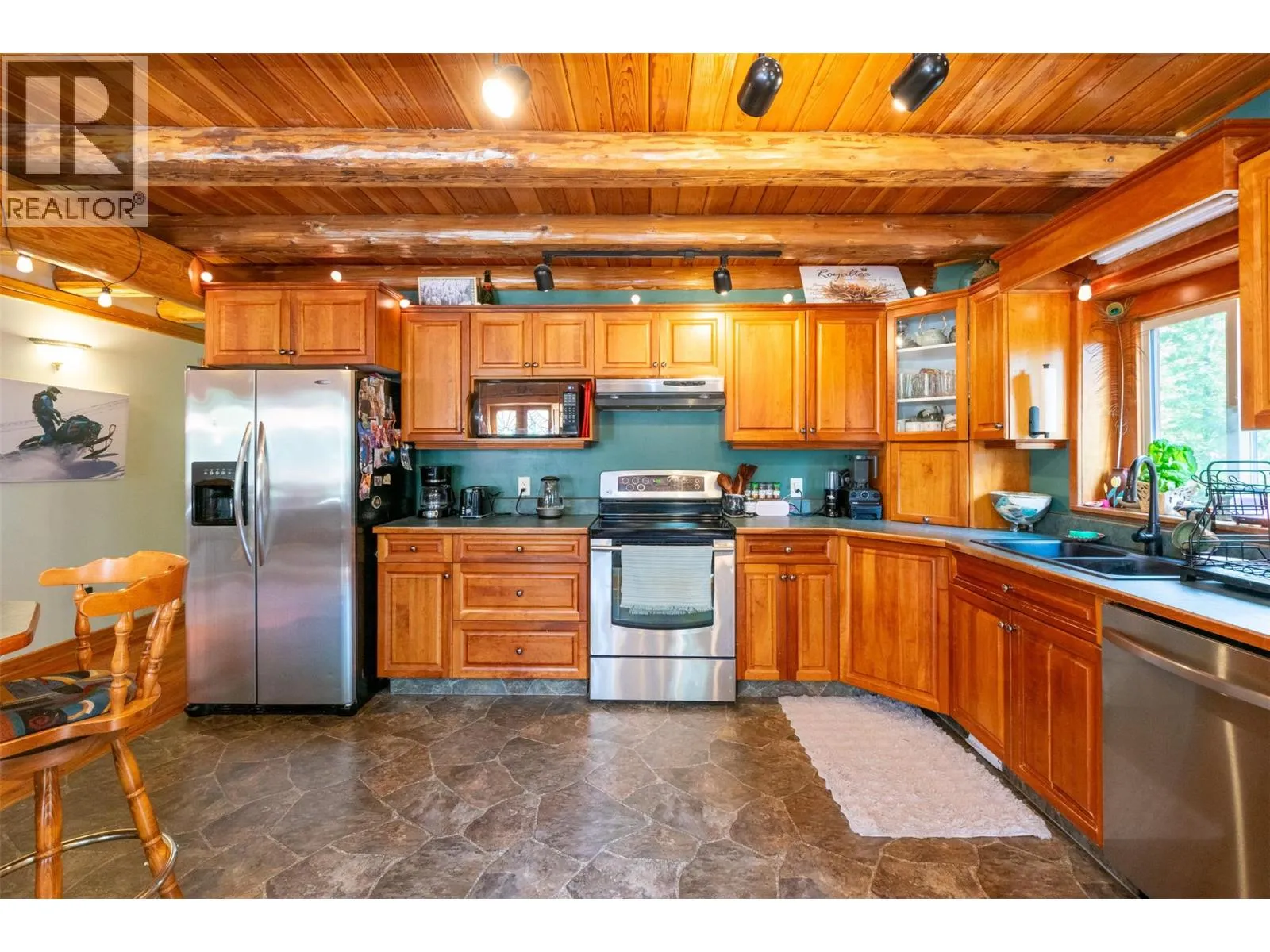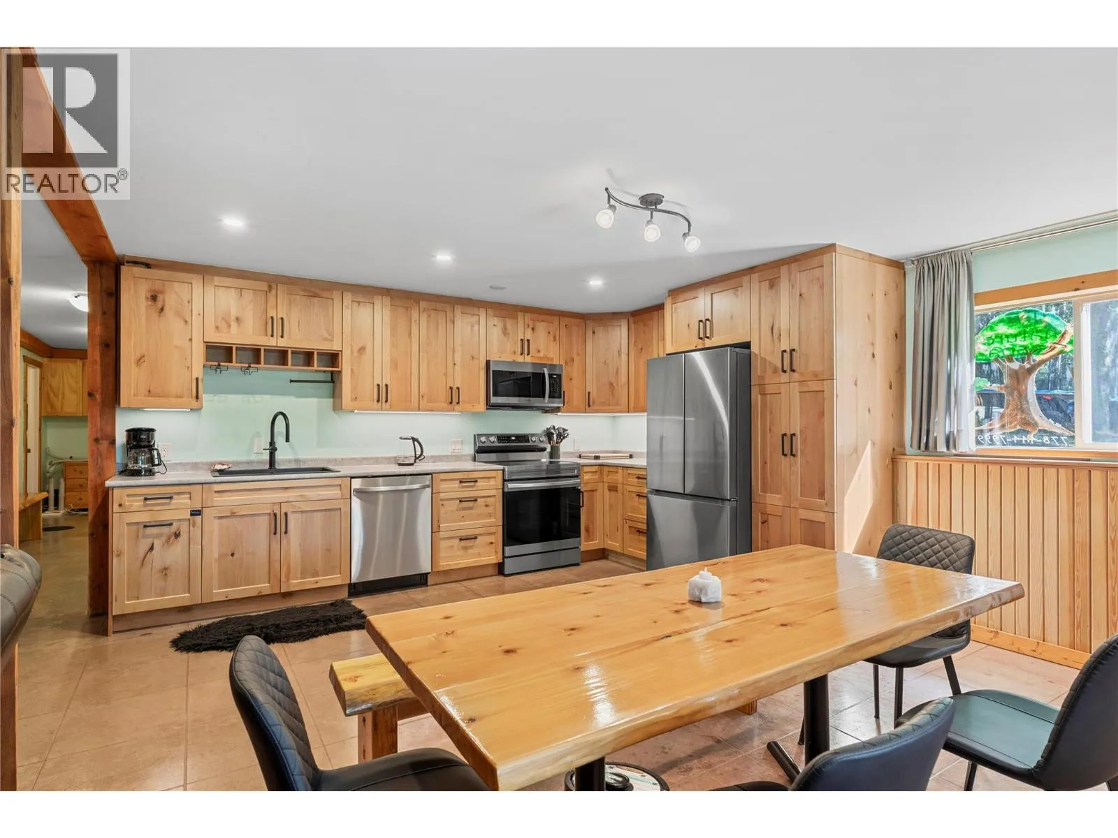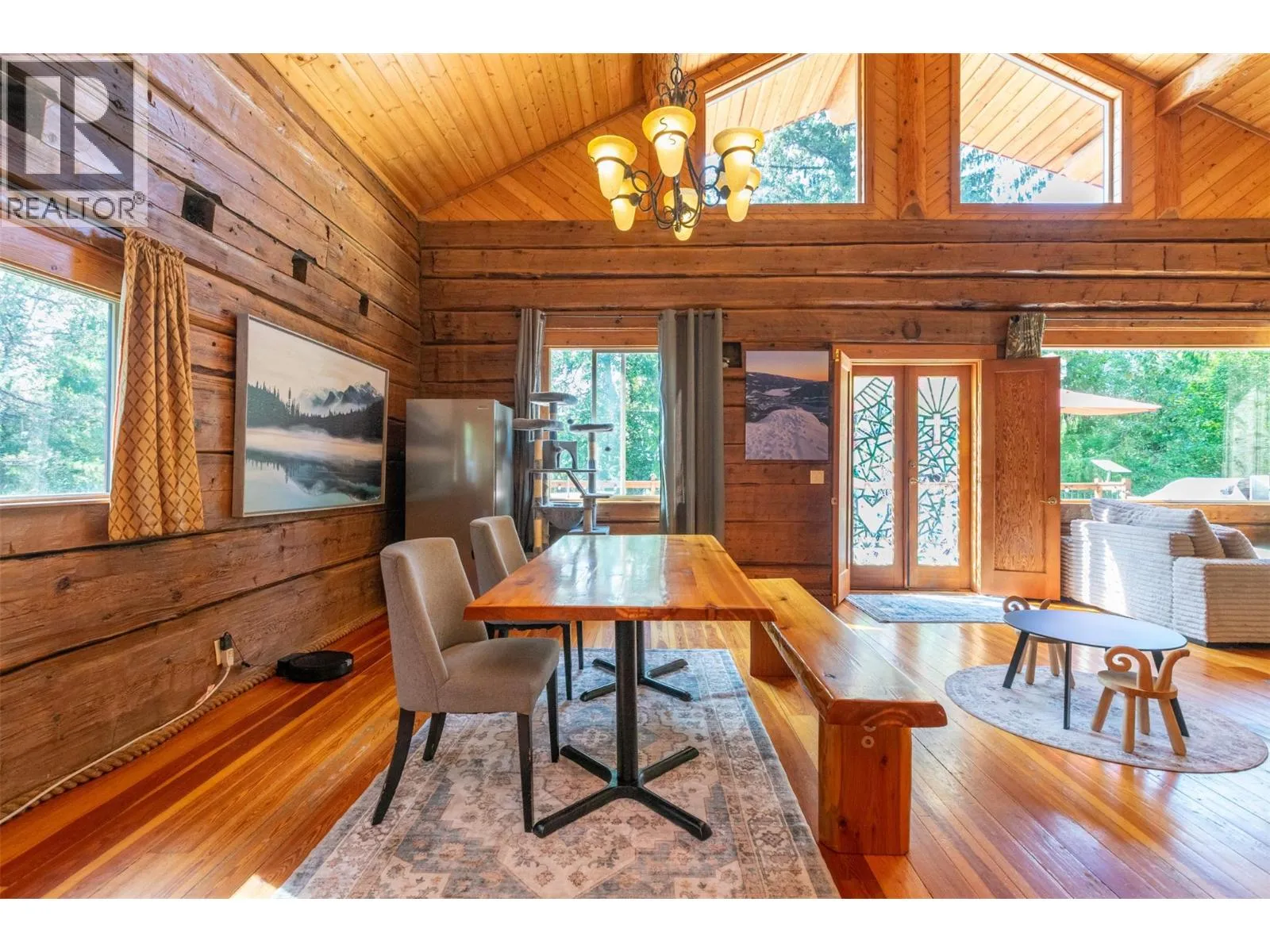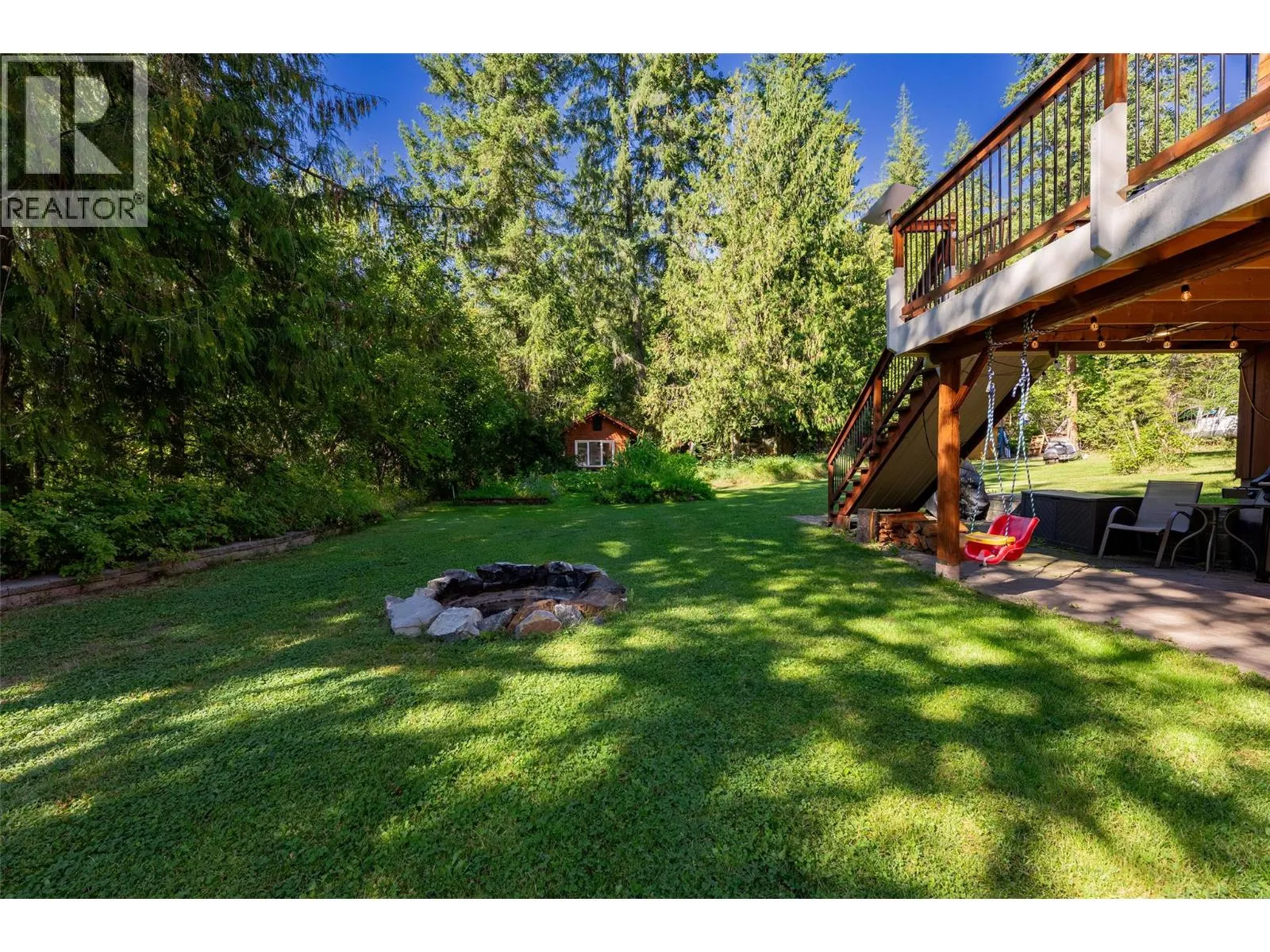 Rare Offering in Sicamous! Tucked away on 1.48 private acres, this custom Finlander hand-axed barn home is full of character and charm. With 4 bedrooms and 3 bathrooms, including a full suite downstairs that provides excellent short-term rental opportunities to help offset your mortgage, this home offers both comfort and income potential. Located only 5 minutes from downtown Sicamous, the boat launch, and the public beach, the property also features 70 feet of river frontage on Owl Creek, pastoral mountain views, and direct access to crown land right behind you. Outdoor living is at its best here with a large sundeck, hot tub with outdoor shower, fire pit, gardens, fruit trees, and a fully paved RV spot. A walk-out basement adds flexibility for family or guests, making this property a true Shuswap gem that blends privacy, lifestyle, and natural beauty. (id:27476)