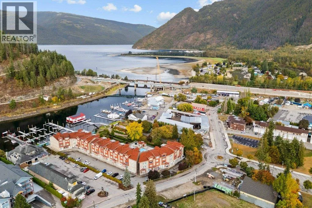 Stunning WATERFRONT 3 BED/ 3 BATH Townhome in the heart of Sicamous! This quiet complex offers luxury amenities including an in-ground pool, hot tub and a boat slip exclusive to your unit in the private marina! Close to all amenities, local shops, grocery stores and endless year round recreation. Inside your invited into a warm welcoming environment, large living room looking onto large sun deck with stunning LAKE views offered in only a few units in this complex. Kitchen with ample cabinetry & granite counters. Upstairs offers a spacious primary bedroom with high ceilings & full ensuite including soaker tub and another bedroom and full bath. The loft offers another bedroom and space for an office, exercise area or family room. Furniture can be included for an even more seamless and turn key luxury home. Lots of parking available with the tandem double garage and complex parking. Heating/cooling with geothermal is very affordable with the average Hydro cost over the past year being $134. Portside Court is also a pet friendly atmosphere allowing up to three pets with no size restrictions. Affordable options like this don't come up often in such a premium complex! Call today for your private showing. (id:27476)