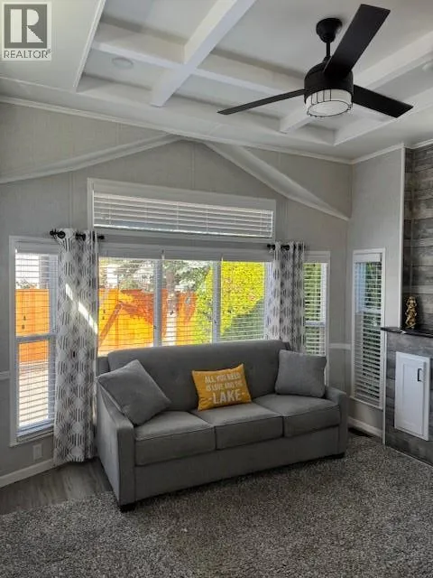 A gated bare land strata resort offers the ideal retreat for recreation or year-round living. The subject dwelling is a 2020 single-wide park model modular home, stylishly designed with vaulted ceilings and large windows that fill the space with abundant natural light. Modern and current finishes are showcased throughout, including quartz countertops in the kitchen. Offering 2 bedrooms plus a bunkie that sleeps 4, thereâs ample space for family and guests. The covered outdoor kitchen, leisure, and dining area comes complete with power, TV connection, and a fireplaceâperfect for entertaining. The entry features attractive decking, while the remainder of the site is surfaced in concrete for easy maintenance. Ideally located close to the river, lake, beach park, and all that Sicamous has to offer. Freehold title with low strata fees of just $101.08/month. Pets and rentals allowed. Call today to viewâthis oneâs a must-see! (id:27476)
