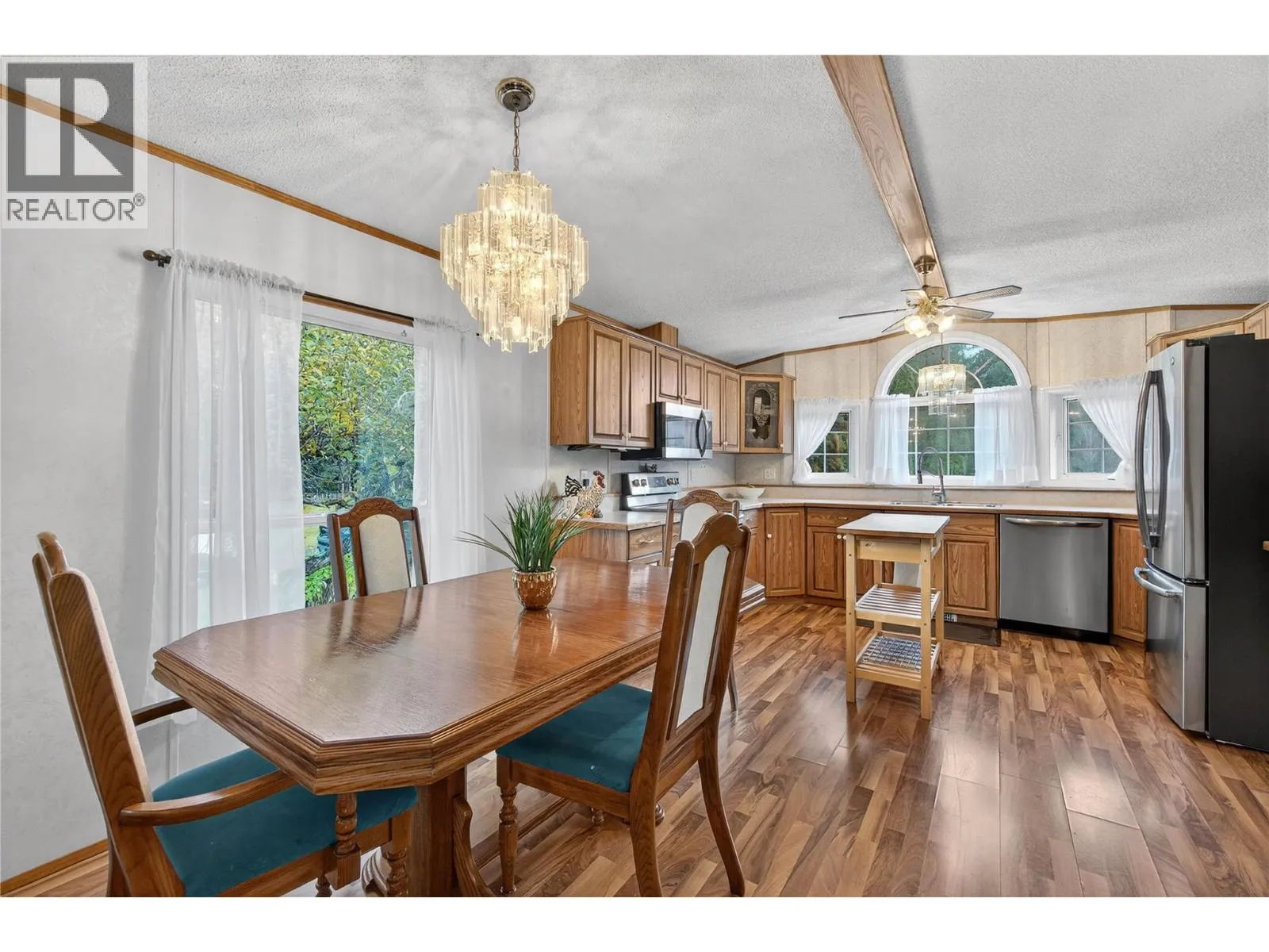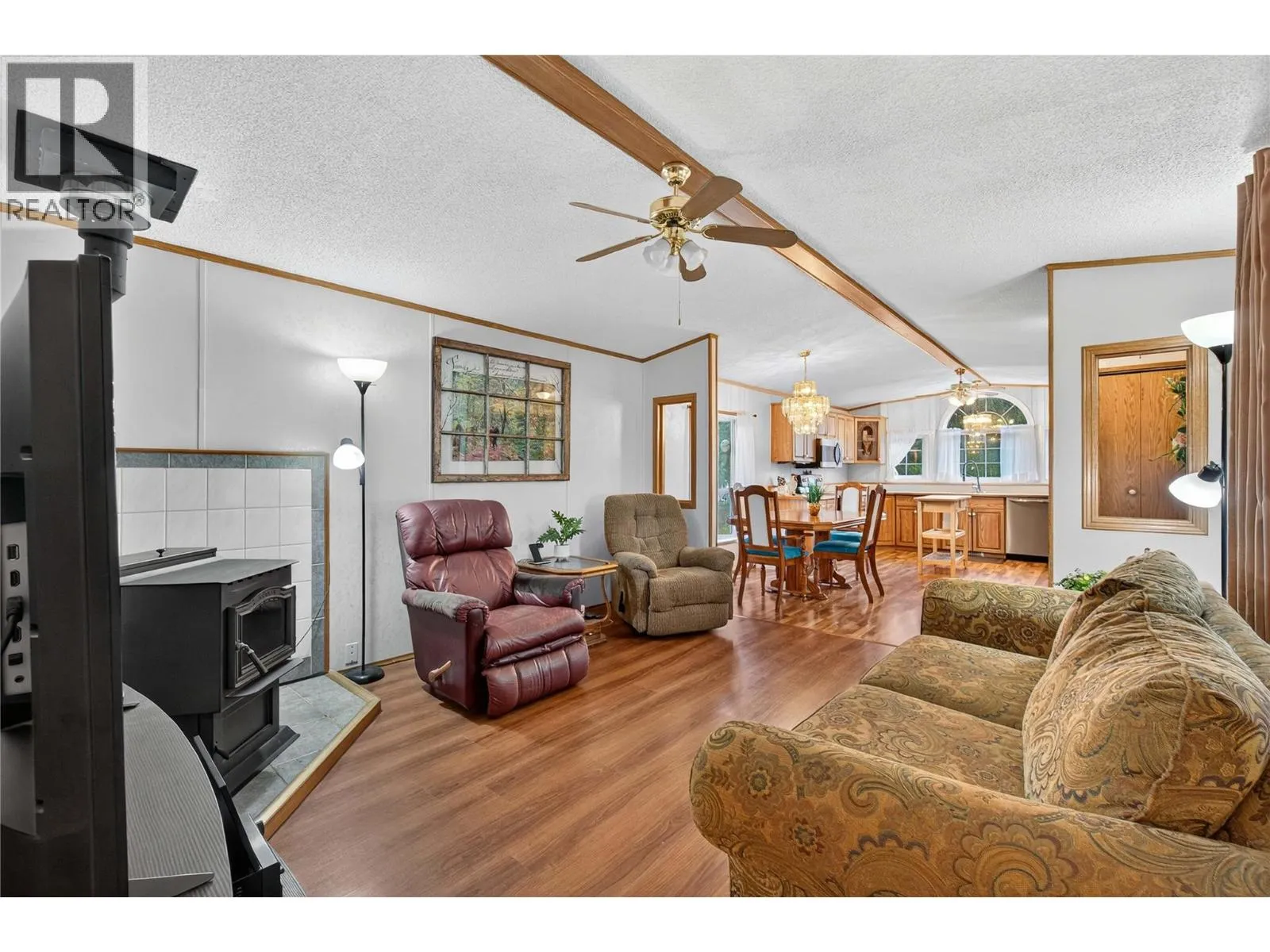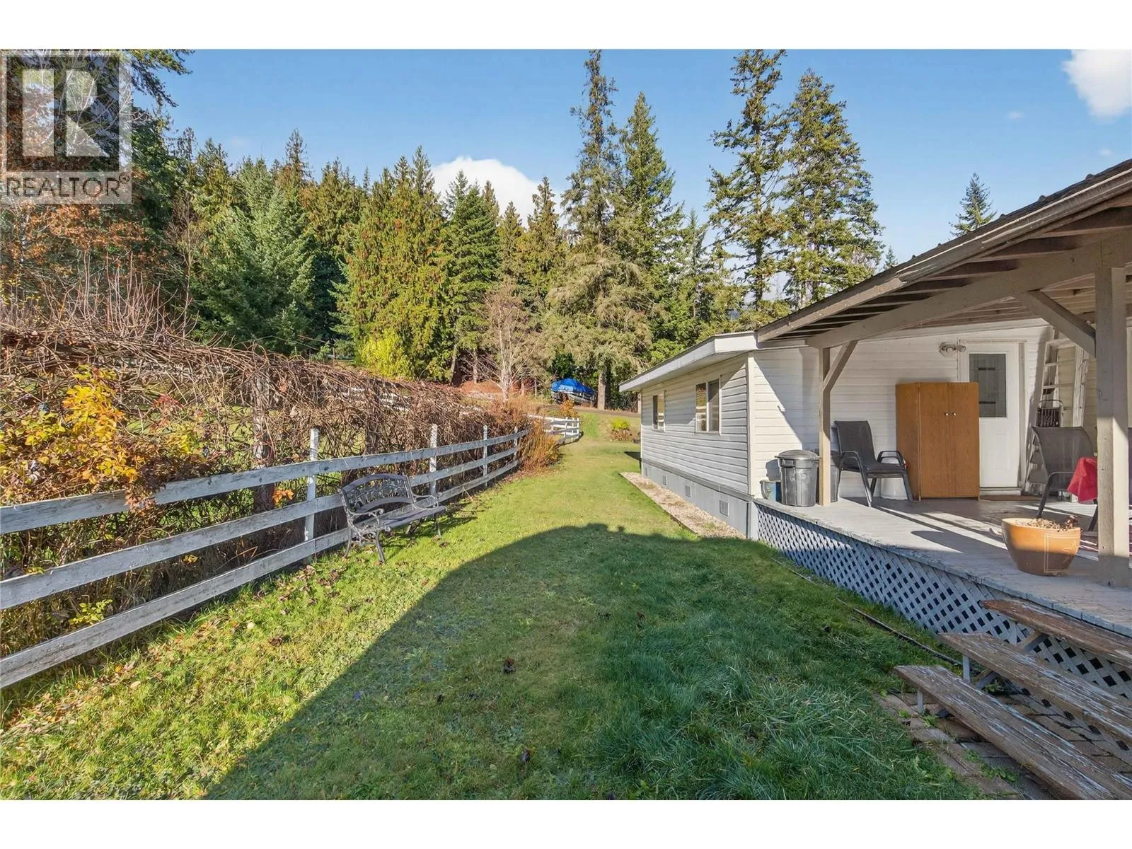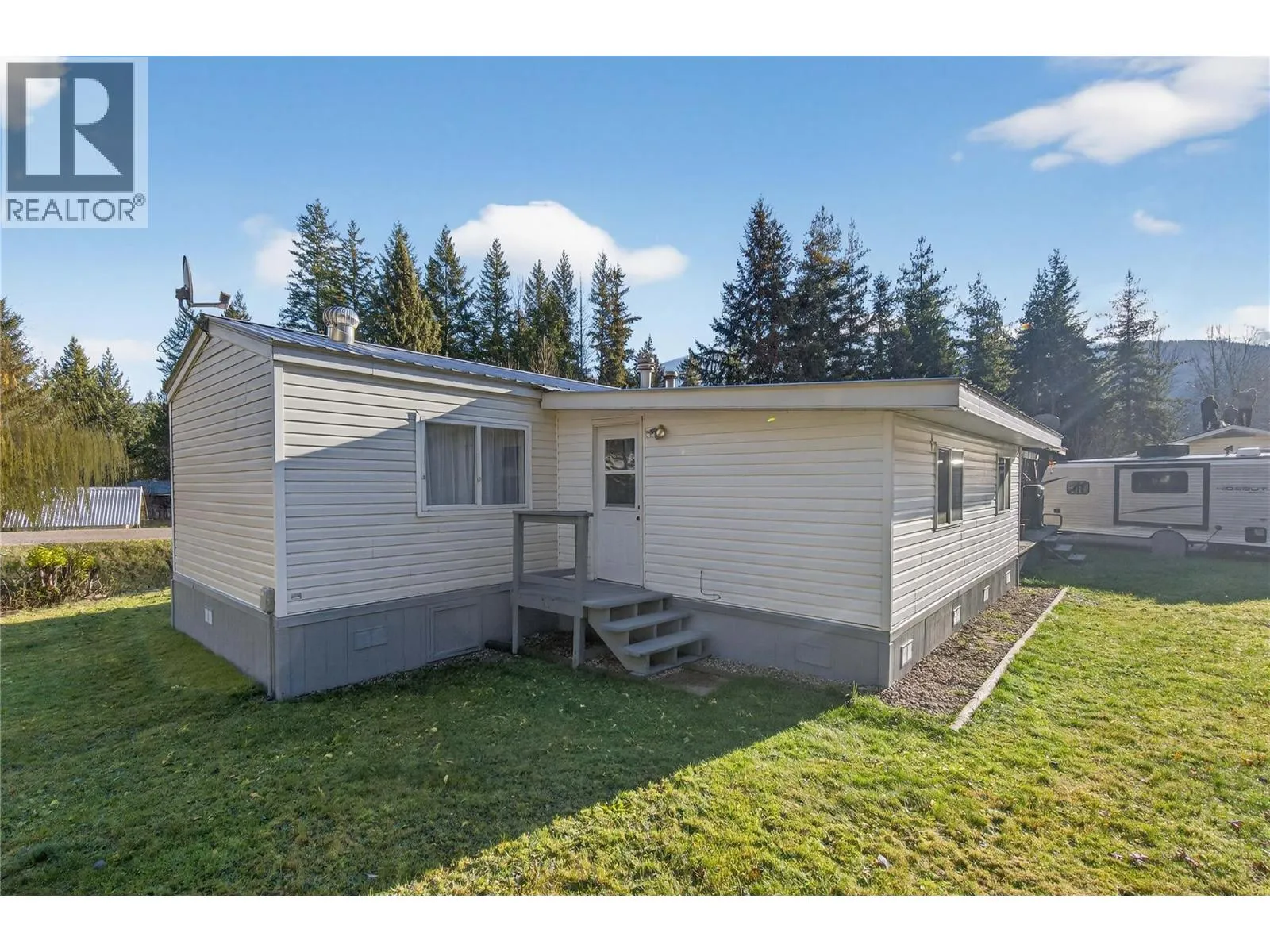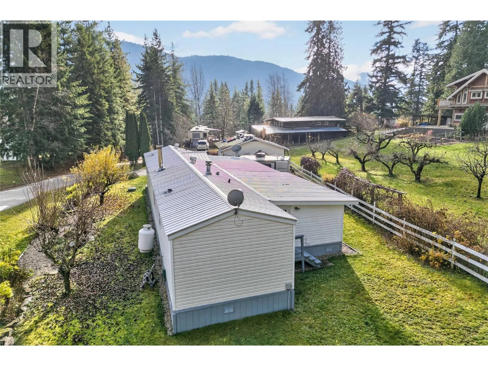 This rare opportunity in the quiet, private Cedar Ridge community sits just minutes from Sicamous. This well-kept single-wide with a large add-on offers excellent flexibility, featuring 2 extra rooms that can function as a bedroom, den, office, or hobby space. A spacious 14 x 23 ft covered deck extends your living area outdoors, while the corner location gives the property a park-like feel with ample yard space for gardening, pets, or play. There is parking for an RV or snowmobile trailer, 2 additional sheds for storage, & a durable metal roof that pairs with energy-efficient appliances for reliable year-round living. Inside, youâll appreciate the cosy combination of propane heat & wood heat, an open-concept layout with a U-shaped kitchen, & easy-access laundry off the primary bedroom. Low monthly fees of $600 + 30 water, pet-friendly policies, & the option for full-time or recreational living make this a versatile & affordable choice just outside Sicamous. Many updates including Appliances, Hot water tank, Pellet Stove, and Septic pumped this year. (Garage not included) (id:27476)