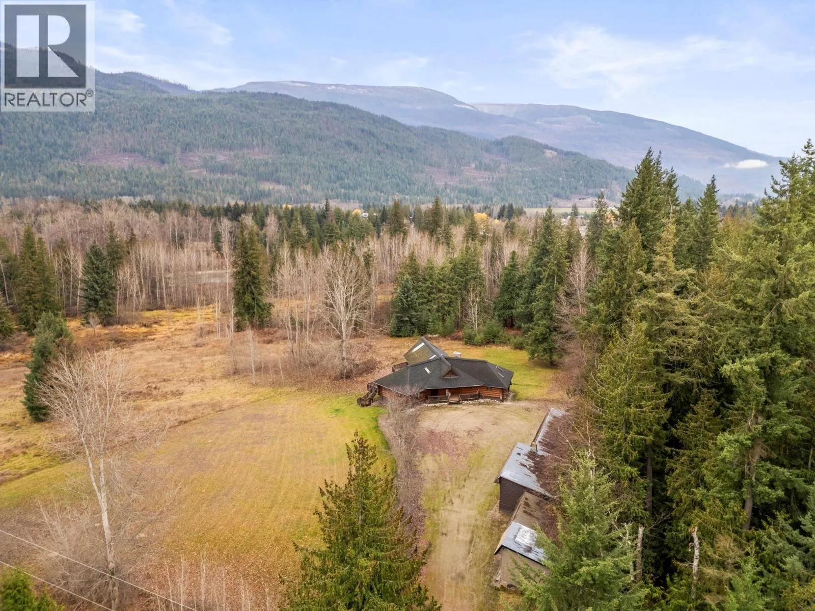 Beautiful custom log home on 16 private acres with 1800 feet along the Eagle River, just five minutes from Sicamous and Shuswap Lake. Enjoy serene surroundings, a large wrap-around deck, and plenty of usable yard space. Inside, the home features vaulted ceilings, custom woodwork, skylights, and a bright, open main living area with stunning views. The spacious kitchen offers ample storage and a breakfast bar. The primary suite includes an ensuite, walk-in closet, and deck access, with three additional bedrooms in a separate wing for added privacy. A wood spiral staircase leads to the bright walk-out basement, perfect for a home theatre, games area, gym, or hobbies. An outbuilding provides covered storage, a garage, workshop, and secure space for all your toys. (id:27476)