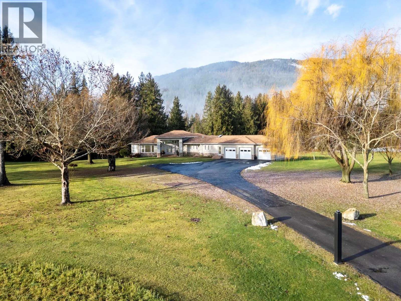 Welcome to an exceptional 5,882 sq.ft. luxury estate set on 23 private acres along the Eagle River. A grand entrance leads to soaring 16â ceilings and massive floor-to-ceiling windows that frame serene views of the river, lush grounds and abundant wildlife. The chef-inspired gourmet kitchen features a large island, walk-in pantry, and elegant cherrywood cabinetry and doors throughout. Retreat to the expansive 400+ sq.ft. primary suite with a spa-like ensuite including a soaker tub, walk-in shower, double sinks and heated floors, conveniently connected to a generous walk-in closet and nearby laundry. Perfect for entertaining, the home offers a spectacular games room with built-in bar, wine cellar and media room, plus two large guest bedrooms in the walkout basement. Enjoy distributed audio throughout, triple car garage and impressive solar system with 54 panels producing approx. 20-22 MW annually. RV guests are welcomed with 30-amp power, water and septic. Outdoors you'll find two large tents, a shop, newly drilled high-output well, 3â irrigation to each field, 31 sprinkler zones on timers, fruit trees and approx. 3 acres of lush lawn. A rare opportunity to own a private riverfront estate designed for comfort, efficiency and unforgettable gatherings. Contact the listing agent for further details or to arrange your private showing. GST applies to small portion. (id:27476)