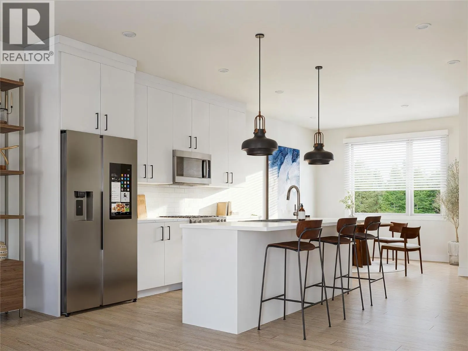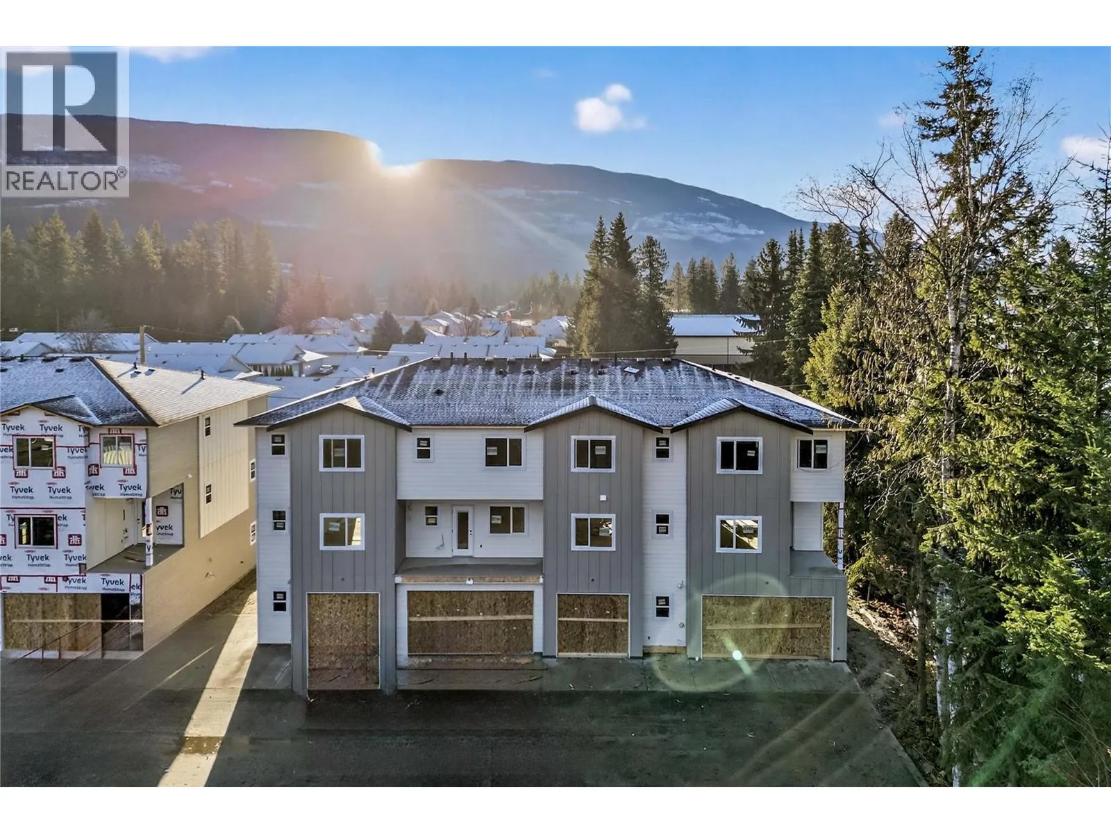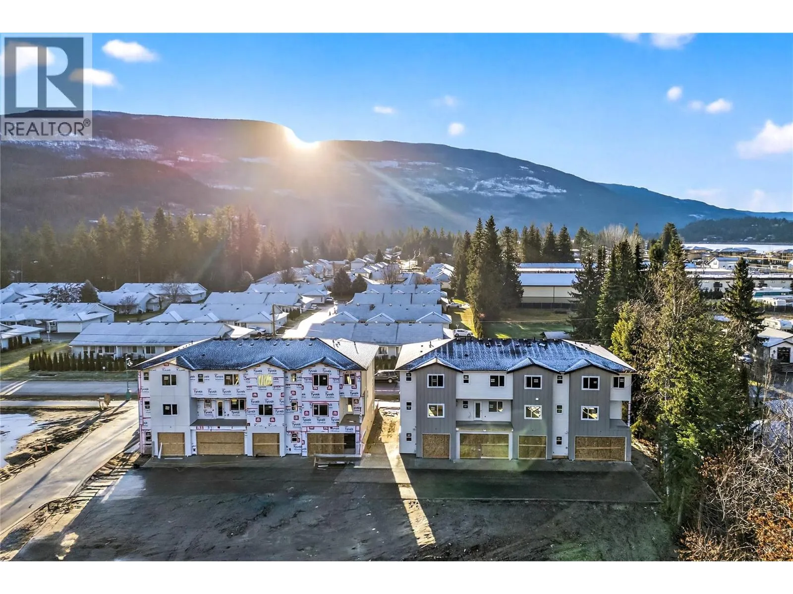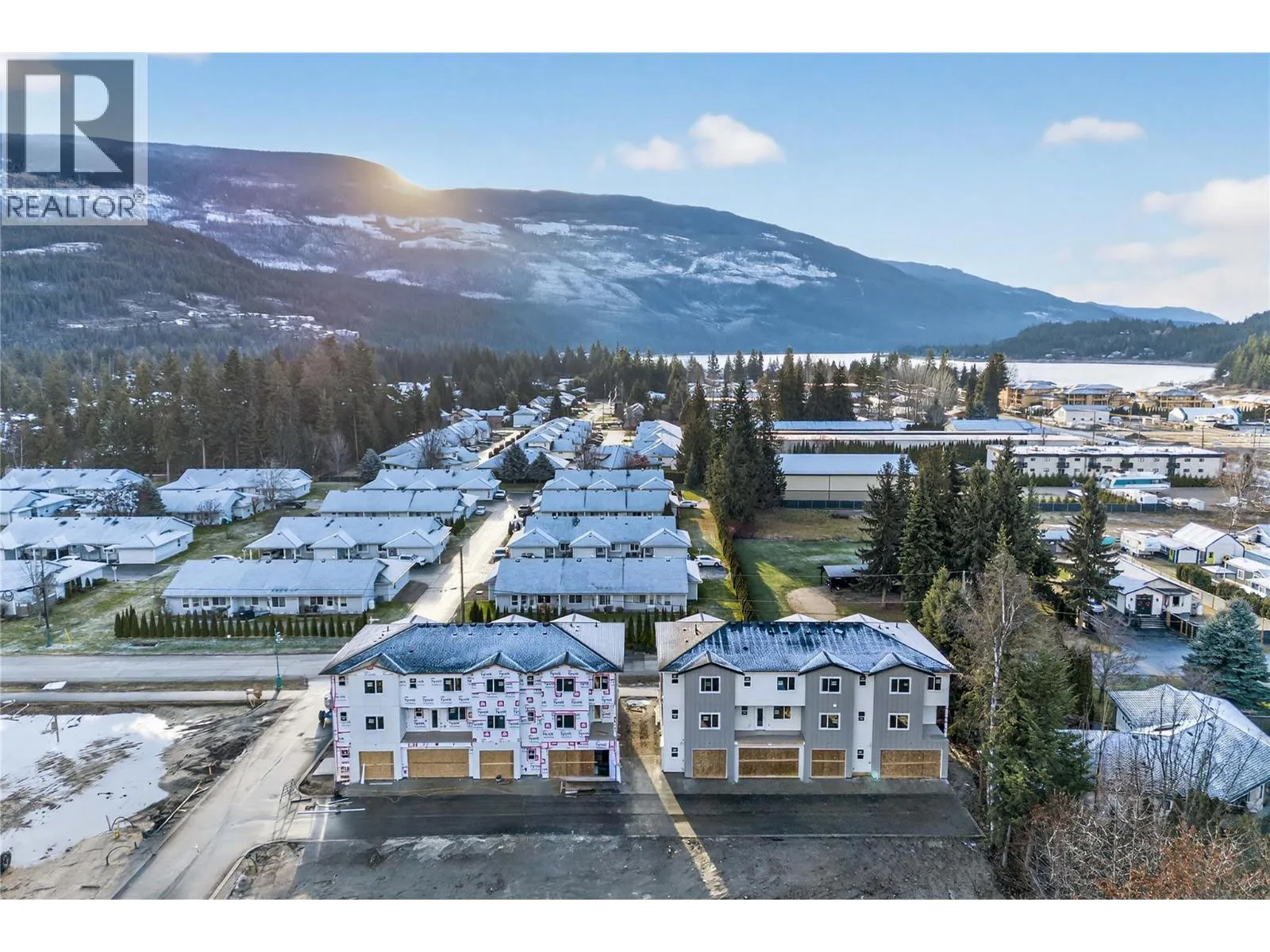 Welcome to #1 at MaraVista in Sicamous. This rare corner unit offers exceptional privacy with only 1 shared wall, making it one of the most desirable locations in the complex. Enjoy 1,582 sq.ft. of modern living plus a large 663 sq.ft. garage w/ 8â overhead door & 39â deep x 19.5â wide âideal for vehicles, lake toys, bikes, snowmobiles & storage. The open-concept main floor is bright & functional, featuring a stylish kitchen with eating bar, electric fireplace, dining area, powder room, & access to a 7â x 8.5â deck for relaxing & entertaining. Upstairs offers 2 spacious bedrooms + den, with both bedrooms featuring private ensuites, plus a full walk-in closet in the primary & convenient upper-floor laundry. Finished with quartz countertops throughout, white wood grained cabinetry, matte black hardware, neutral vinyl plank flooring, & enhanced soundproofing. The exterior includes durable HardiePlank siding, energy-efficient windows, & a high-efficiency mini-split A/C system for year-round comfort. A fully fenced yard adds bonus outdoor space for pets and children. Located in a prime walkable Sicamous location close to downtown, parks, the beach, schools, & everyday amenities. Prewired for fibre optic internet . Only 5% down + $5,000 appliance credit available for first 4 units sold. Low strata fee $356.11/month. Pet restrictions apply. Second of the four season destination only 22 minutes to Salmon Arm, 45 minutes to Revelstoke and 50 Minutes to Vernon. Possession spring 2026. (id:27476)