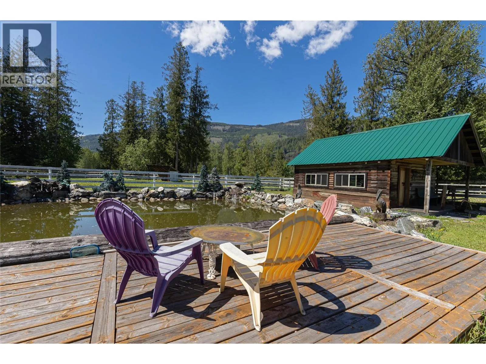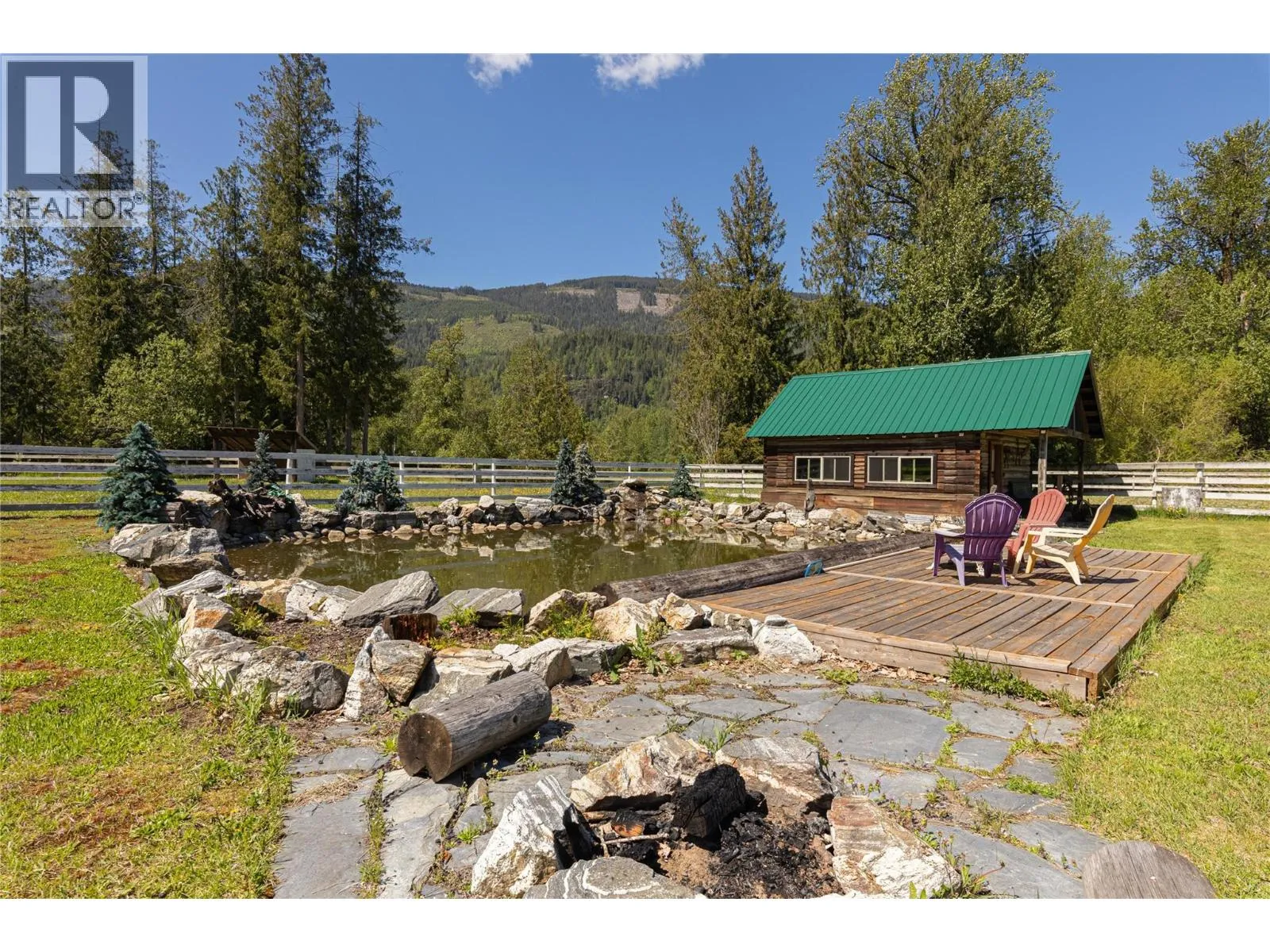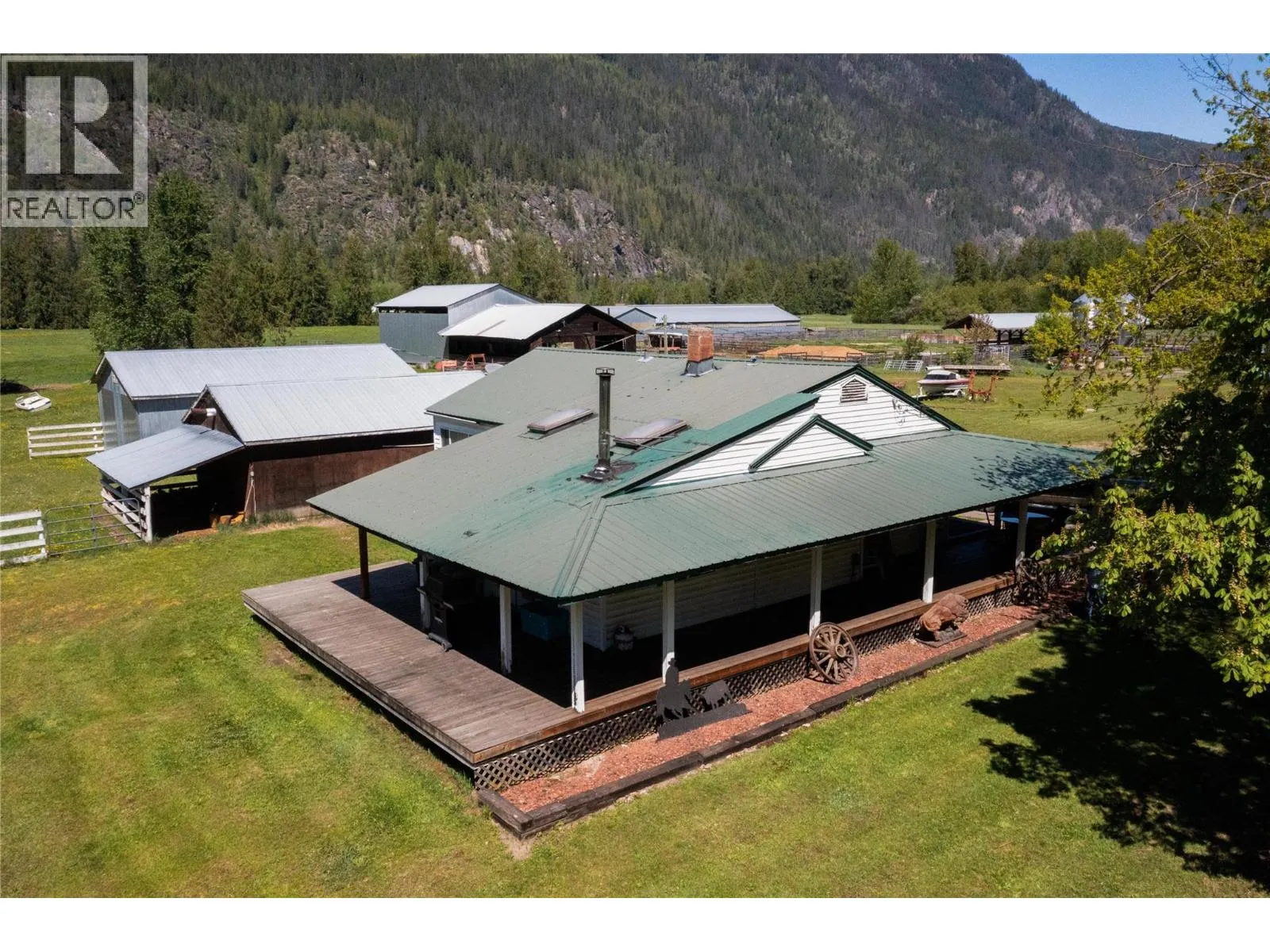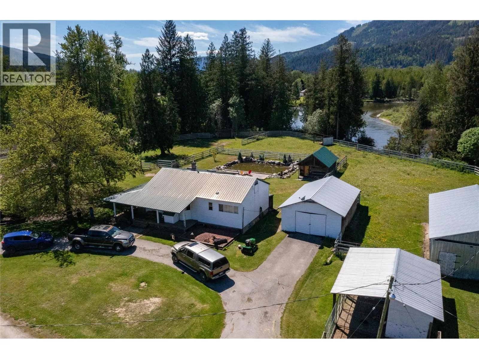 51 acre ranch on approximately 1km on beautiful Eagle River frontage, flows into Shuswap Lake. Well kept 3 bedroom, 1800 sq.ft family home with sky lights, forced air Hi Efficiency furnace and wood heat, large basement and wrap round deck, garage 30x20, Work shop 40x26, Hay shed 110x40, Covered feed alley 128 ft, Second shop 84x34, barn 96x50. Log cabin 20x16. Great spot for a cattle, feed lot or horse farm 45 acres of good hay production, you could make it into waterfront Recreation retreat. Drilled well. Est 40 gpm (id:27476)