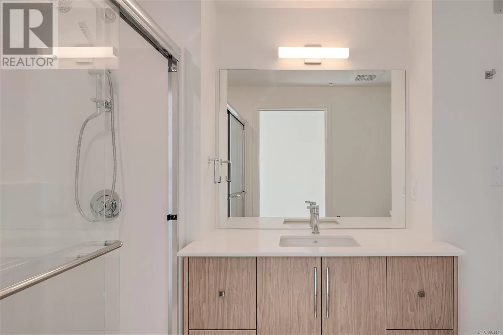 Brand new condo in beautiful Sidney by the Sea! This now complete stunning new construction condo offers the perfect blend of luxury and convenience in a boutique building with only 11 exclusive units. Boasting 2 spacious bedrooms and 2 spa inspired bathrooms & insuite laundry. This home features elegant hardwood flooring, providing a warm and inviting atmosphere. The gourmet kitchen is a chef's delight, complete with high-end appliances, sleek countertops, and ample storage space. Large windows allow for lots of natural light. Enjoy a sun drenched balcony with ocean glimpses. Parking included and pets welcome. Situated in a prime location, you're just a short stroll away from all the amenities Sidney has to offer, including charming cafes, exquisite restaurants, and the serene oceanfront. Experience the best of seaside living in this exquisite condo! (id:27476)