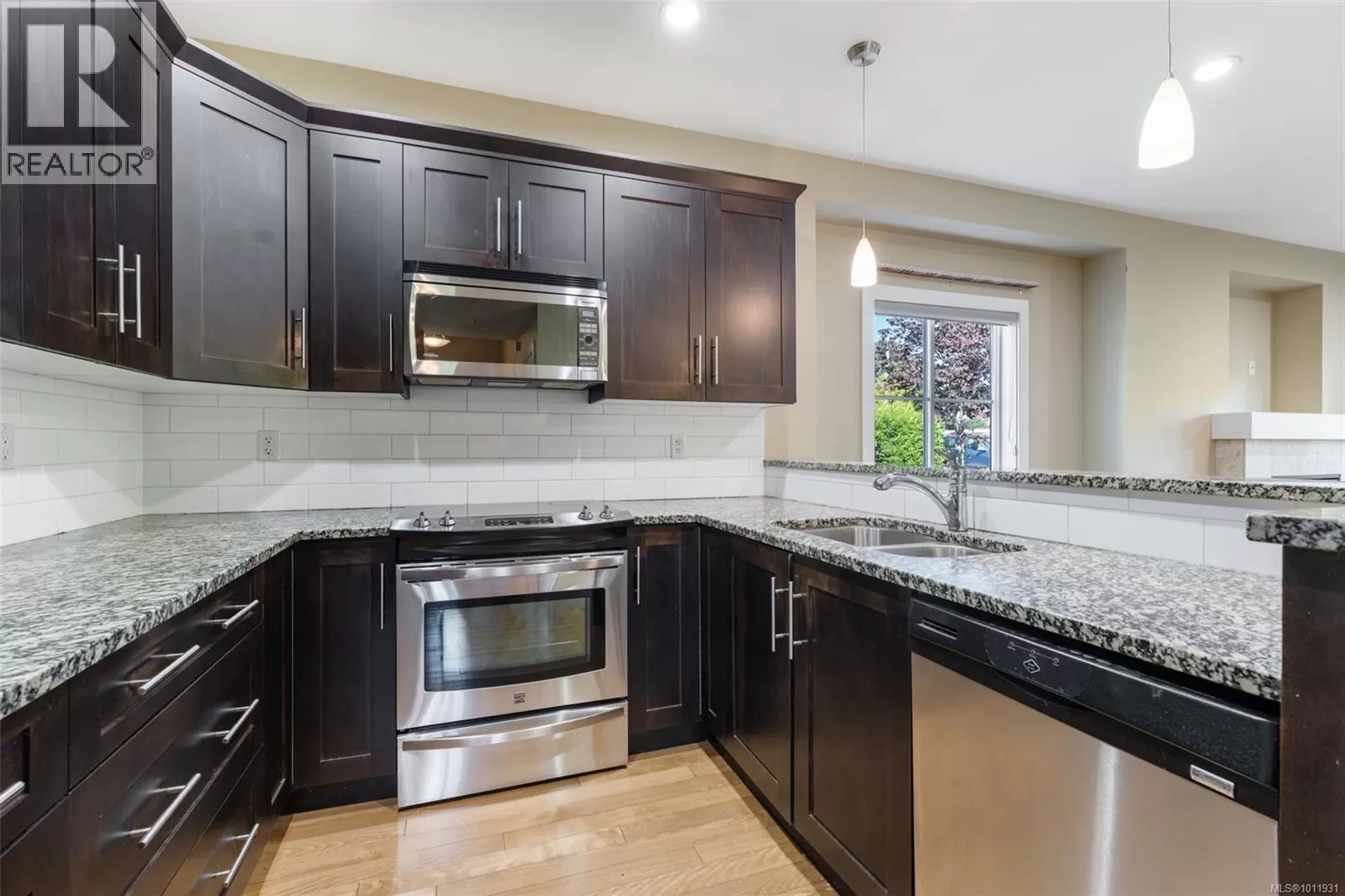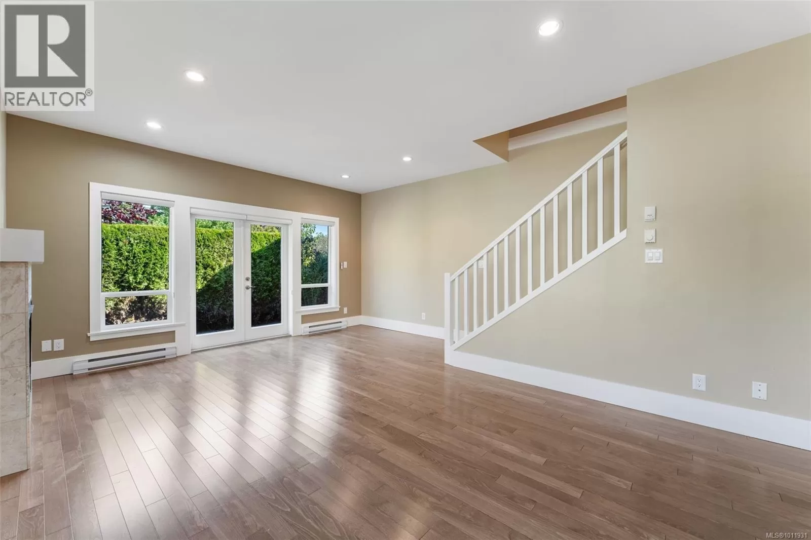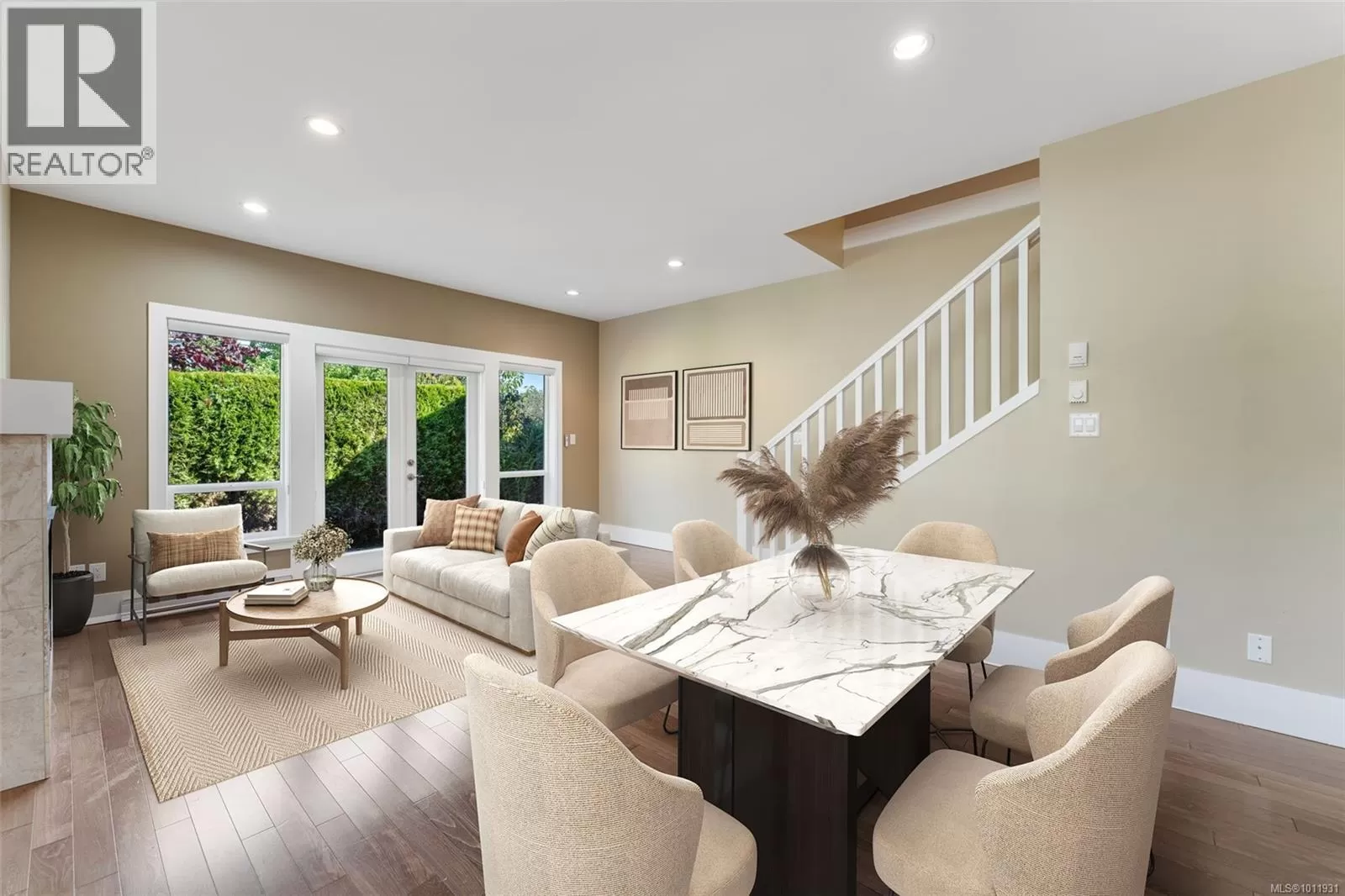 modern townhome tucked away in a quiet Sidney neighbourhood, just minutes from the ocean and all the charm of downtown. Offering 3 bedrooms and 3 bathrooms over 1,500 sq. ft., this home blends comfort with convenience. The open main floor is bright and inviting with 9â ceilings, hardwood floors, a cozy gas fireplace, and Nu Heat heated bathroom floors. The kitchen boasts granite countertops, stainless steel appliances, quality Grohe plumbing fixtures, and ample workspace, flowing seamlessly into the dining and living areas. With the option of a primary bedroom on the main floor or upstairs, this home is designed with flexibility to suit your lifestyle, guests, or family. Step outside to a private patio for morning coffee or summer barbecues, with minimal yard work to maintain. A single-car garage provides secure parking and storage. Additional highlights include ground-level entry for easy access and the security of a boutique complex of just four unitsâadding excellent underlying land value. Priced well below the assessed value of $1,031,000 and vacant for quick possession, this is a rare opportunity to own a move-in-ready home in one of Sidneyâs most sought-after locations. (id:27476)