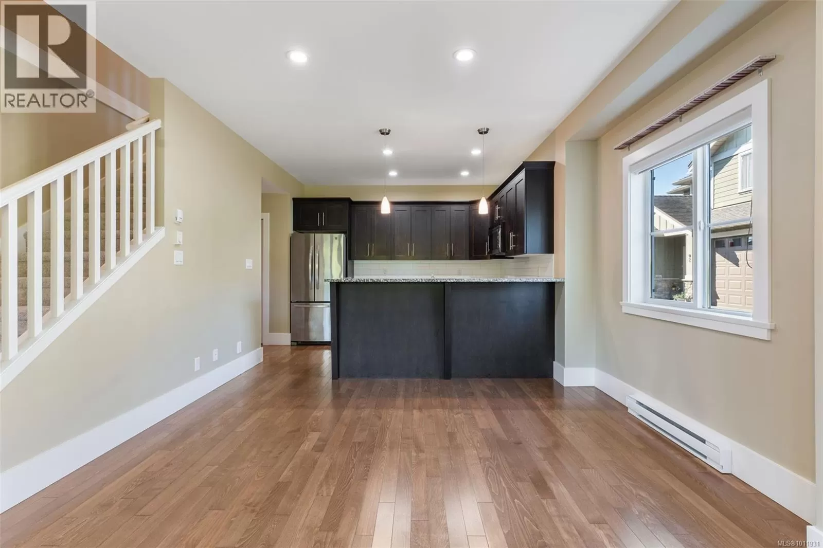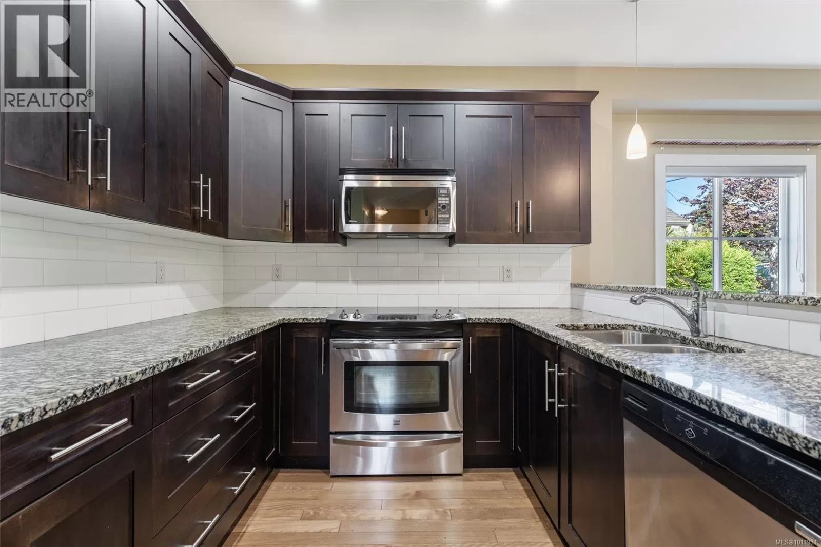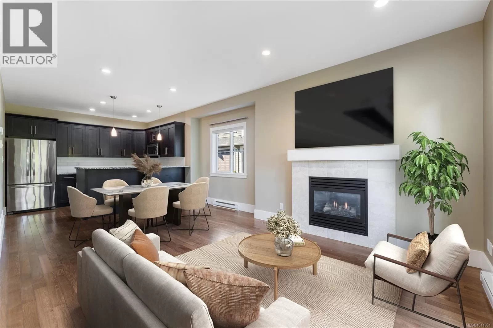 modern townhome tucked away in a quiet Sidney neighbourhood, just minutes from the ocean and all the charm of downtown. Offering 3 bedrooms and 3 bathrooms over 1,500 sq. ft., this home blends comfort with convenience. The open main floor is bright and inviting with 9â ceilings, hardwood floors, a cozy gas fireplace, and Nu Heat heated bathroom floors. The kitchen boasts granite countertops, stainless steel appliances, quality Grohe plumbing fixtures, and ample workspace, flowing seamlessly into the dining and living areas. With the option of a primary bedroom on the main floor or upstairs, this home is designed with flexibility to suit your lifestyle, guests, or family. Step outside to a private patio for morning coffee or summer barbecues, with minimal yard work to maintain. A single-car garage provides secure parking and storage. Additional highlights include ground-level entry for easy access and the security of a boutique complex of just four unitsâadding excellent underlying land value. Priced well below the assessed value of $1,031,000 and vacant for quick possession, this is a rare opportunity to own a move-in-ready home in one of Sidneyâs most sought-after locations. (id:27476)
