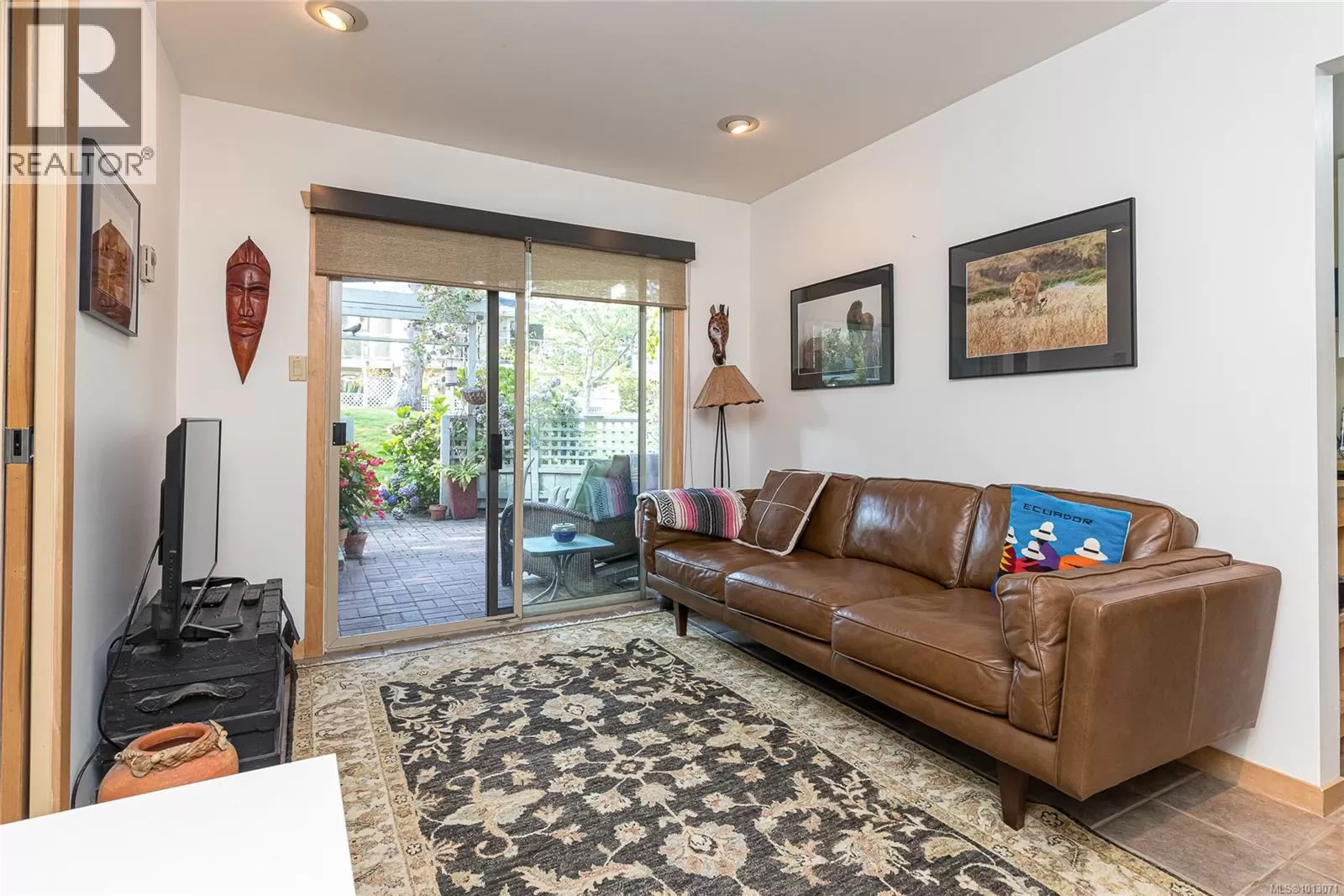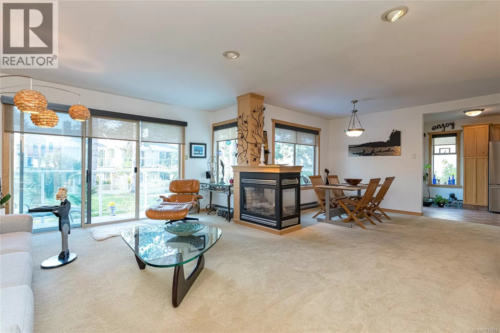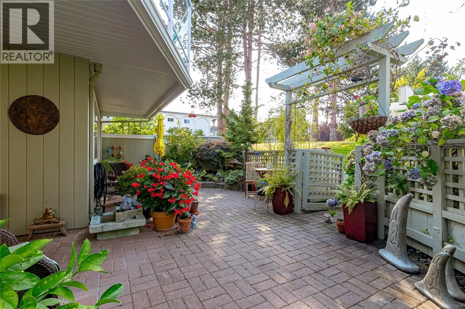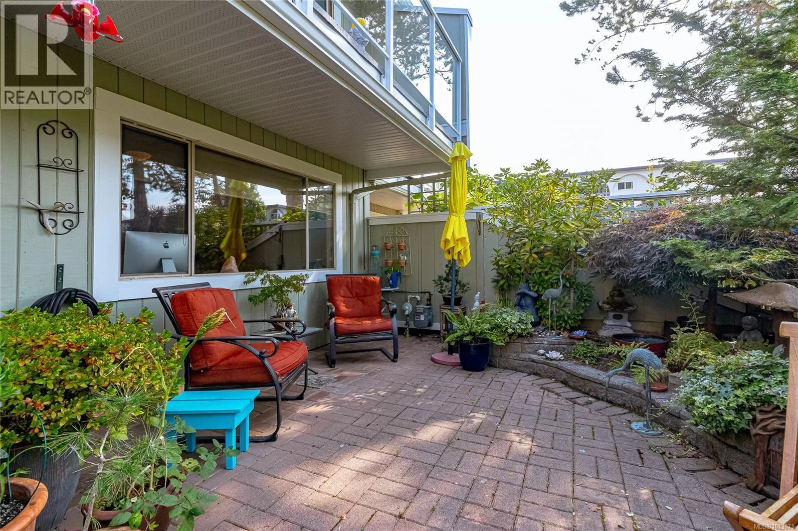 This highly sought-after, end-unit townhouse is sure to impress, offering 1769 SQ FT w/3 BRs, 2 BAâs, a DBL car garage, and custom staircase, wood & metal work throughout. This unit boasts a stunning end-to-end patio & an fully updated kitchen with a skylight that is open to the dining area. The living room features a two-sided gas fireplace for cozy winter evenings & is also open to the dining area. The spacious MSTR BR includes a fully updated 4 PC ensuite & the 2nd BR on the upper level is currently used as an office with built-ins but is an easy conversion back to a BR. Lower level offers another large BR with a three-piece ensuite & a flex space that opens onto a private, spacious patio & gardens. This unit provides ample storage, a full size laundry area all allowing for downsizing without compromise. Enjoy the convenience of being a minute's walk from the marina, waterfront, beaches, & public tennis courts, all while remaining within walking distance of the amenities of beautiful Sidney By The Sea. Proudly presented by The Ann Watley Group, Ann Watley Personal Real Estate Corporation & Chad Tuggle, Pemberton Holmes Ltd. (id:27476)