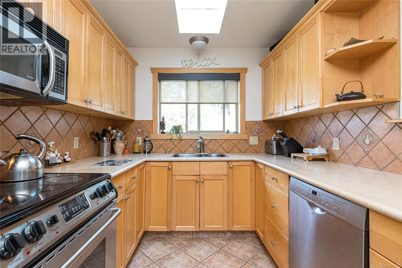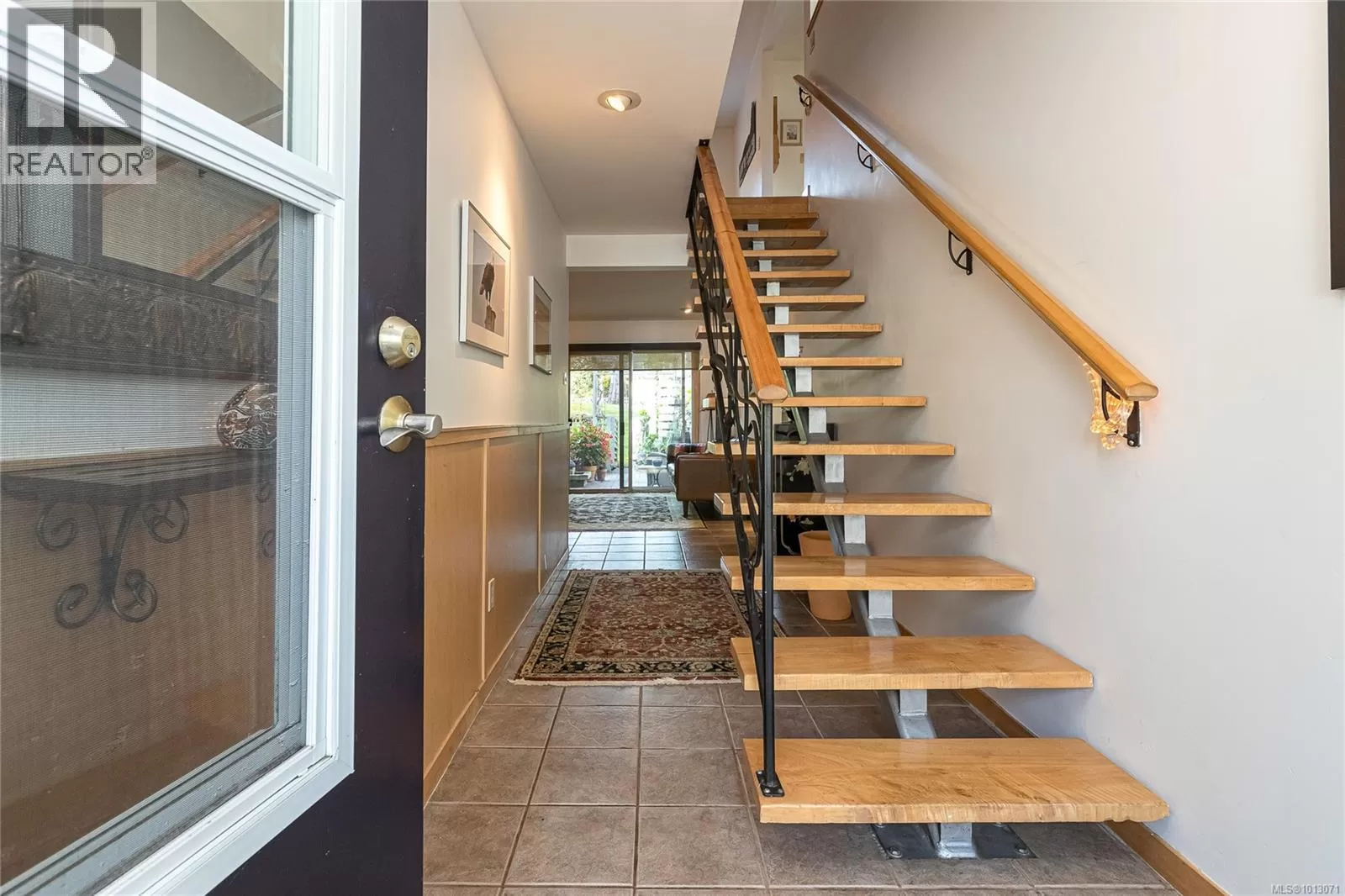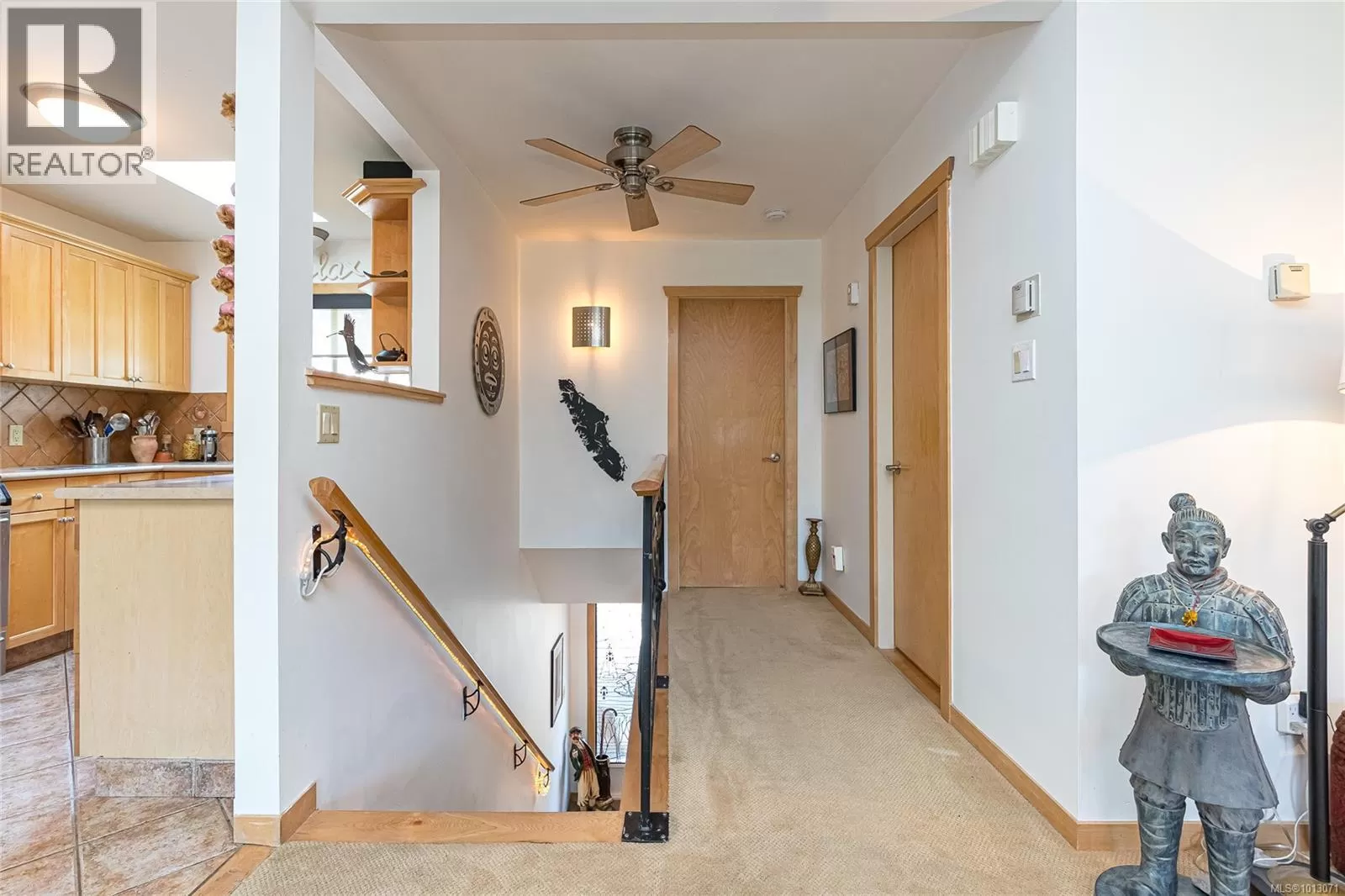 This highly sought-after, end-unit townhouse is sure to impress, offering 1769 SQ FT w/3 BRs, 2 BAâs, a DBL car garage, and custom staircase, wood & metal work throughout. This unit boasts a stunning end-to-end patio & an fully updated kitchen with a skylight that is open to the dining area. The living room features a two-sided gas fireplace for cozy winter evenings & is also open to the dining area. The spacious MSTR BR includes a fully updated 4 PC ensuite & the 2nd BR on the upper level is currently used as an office with built-ins but is an easy conversion back to a BR. Lower level offers another large BR with a three-piece ensuite & a flex space that opens onto a private, spacious patio & gardens. This unit provides ample storage, a full size laundry area all allowing for downsizing without compromise. Enjoy the convenience of being a minute's walk from the marina, waterfront, beaches, & public tennis courts, all while remaining within walking distance of the amenities of beautiful Sidney By The Sea. Proudly presented by The Ann Watley Group, Ann Watley Personal Real Estate Corporation & Chad Tuggle, Pemberton Holmes Ltd. (id:27476)