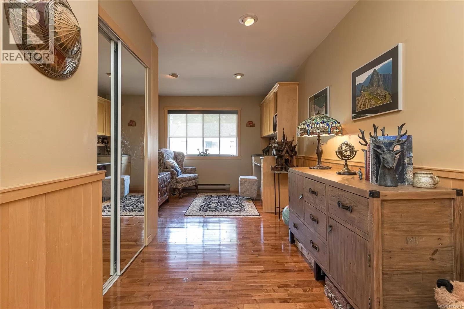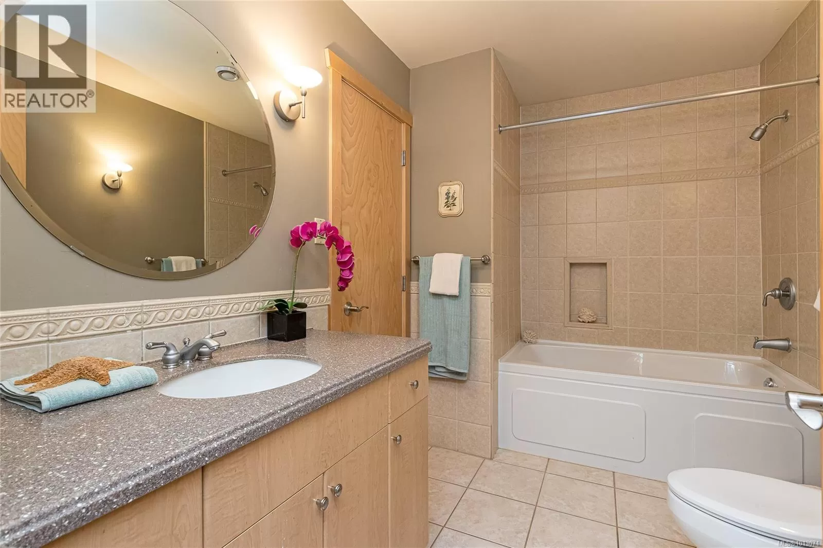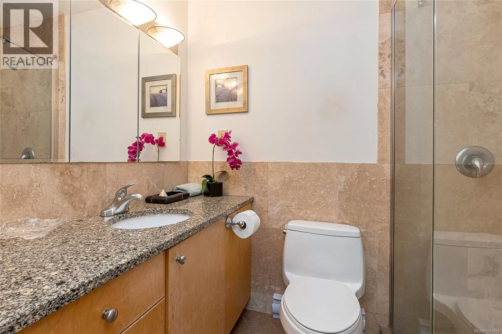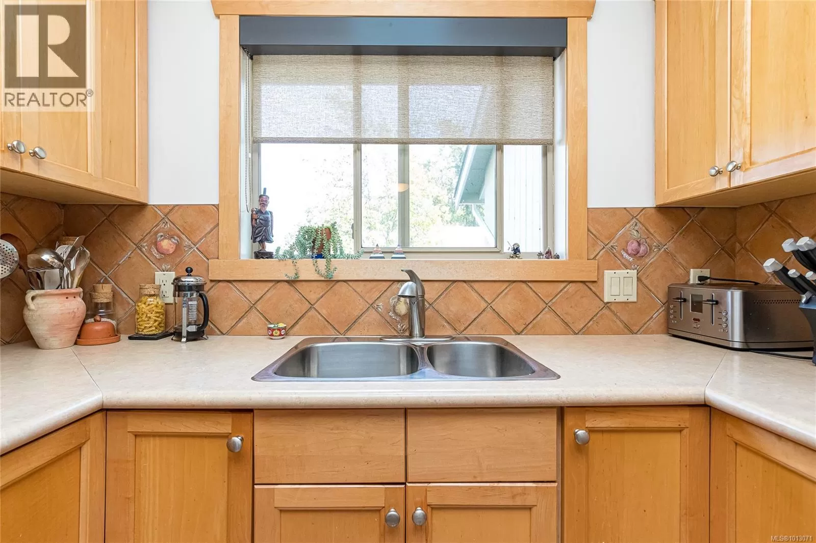 This highly sought-after, end-unit townhouse is sure to impress, offering 1769 SQ FT w/3 BRs, 2 BAâs, a DBL car garage, and custom staircase, wood & metal work throughout. This unit boasts a stunning end-to-end patio & an fully updated kitchen with a skylight that is open to the dining area. The living room features a two-sided gas fireplace for cozy winter evenings & is also open to the dining area. The spacious MSTR BR includes a fully updated 4 PC ensuite & the 2nd BR on the upper level is currently used as an office with built-ins but is an easy conversion back to a BR. Lower level offers another large BR with a three-piece ensuite & a flex space that opens onto a private, spacious patio & gardens. This unit provides ample storage, a full size laundry area all allowing for downsizing without compromise. Enjoy the convenience of being a minute's walk from the marina, waterfront, beaches, & public tennis courts, all while remaining within walking distance of the amenities of beautiful Sidney By The Sea. Proudly presented by The Ann Watley Group, Ann Watley Personal Real Estate Corporation & Chad Tuggle, Pemberton Holmes Ltd. (id:27476)