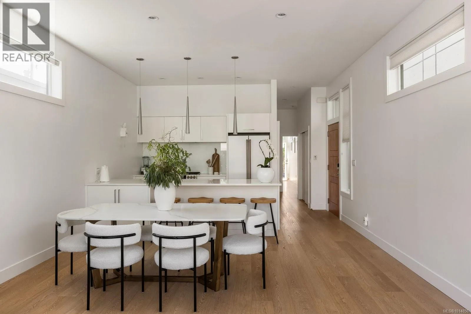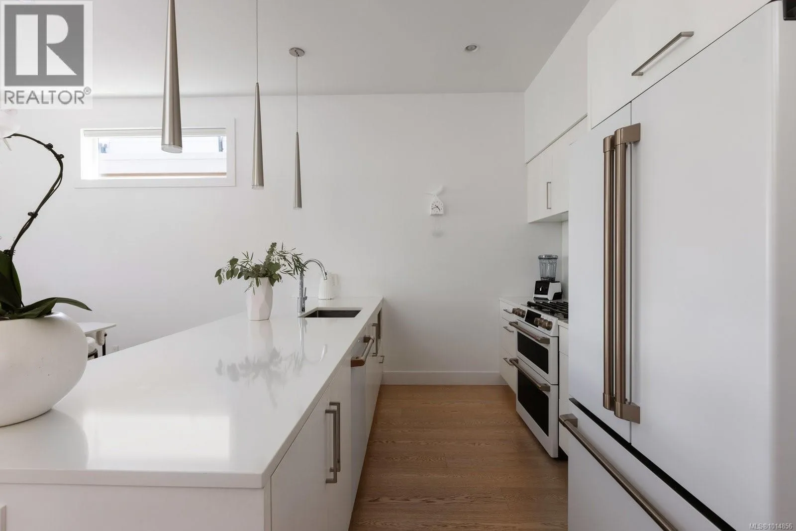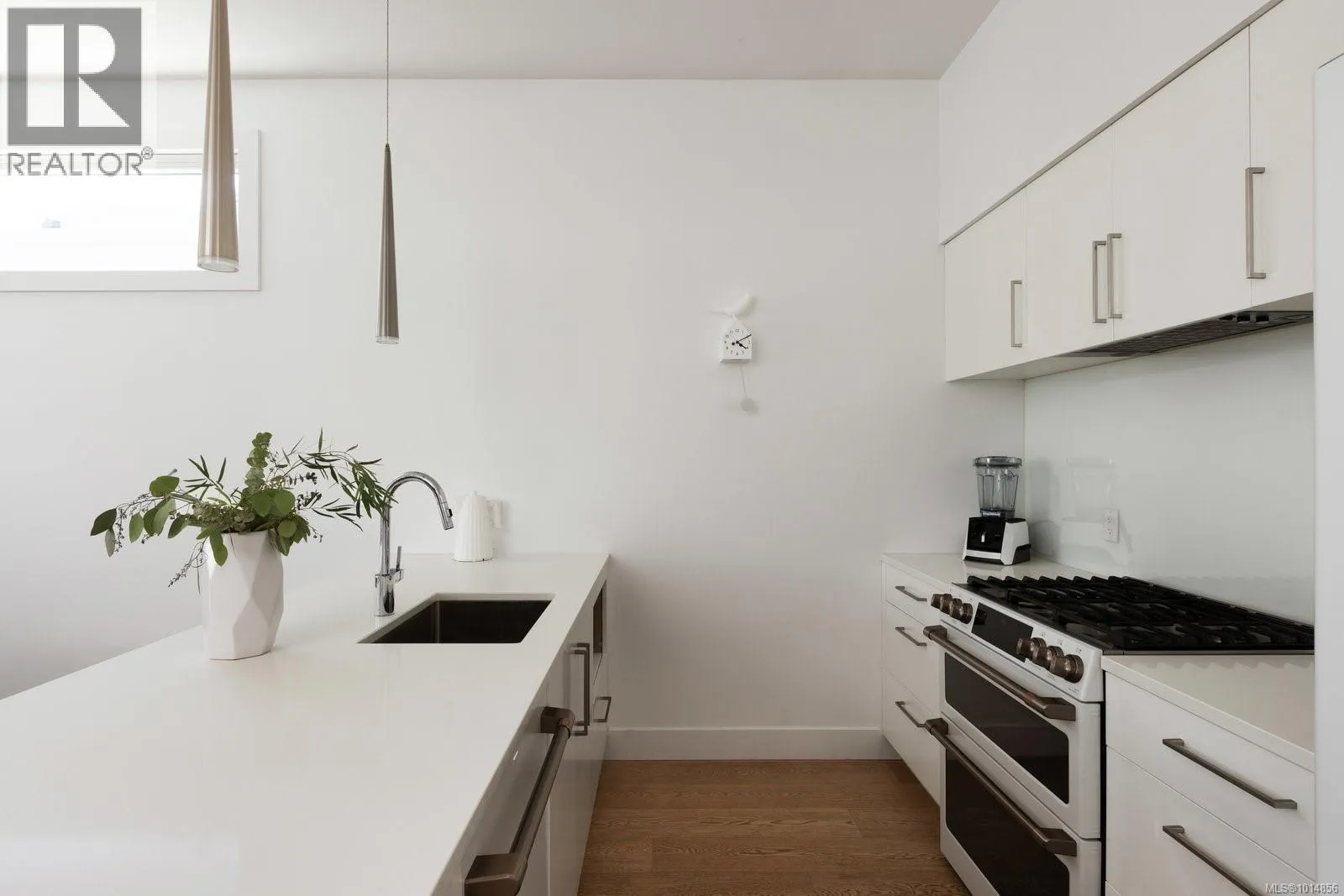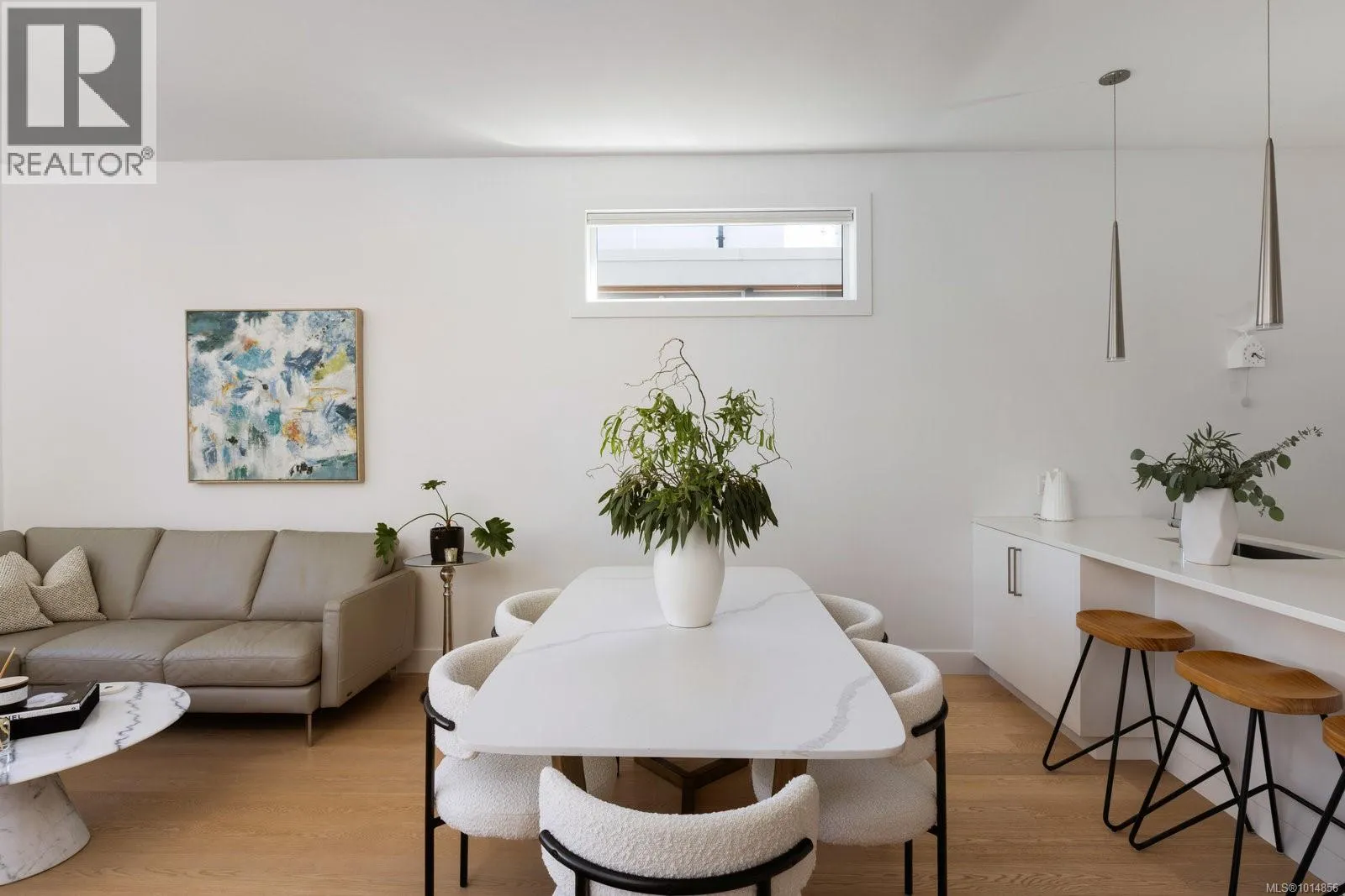 Architecturally stunning West Coast Contemporary home by Sakura Developments with premier ocean viewsâsteps to the beach & two blocks from Beacon Ave. This beautiful 3â4 bed, 2.5 bath home offers two primary bedrooms (main & upper with sweeping views), flexible plan with two laundry rooms & optional 1-bed legal suite. Current owners purchased privately in Oct 2021 and have completed extensive upgrades: legal suite/2nd laundry with new washer/dryer (2023), NEW Café appliances incl. 6-burner gas range with double ovens (2025), wide plank oak hardwood floors (2025), new interior paint, & front yard landscaping (2025). Custom Jason Good kitchen with quartz counters, glass backsplash & massive island. Modern details: 10â ceilings, radiant in-floor heating, on-demand hot water, & custom blinds. Expansive upper patio with panoramic views, heated detached garage with laneway access. Just minutes to Sidneyâs shops, cafes, restaurants, waterfront, airport & ferries (id:27476)
