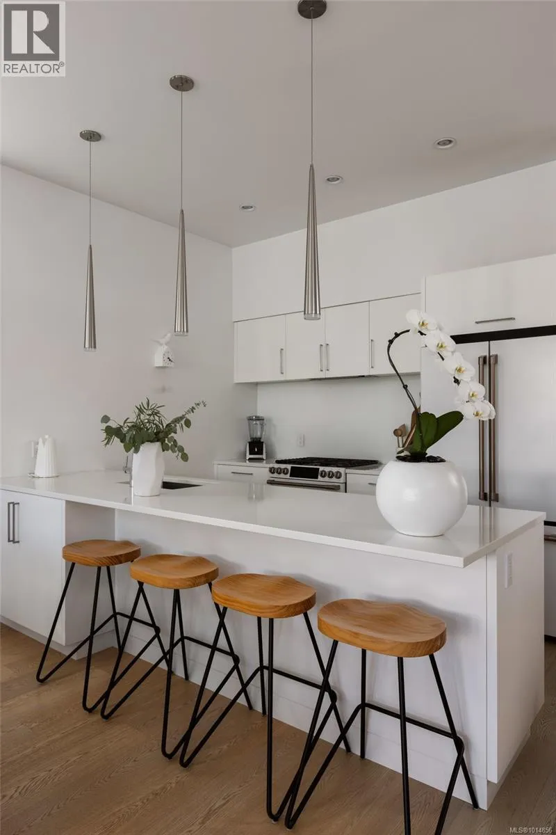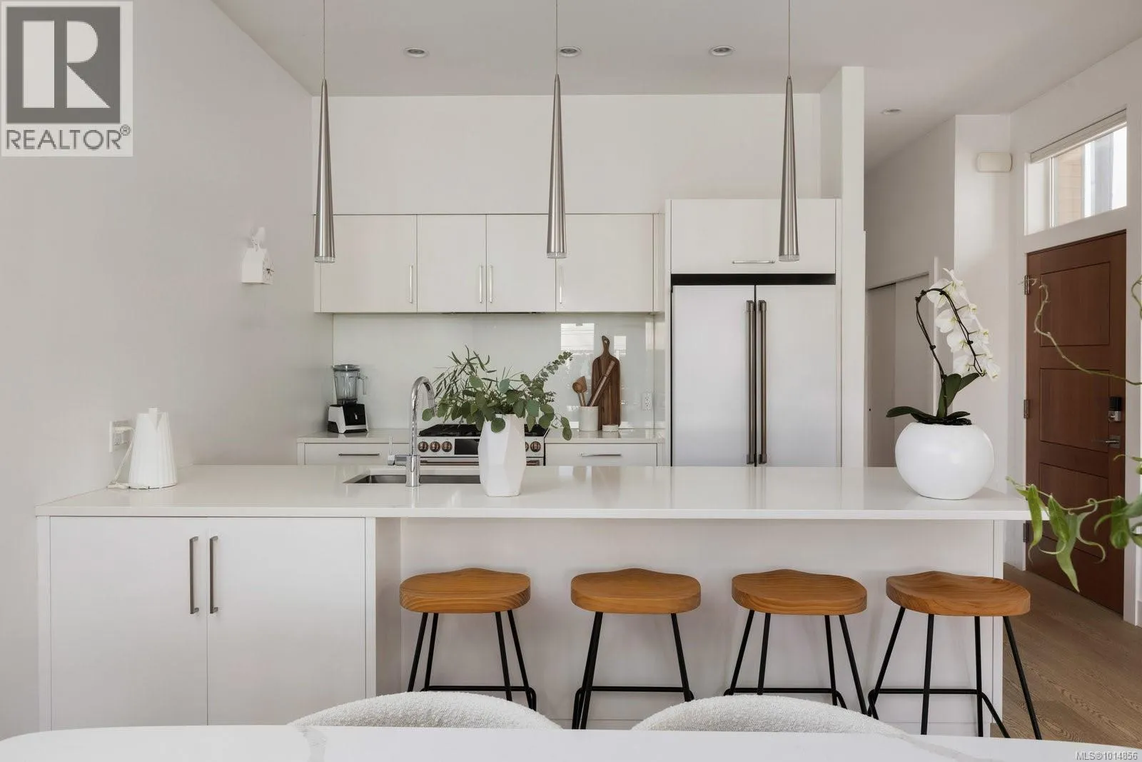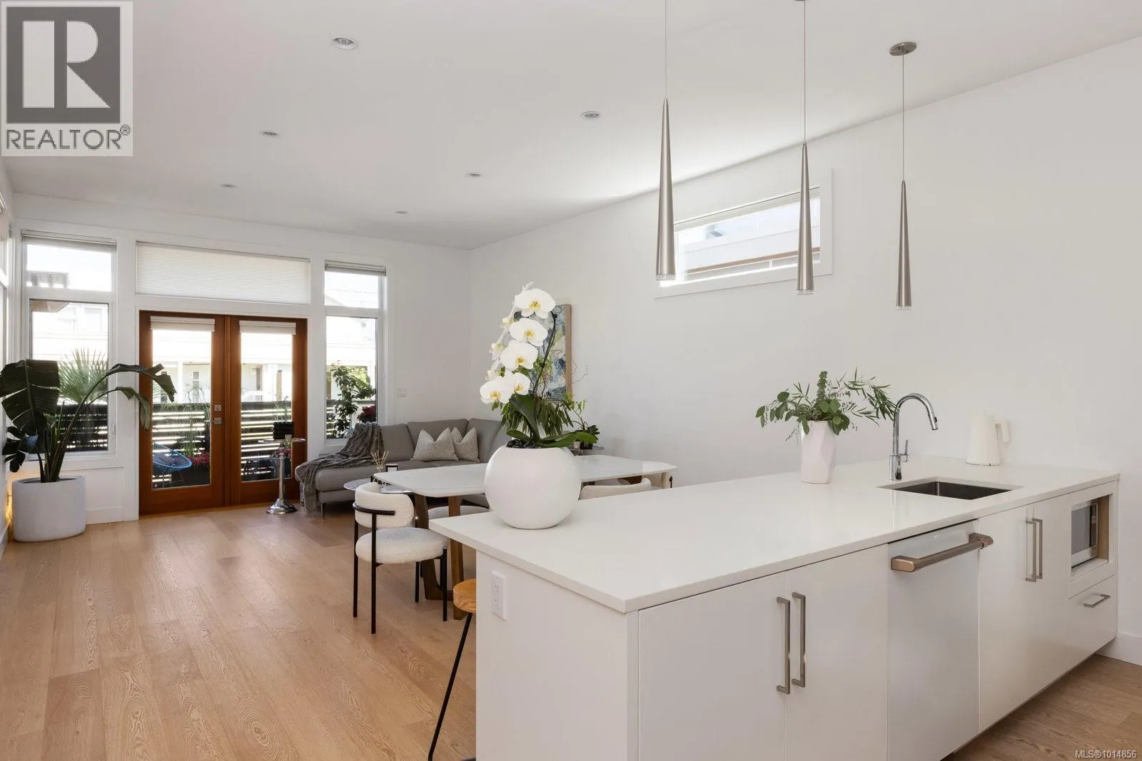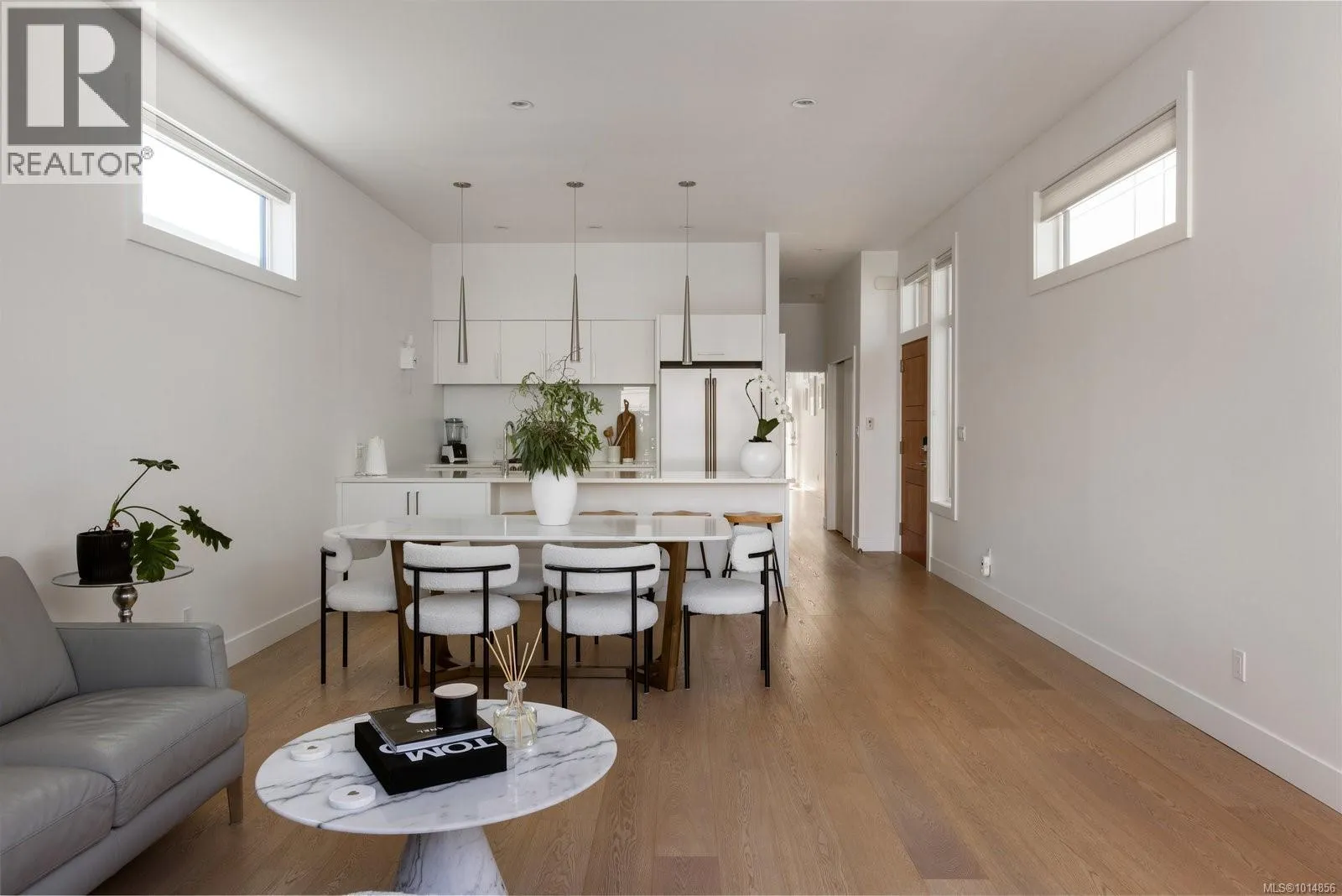 Architecturally stunning West Coast Contemporary home by Sakura Developments with premier ocean viewsâsteps to the beach & two blocks from Beacon Ave. This beautiful 3â4 bed, 2.5 bath home offers two primary bedrooms (main & upper with sweeping views), flexible plan with two laundry rooms & optional 1-bed legal suite. Current owners purchased privately in Oct 2021 and have completed extensive upgrades: legal suite/2nd laundry with new washer/dryer (2023), NEW Café appliances incl. 6-burner gas range with double ovens (2025), wide plank oak hardwood floors (2025), new interior paint, & front yard landscaping (2025). Custom Jason Good kitchen with quartz counters, glass backsplash & massive island. Modern details: 10â ceilings, radiant in-floor heating, on-demand hot water, & custom blinds. Expansive upper patio with panoramic views, heated detached garage with laneway access. Just minutes to Sidneyâs shops, cafes, restaurants, waterfront, airport & ferries (id:27476)
