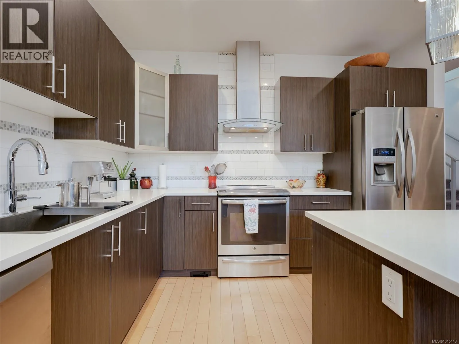 This Contemporary Private Townhome is in one of the most sought after boutique complexes in Sidney By the Sea. From the wood and stone exterior to the exceptional interior finishes, including oversize windows, maple floors and vaulted ceilings, this home makes for a very elegant lifestyle. The kitchen includes top end appliances with wood cabinets and quartz countertops flowing to an open concept living room and out to a very private garden patio. the Primary Suite features a soaker tub, walk in closet and heated tiles. Sidney shopping and the Waterfront are an easy level walk. Open Saturday Nov 8st 1-3 pm. (id:27476)