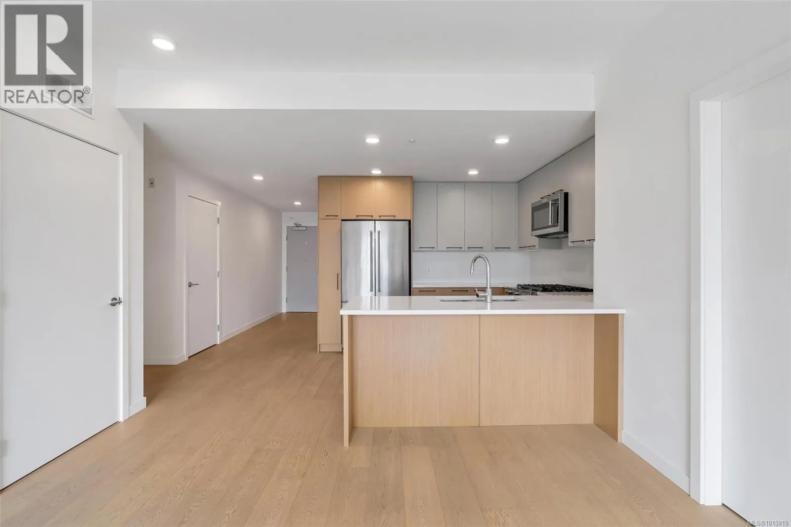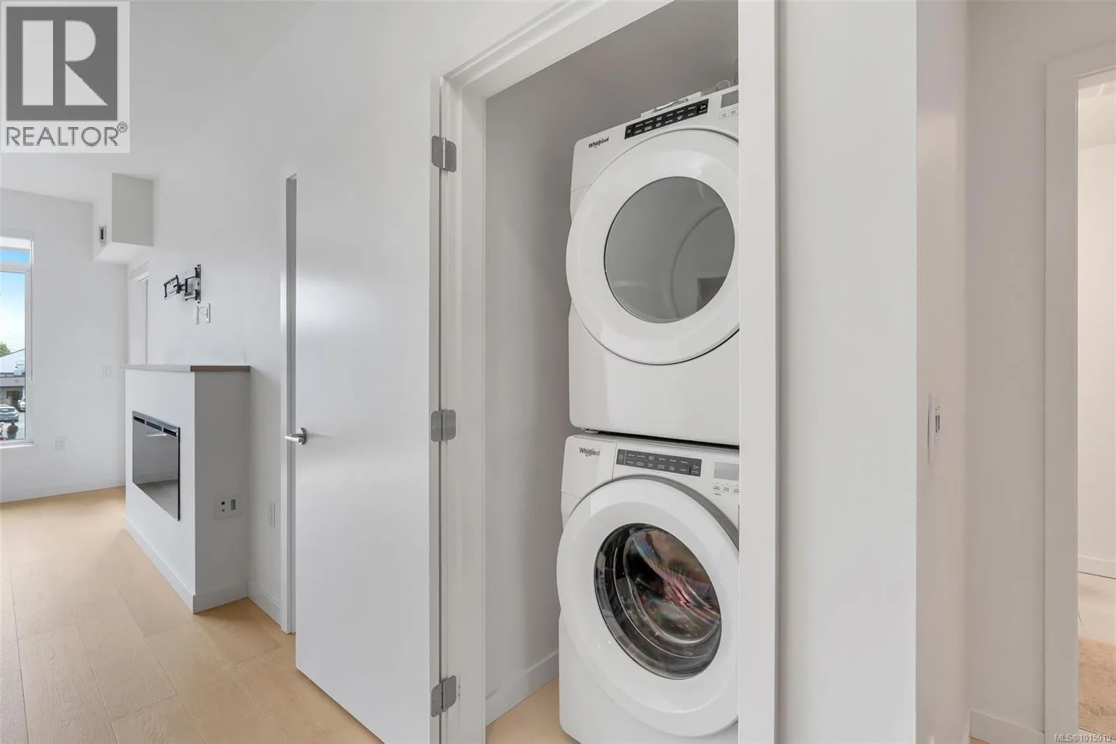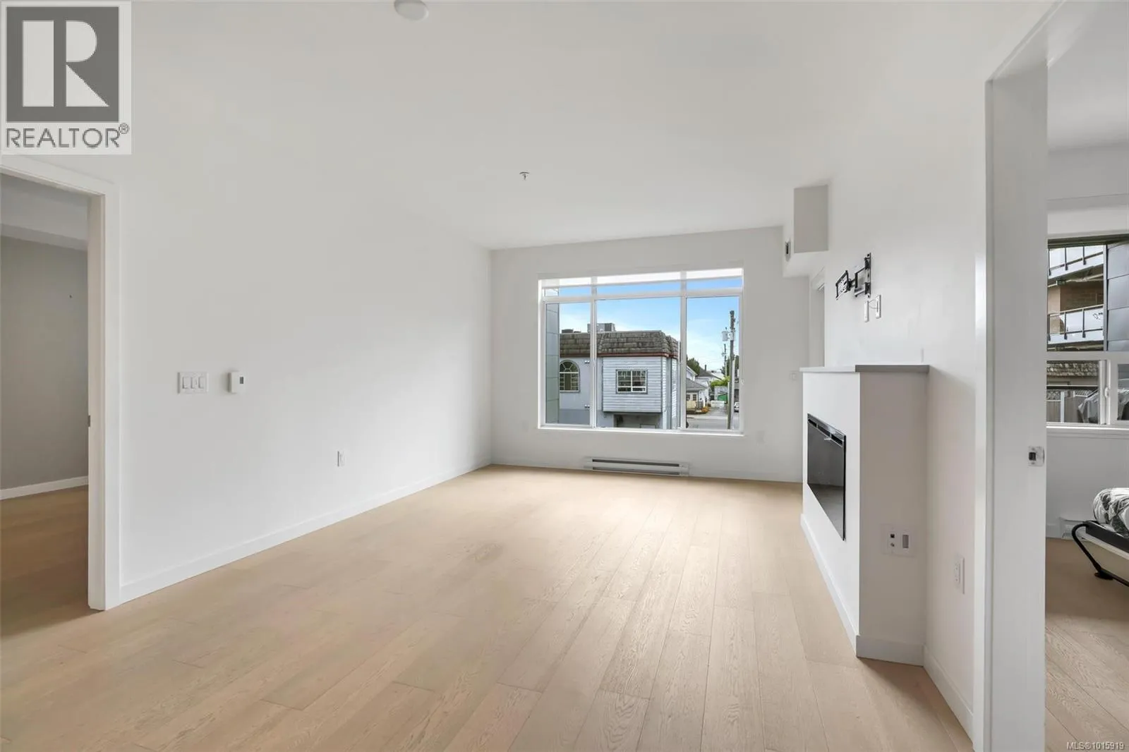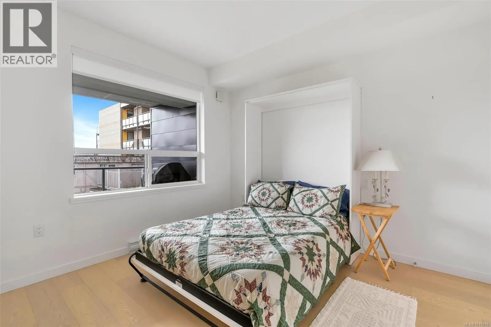 This almost-new 2 bed, 2 bath home offers 1,062 sq.ft. of thoughtfully designed living space in the heart of Sidney. As you enter, a spacious foyer and engineered hardwood floors lead to a stunning kitchen featuring Kitchenaid stainless appliances, quartz counters and backsplash, slow-close cabinetry, under-cabinet lighting, and a peninsula overlooking the bright great room. Large windows, 9â ceilings, and an electric fireplace enhance the living space, which opens to a massive 10â4 x 9â5 covered patioâideal for outdoor living. The generous primary bedroom includes two closets and a sleek 3-piece ensuite with a walk-in shower. A second bedroom with a Murphy bed sits opposite, next to the main 4-piece bath. A separate den adds versatility as a home office or storage. The Quartet is pet-friendly (no size limit), rental-friendly, and has no age restrictions. Itâs also a 100% non-smoking building. Just steps to Beacon Ave, the ocean, parks, and trailsâenjoy a true West Coast lifestyle. (id:27476)