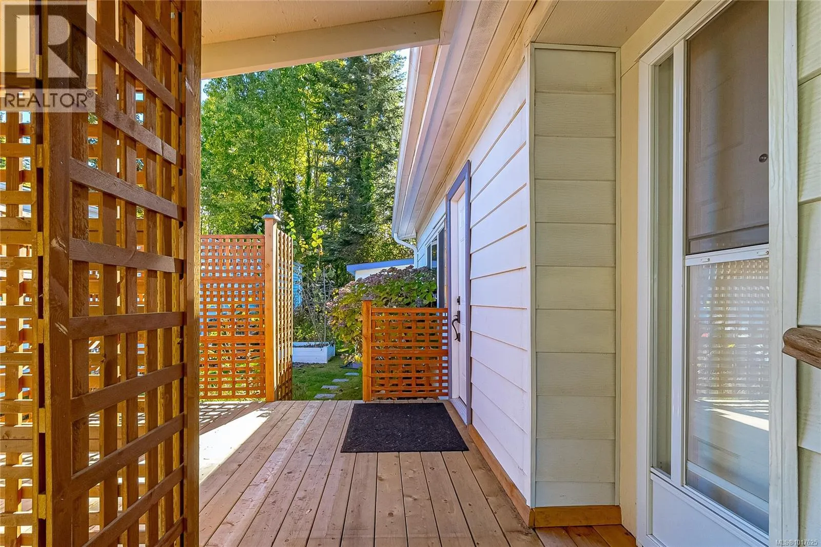 Welcome to Summergate Village, a sought-after 55+ Bareland Strata community of 235 homes. This beautifully updated 2-bed, 2-bath one-level residence shines with thoughtful upgrades throughout. Enjoy a huge new kitchen featuring endless storage with drawers, cupboards, and built-in pantry. The open-concept living and dining area is bright and inviting, enhanced by crown mouldings, and quality wood blinds. Recent improvements include flooring throughout, interior paint, and a new private deck backing onto the forestâperfect for relaxing or entertaining in privacy. A new exterior shed offers additional storage space for gardening tools or hobbies. Comfort is year-round with an efficient heat pump, while updated plumbing, wiring, & vinyl windows ensure peace of mind. The low strata fee of $327/month covers water, sewer, & weekly lawn care. Enjoy vibrant community amenities including a heated indoor pool & hot tub, community hall with daily activities, library, games room, & meeting space. (id:27476)