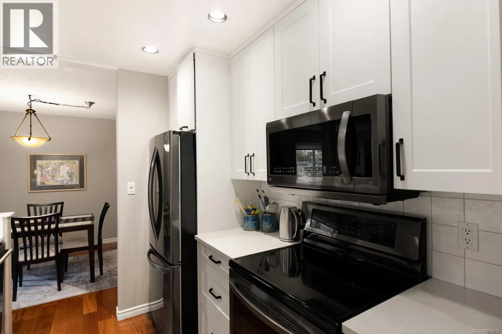 Welcome to 9900 Fifth Street where comfort meets coastal charm in the heart of Sidney. This beautifully updated 2 bedroom condo offers 1,000 sq. ft. of thoughtfully designed living space, just steps from Sidneyâs vibrant shops, cafes, and waterfront. Bathed in natural light, the open-concept layout features engineered cherry wood flooring, an inviting living room with a cozy wood-burning fireplace, and a modern kitchen that seamlessly connects to the dining area. Perfect for everyday living and entertaining. Enjoy your morning coffee or unwind with a book on the fully enclosed, southeast-facing sunroom, a bright retreat for year-round enjoyment. The spacious second bedroom includes custom Murphy bed and built-in office system, while the main bathroom showcases heated tile floors and a luxurious steamer shower. A few more practical features include in-suite laundry, covered off-street parking, and a large powered storage unit. Situated on a bus route with easy access to the airport, ferries, and downtown Victoria. This is effortless Sidney living at its best! (id:27476)