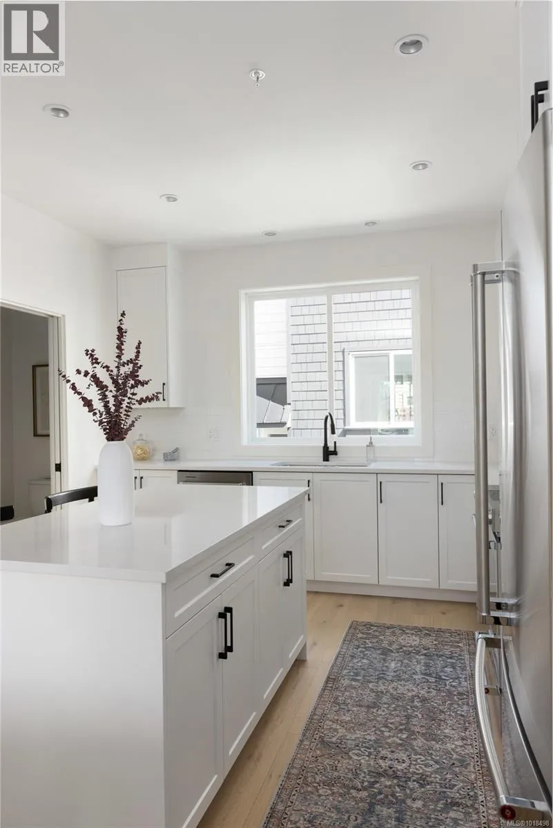 OPEN HOUSE Saturday 1-3PM. Proud to present The Bayside Towns on Fifth - a curated collection of 16 townhomes in Sidney's most desirable neighbourhoods, ROBERT'S BAY. Offering a modern farmhouse aesthetic & varied layouts appealing to young families through to active retirees. This plan offers 3 beds, 3.5 baths, 9' ceilings on main and upper level and oversized single car garage. Light wide-plank hardwood throughout main level & large picture windows will keep the home light & bright. Custom white kitchen cabinets with quartz counters, generous island & stainless steel appliances. Laundry room with sliding barn door on upper level. Efficient heat pump for year round heating and cooling. In-floor heat in all tiled bathrooms, both upper level bedrooms with their own ensuite. Interlocking brick, sunny patio with irrigation. Close to beaches, trails and easy walk to Beacon Ave, this is a 12/10 location! (id:27476)