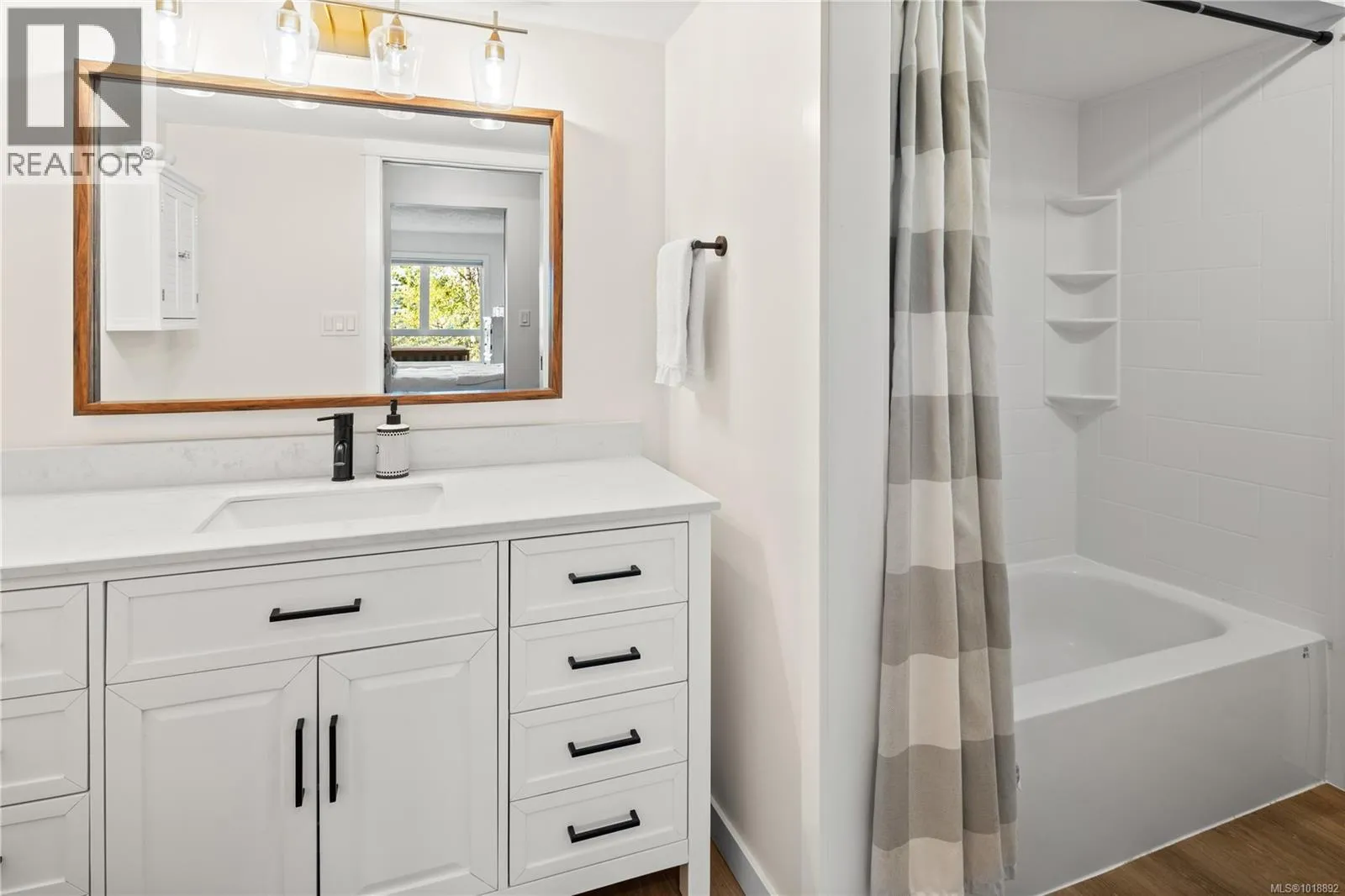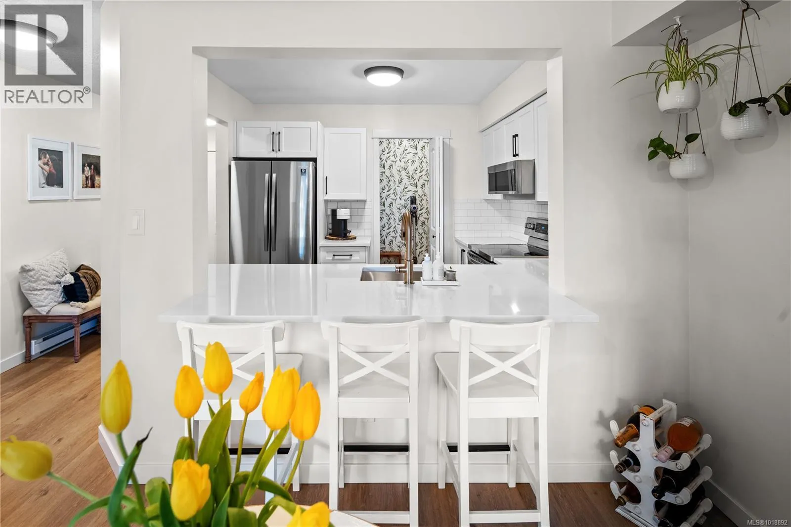 Welcome to The Lady James a well-maintained and beautifully landscaped complex nestled in the charming seaside community of Sidney. This beautifully updated 2-bedroom, 2-bath condo offers a bright, airy layout with an abundance of natural light throughout. Step inside to discover a turnkey home with brand-new flooring, a beautifully remodelled kitchen featuring stainless steel appliances, and stylishly updated bathrooms. Fully equipped in suite laundry with an abundance of storage and a balcony where you can enjoy the afternoon sun. Whether youâre hosting friends or enjoying a quiet night in, the open-concept design is perfect for both relaxing and entertaining. Enjoy the peaceful ambiance of The Lady James complex complete with a serene courtyard and tranquil pond just steps from everything Sidney has to offer. Located just steps to Sidney's charming downtown, restaurants, local boutiques, galleries, and the waterfront boardwalk. This professionally managed non smoking building also includes covered parking, storage locker, and resident workshop. (id:27476)