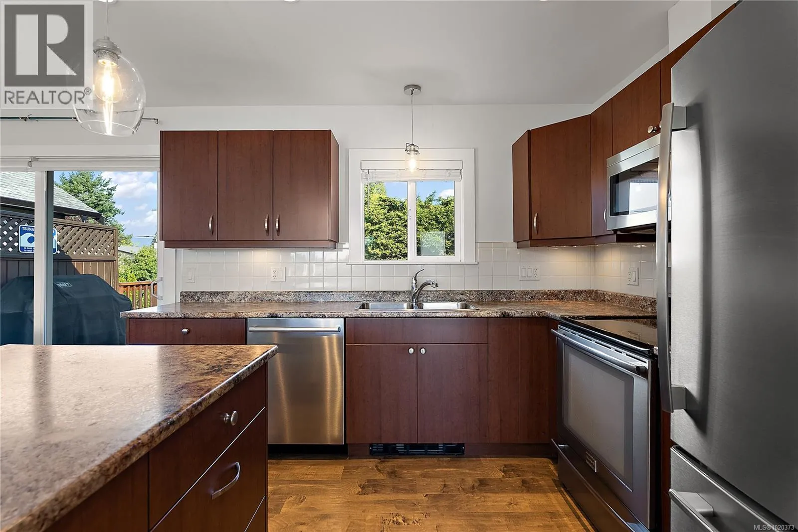 Move-in ready and extensively renovated, this bright and clean home is located on a quiet no-thru street just a short stroll to all of the charming shops, cafes, parks & amenities of beautiful downtown ''Sidney by the Sea''. Upstairs offers a spacious 2-bed, 2-bath layout with a large open-concept living area, kitchen with island, stainless appliances, and access to a generous deck overlooking the fully fenced yard. Downstairs features a self-contained 2-bed suite with private entry, laundry, and patioâideal for extended family or rental income. Renovations include new roof, windows, plumbing, perimeter drains, engineered beam to replace wall, soundproofing with rez bar between floors, and all new electrical including 200 amp with sub panel for main/suiteâall done with permits. A rare Sidney find! See media links for more! (id:27476)