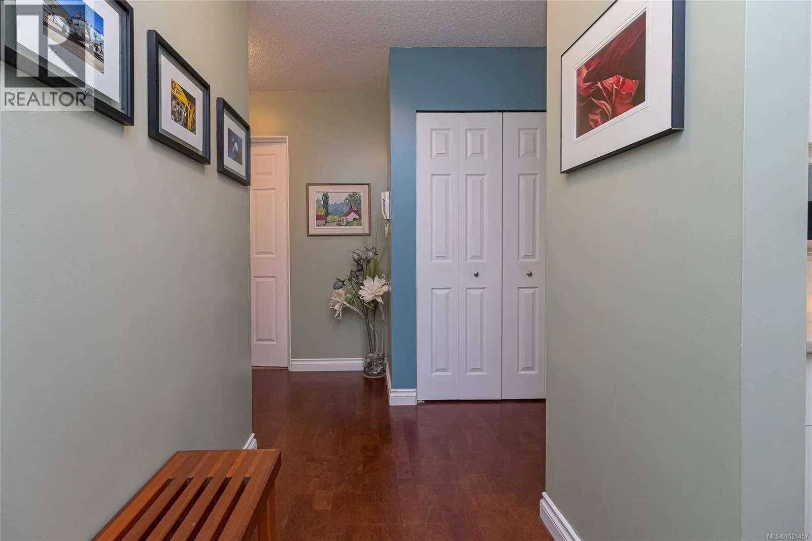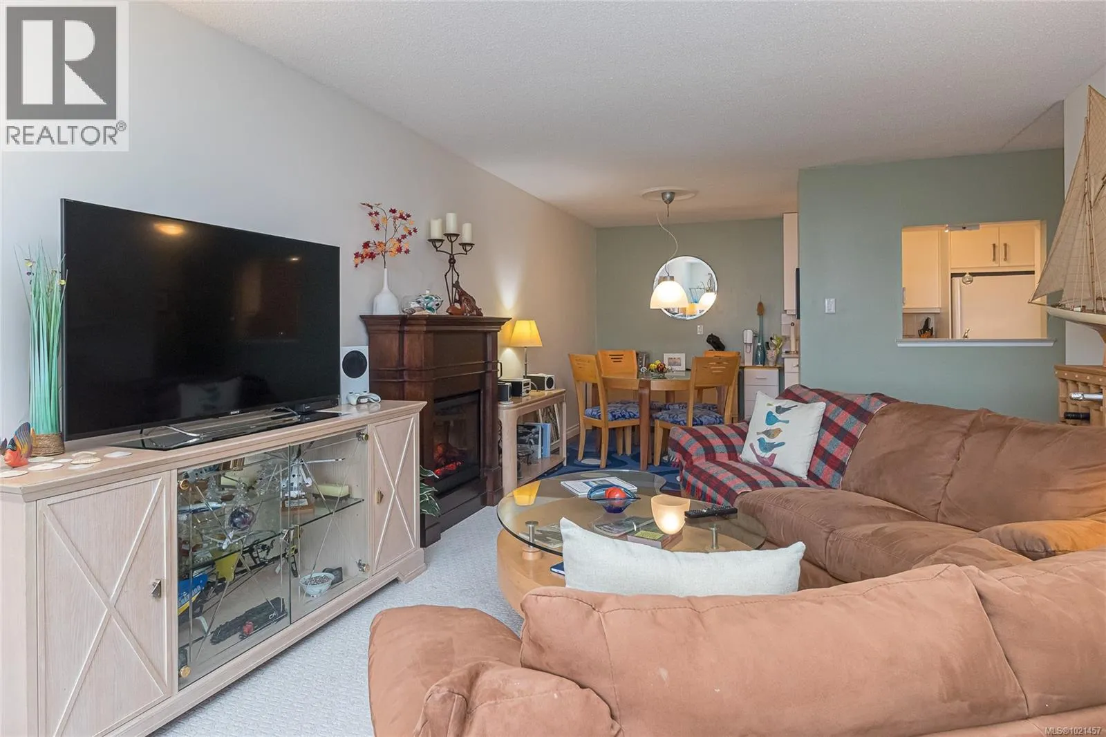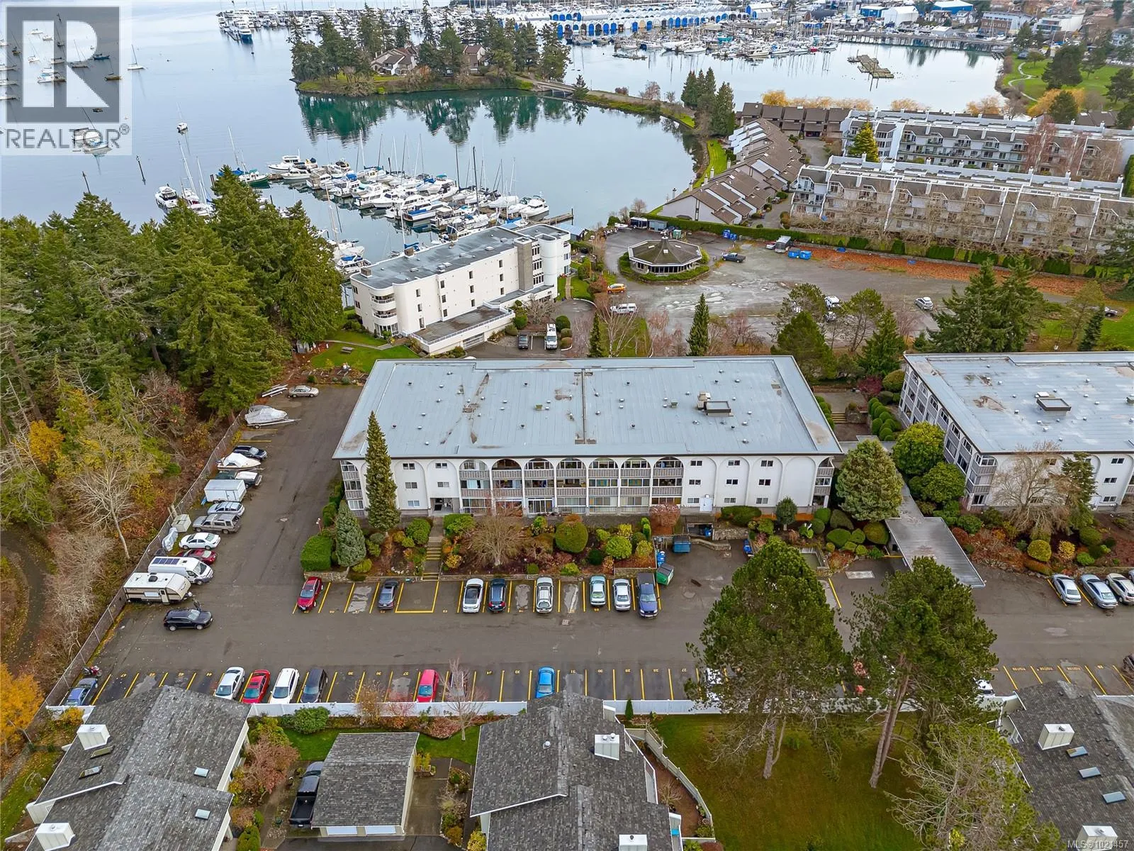 You will be impressed with this top-floor, east-facing condo in the heart of Sidney. Tucked within âMarina Park,â youâre just steps from a stunning waterfront park and surrounded by lush, mature gardens filled with vibrant rhododendrons. This peaceful setting feels serene and picturesque in every season. Inside, the home is truly turn-key with thoughtful updates throughout, including a refreshed kitchen, modern bathroom, cork flooring, and fresh paint. Large windows fill the space with natural light, creating a warm and inviting atmosphere. The expansive, private balcony is a standoutâperfect for soaking up the morning sun. In the summer, leafy birch trees offer a green, tranquil outlook with plenty of visiting birds, while fall through spring brings lovely ocean views. Heat and hot water are included in the strata fee, along with exclusive access to fantastic amenities: a games room, workshop, laundry, beautifully landscaped grounds, secure bike storage, parking and separate storage. A perfect choice for those seeking a quiet retreat close to the ocean and all that Sidney has to offer. (id:27476)