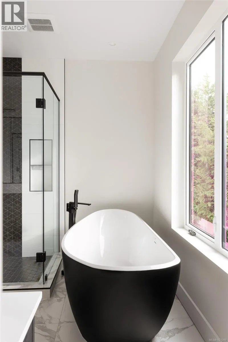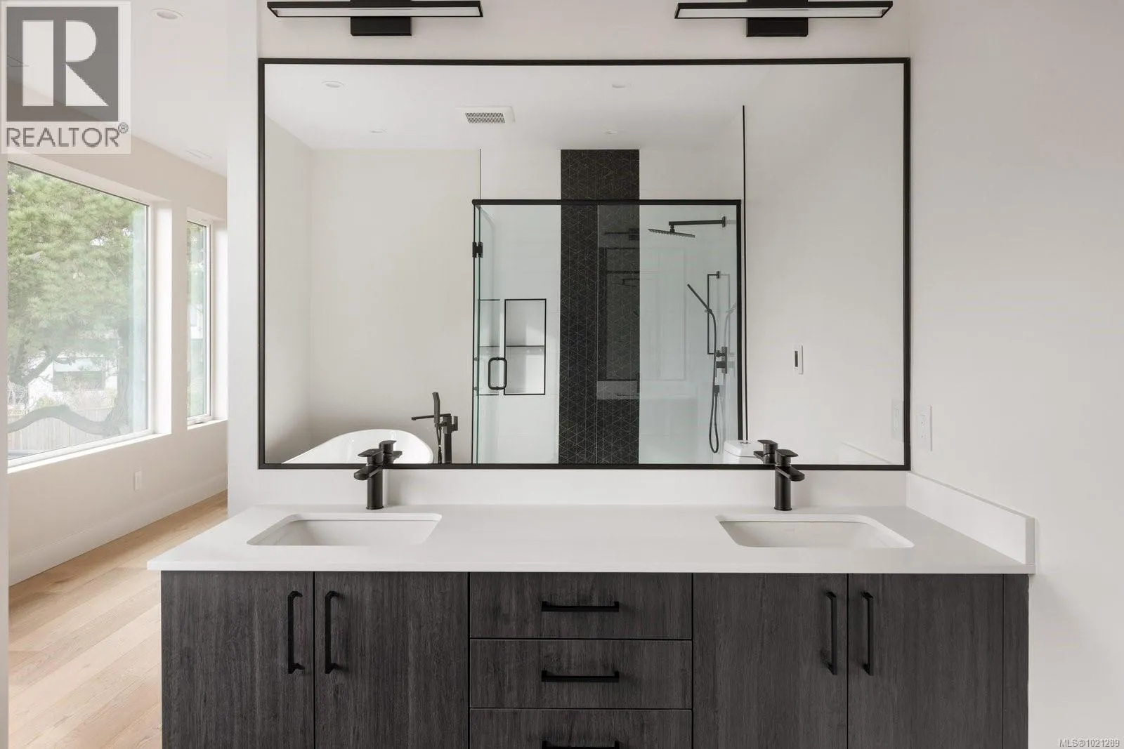 Crafted for discerning coastal buyers, this luxurious new build blends contemporary elegance with unmatched walkability Sidney by the Sea is known for. Tucked on a quiet cul-de-sac and moments from both the Lochside oceanfront trail and world-famous Beacon Ave, this home offers effortless access to seaside living and vibrant amenities. Inside, a bright airy layout showcases premium finishes, a designer kitchen with high-end appliances and a sophisticated great room w/in-floor radiant heat, which opens to a sun-soaked, south-facing & fully fenced yardâperfect for indoor-outdoor living. Three generously sized bedrooms provide comfort and privacy with the primary suite offering refined detailing and a spa-inspired ensuite. A flexible office/den leads to the expansive rooftop patio delivering stunning ocean views and creates a truly memorable setting for relaxation or entertaining. A spacious garage adds practicality to this coastal sanctuary. (id:27476)
