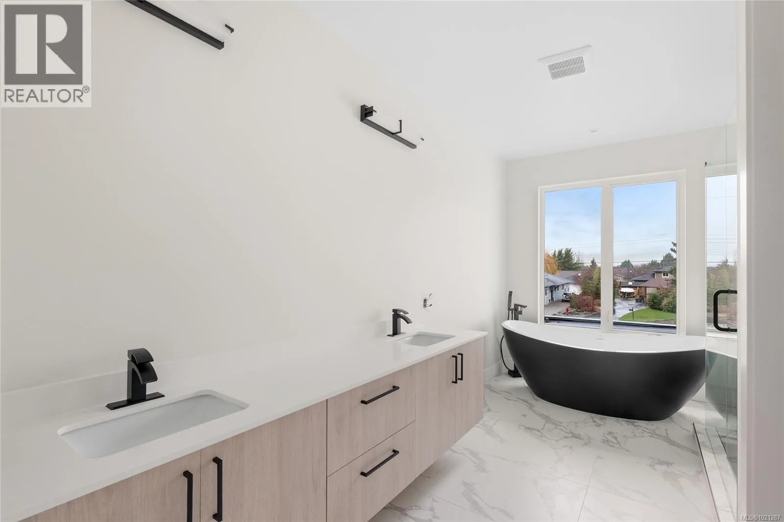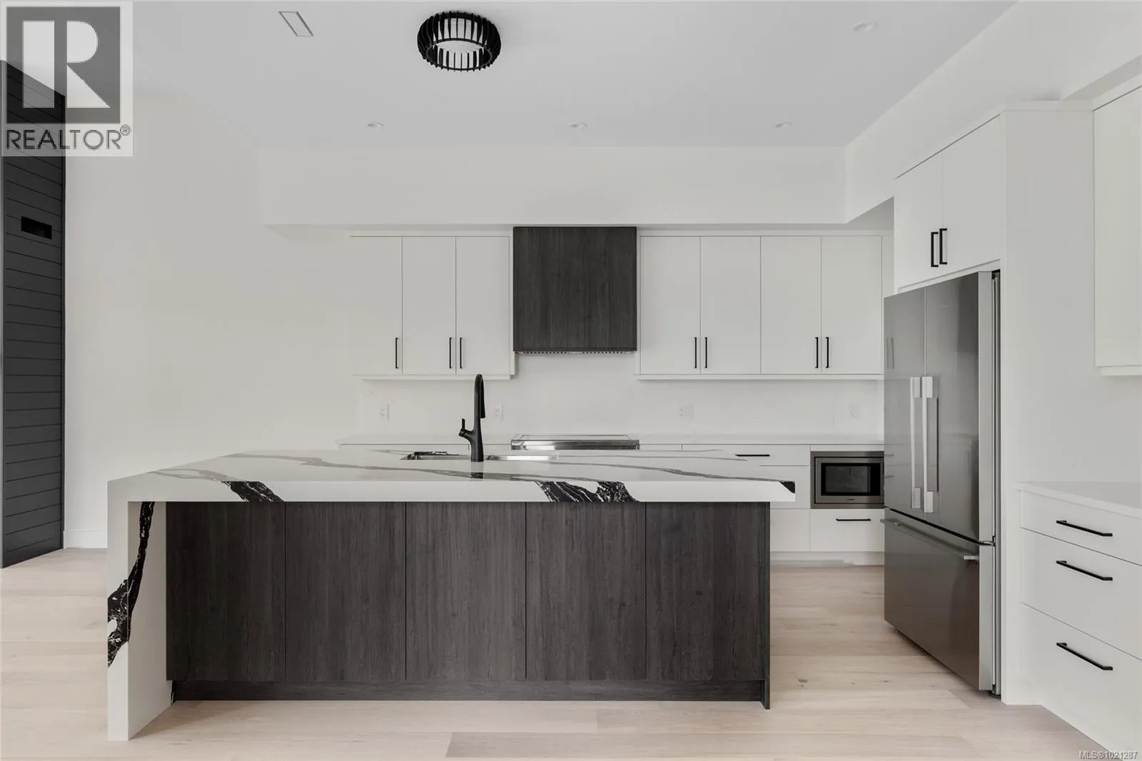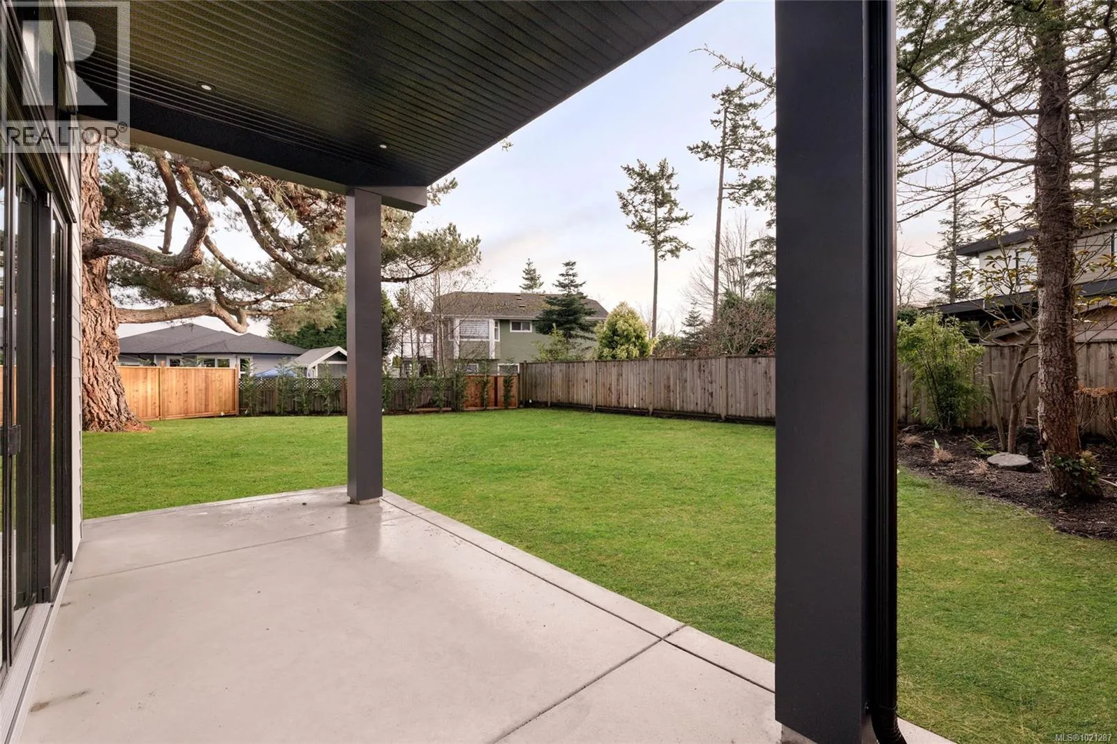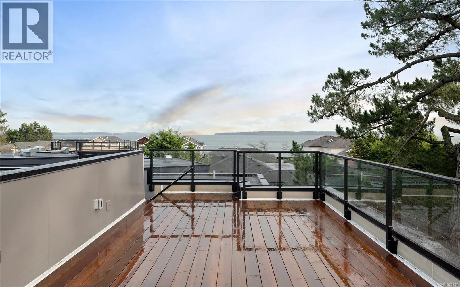 A statement in modern coastal luxury, this exceptional new build rests on a 7,244 sq ft lot in sought-after Sidney by the Sea. Located on a quiet cul-de-sac, just steps to the Lochside oceanfront promenade and minutes to the iconic Beacon Ave, this home offers an elevated and walkable lifestyle that's next to none. Expansive windows & 12' ceilings fill the Southern exposed great-room with abundant natural light. Boasting a refined gas fireplace & easy access to the beautifully landscaped & fully fenced yard, it's the perfect focal point of the home. A chef-inspired kitchen showcases high-end appliances, custom millwork and premium finishes. The versatile main-floor flex room adapts effortlessly as an office, media space, fitness studio or a comfortable 4th bedroom. Upstairs, a serene primary suite features soaring ceilings and a spa-inspired ensuite. A private rooftop patio captures sweeping ocean views and is ideal for elegant entertaining. (id:27476)