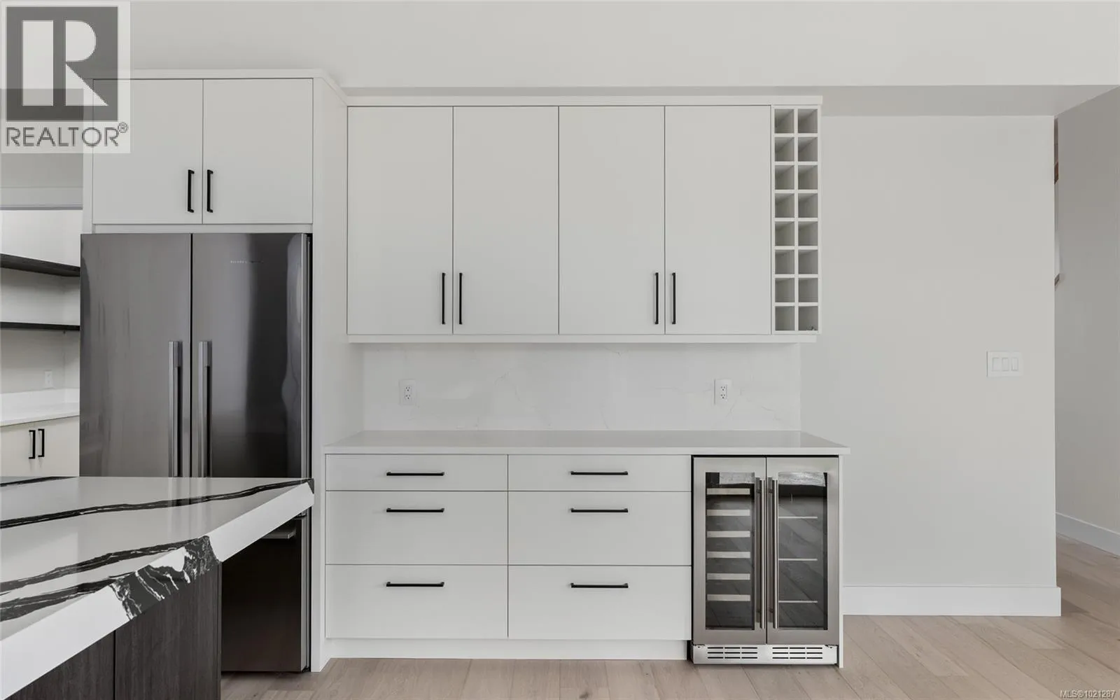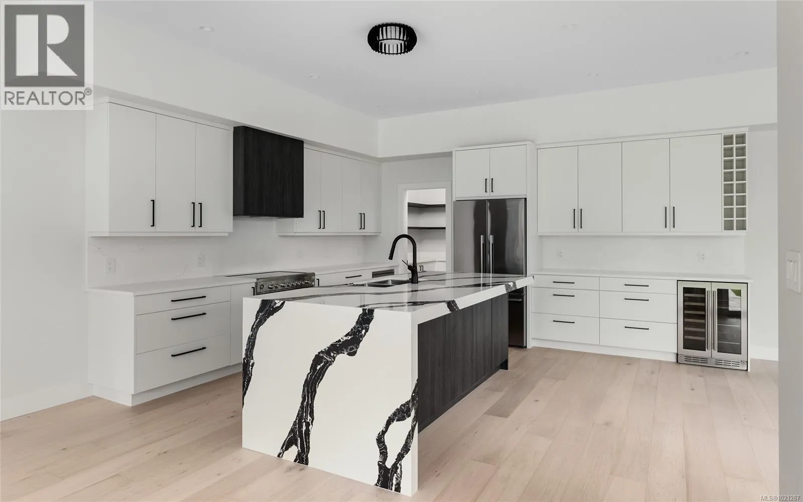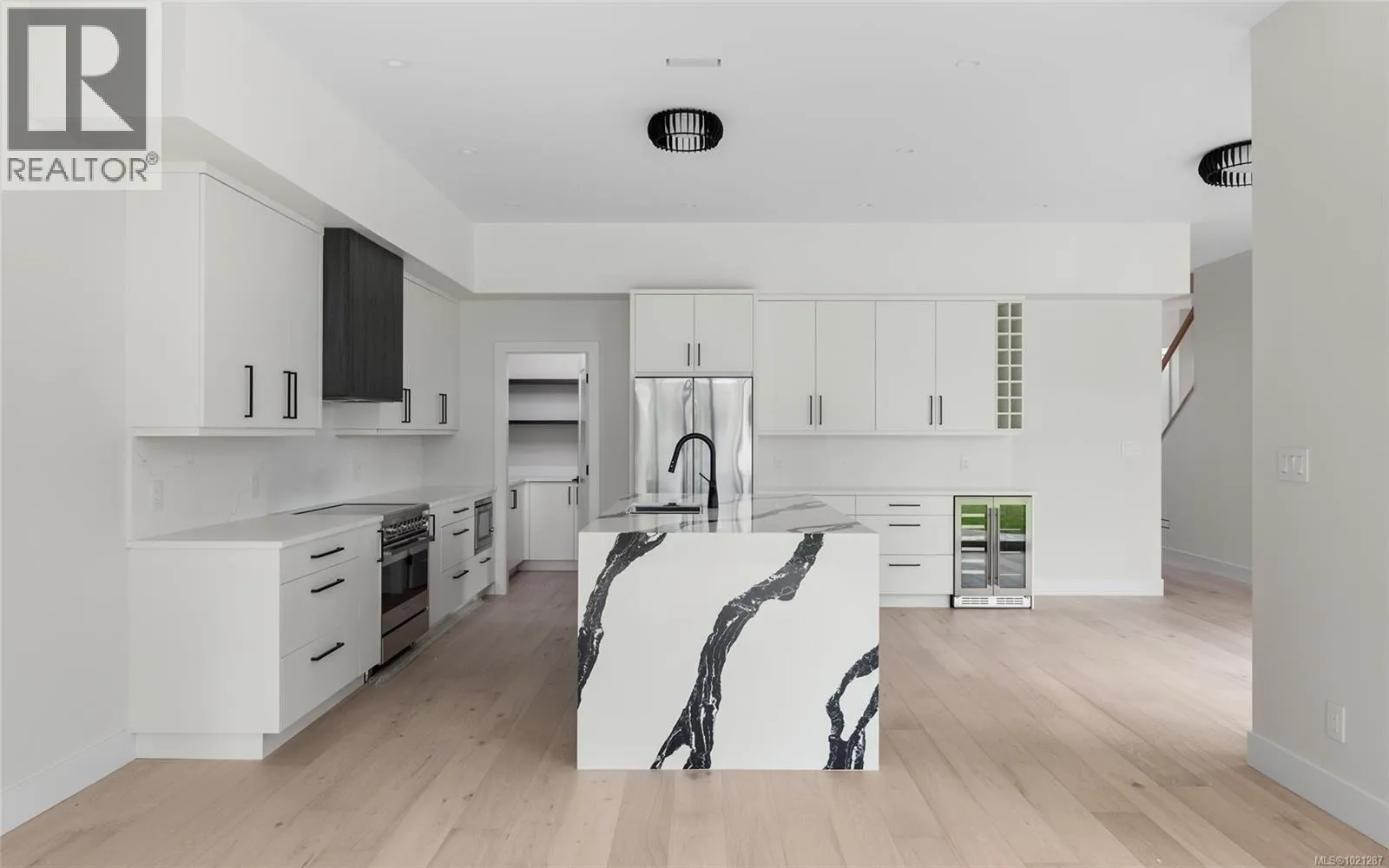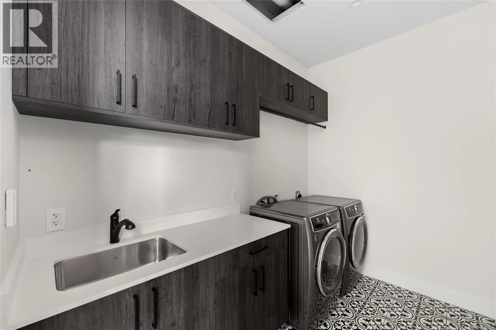 A statement in modern coastal luxury, this exceptional new build rests on a 7,244 sq ft lot in sought-after Sidney by the Sea. Located on a quiet cul-de-sac, just steps to the Lochside oceanfront promenade and minutes to the iconic Beacon Ave, this home offers an elevated and walkable lifestyle that's next to none. Expansive windows & 12' ceilings fill the Southern exposed great-room with abundant natural light. Boasting a refined gas fireplace & easy access to the beautifully landscaped & fully fenced yard, it's the perfect focal point of the home. A chef-inspired kitchen showcases high-end appliances, custom millwork and premium finishes. The versatile main-floor flex room adapts effortlessly as an office, media space, fitness studio or a comfortable 4th bedroom. Upstairs, a serene primary suite features soaring ceilings and a spa-inspired ensuite. A private rooftop patio captures sweeping ocean views and is ideal for elegant entertaining. (id:27476)