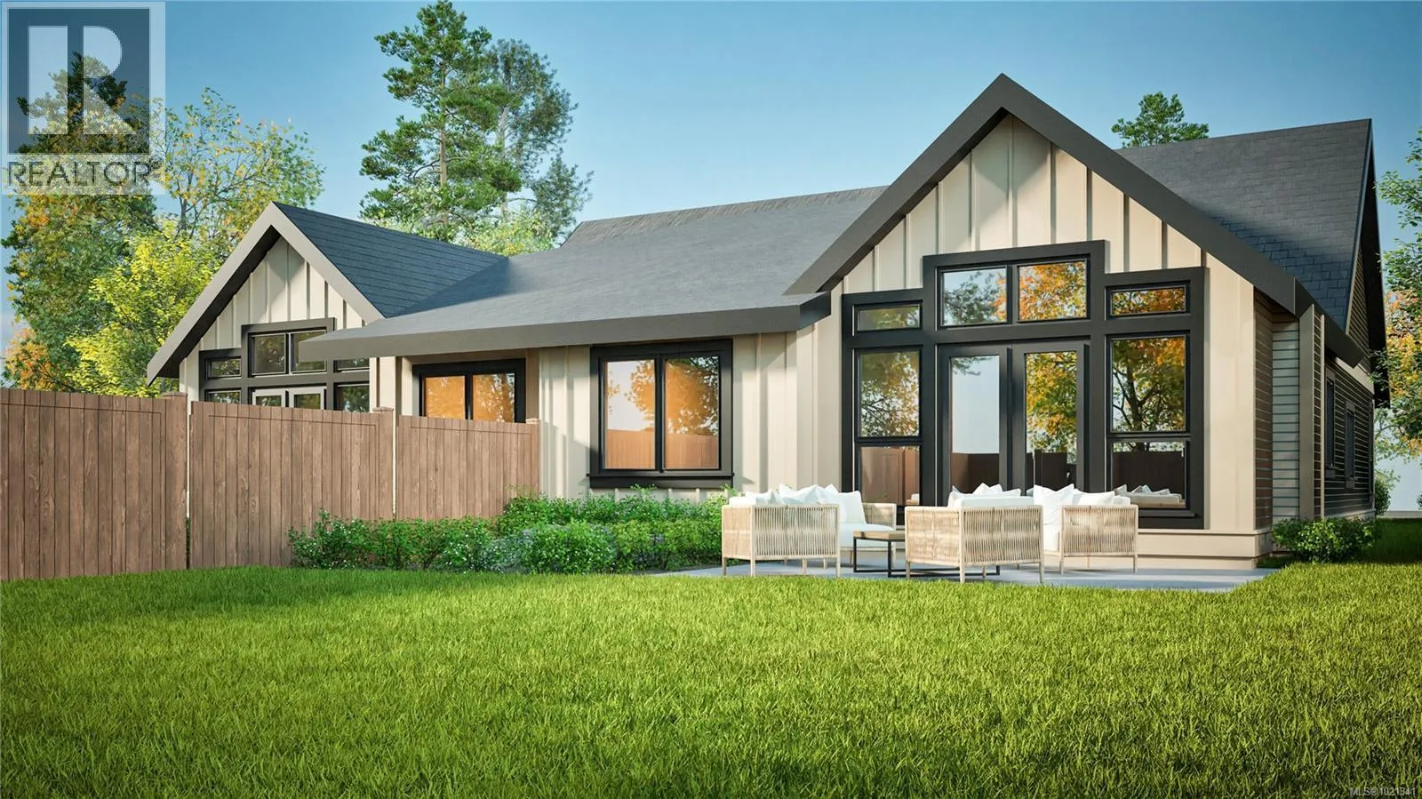 This brand new 3-bed, 2-bath rancher offers the perfect blend of traditional charm and modern design. Featuring a spacious open-concept layout, vaulted ceilings, and oversized windows, the home is filled with natural light and a sense of airiness. The gourmet kitchen is a standout, with shaker cabinetry, soft-close doors, SS KitchenAid appliances, gas range, and a large island â perfect for both cooking and entertaining. The primary suite boasts a luxurious ensuite and walk-in closet. Additional highlights include a natural gas fireplace, wide-plank hardwood floors, and energy-efficient heat pump with A/C. Outdoors, enjoy a low-maintenance yard with a beautiful patio, 6-foot cedar fencing, irrigation, and gas hookup for BBQ. The property also features a single-car garage and heated crawl space. Located in a highly sought-after cul-de-sac, just steps to beaches, shops, restaurants, and transit, with BC Ferries and the airport a short drive away. An incredible opportunity for a brand-new home! (id:27476)