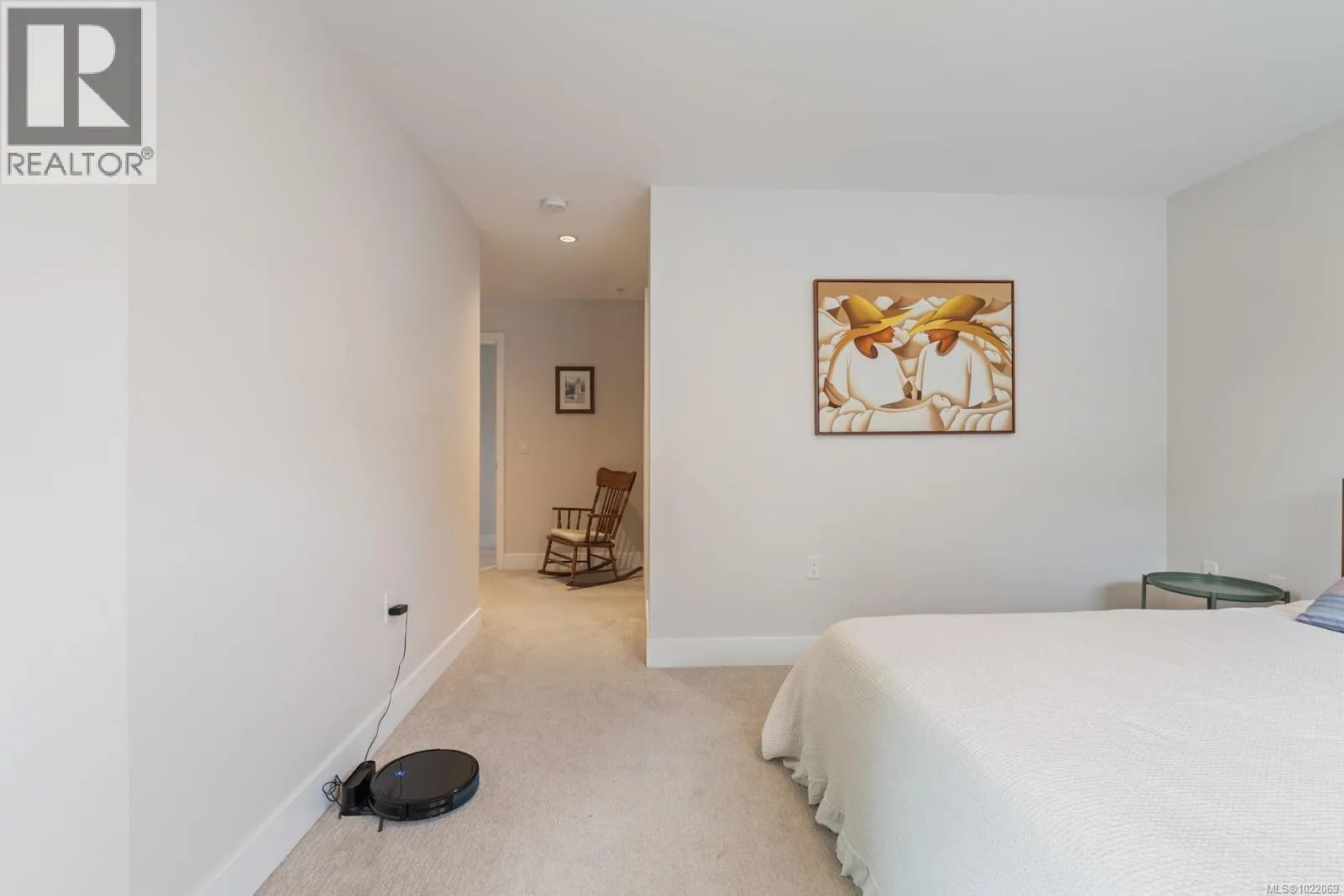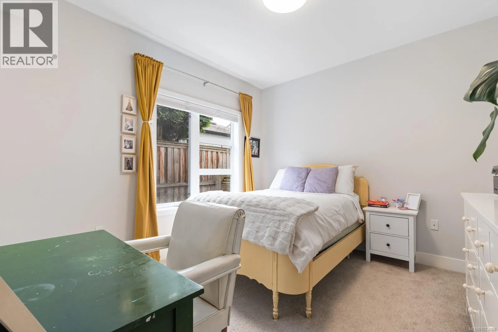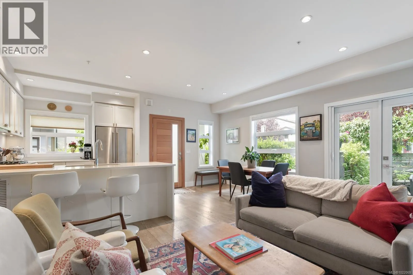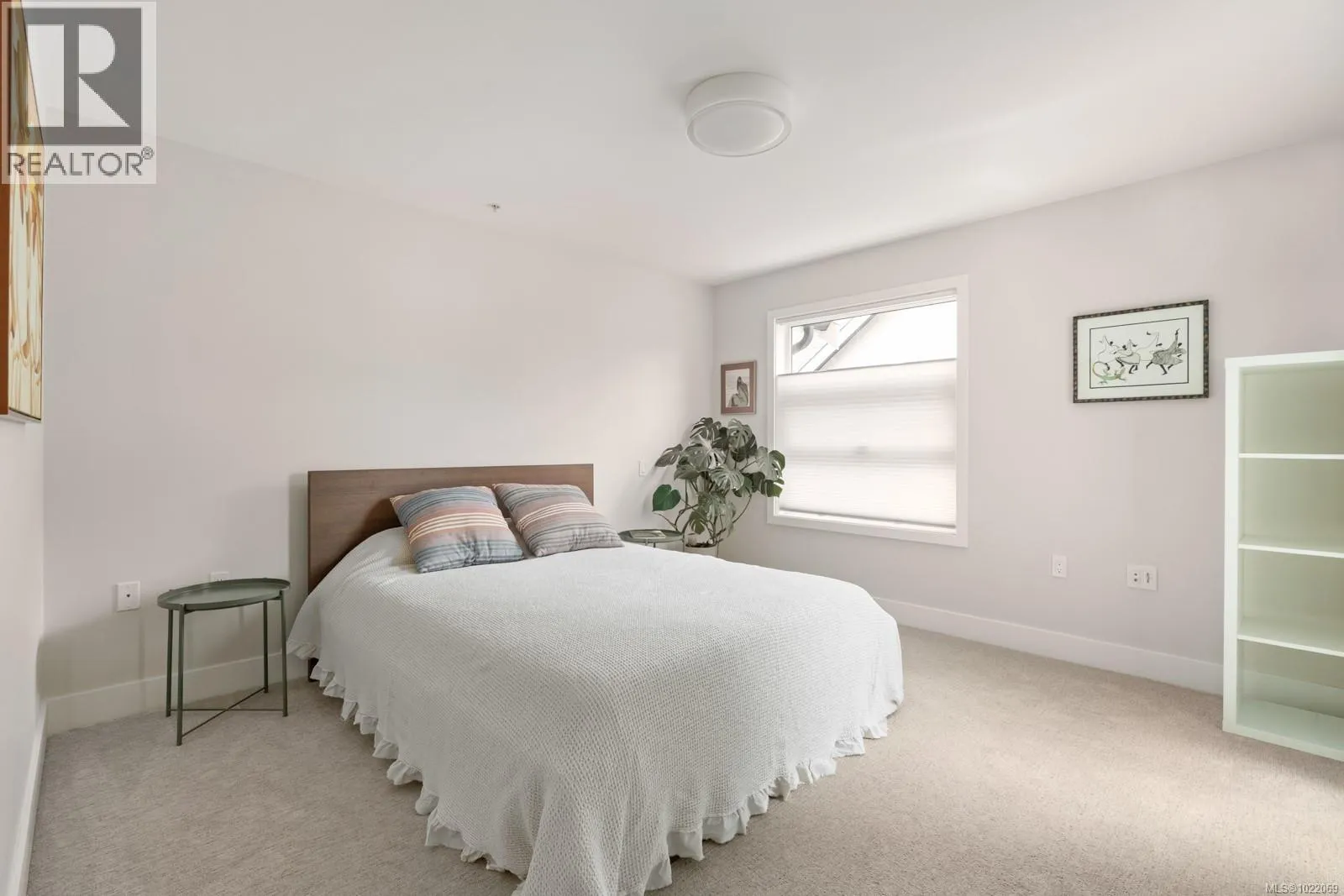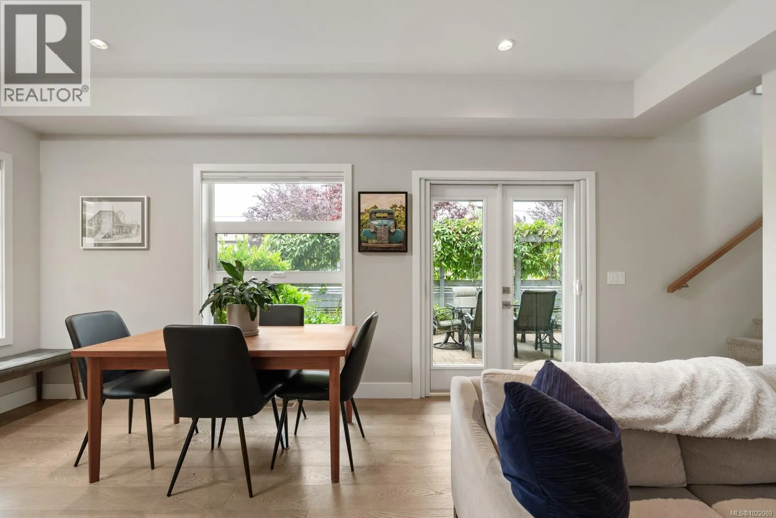 Welcome to Seahaven, a locally inspired boutique development in an unparalleled Sidney location. Townhome 7 is a desirable end unit, and is one of only 4 with the large ground lvl side patio. Faultless features include wood flooring, high ceilings, EV-wired garages and more. On the main, a designer kitchen is fitted with chic white cabinetry, quartz counters and upscale SS appliances w/gas range. The open concept living/dining is flooded with natural light, and boasts cozy gas FP & french doors leading to the private patio. A good sized bedroom, laundry room and 3P bathroom completes. *This level is also wheelchair accessible*. Upstairs, you will find a lavish primary suite w/walk in closet, sumptuous 4P ensuite, and access to your private deck. Down the hall, another large bedroom and 4P bathroom. Lastly, a massive flex space lends itself to either a family room or bedroom. Located steps to shops, dining & parks, this is your opportunity to live the urban seaside lifestyle. (id:27476)