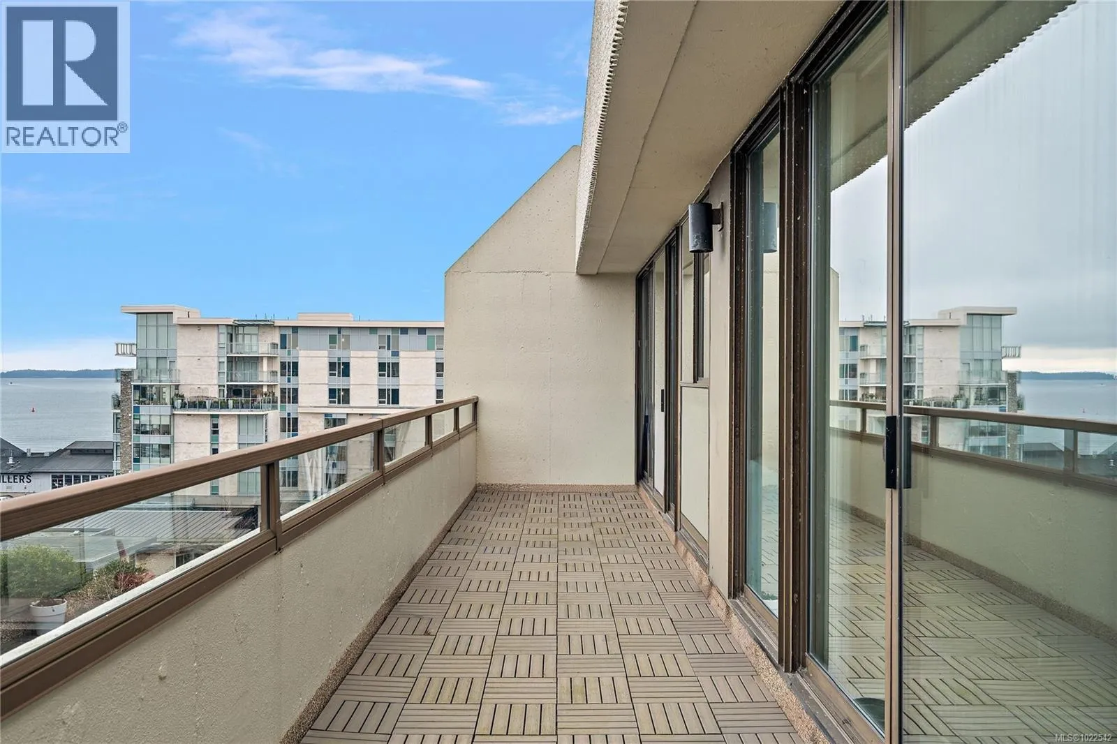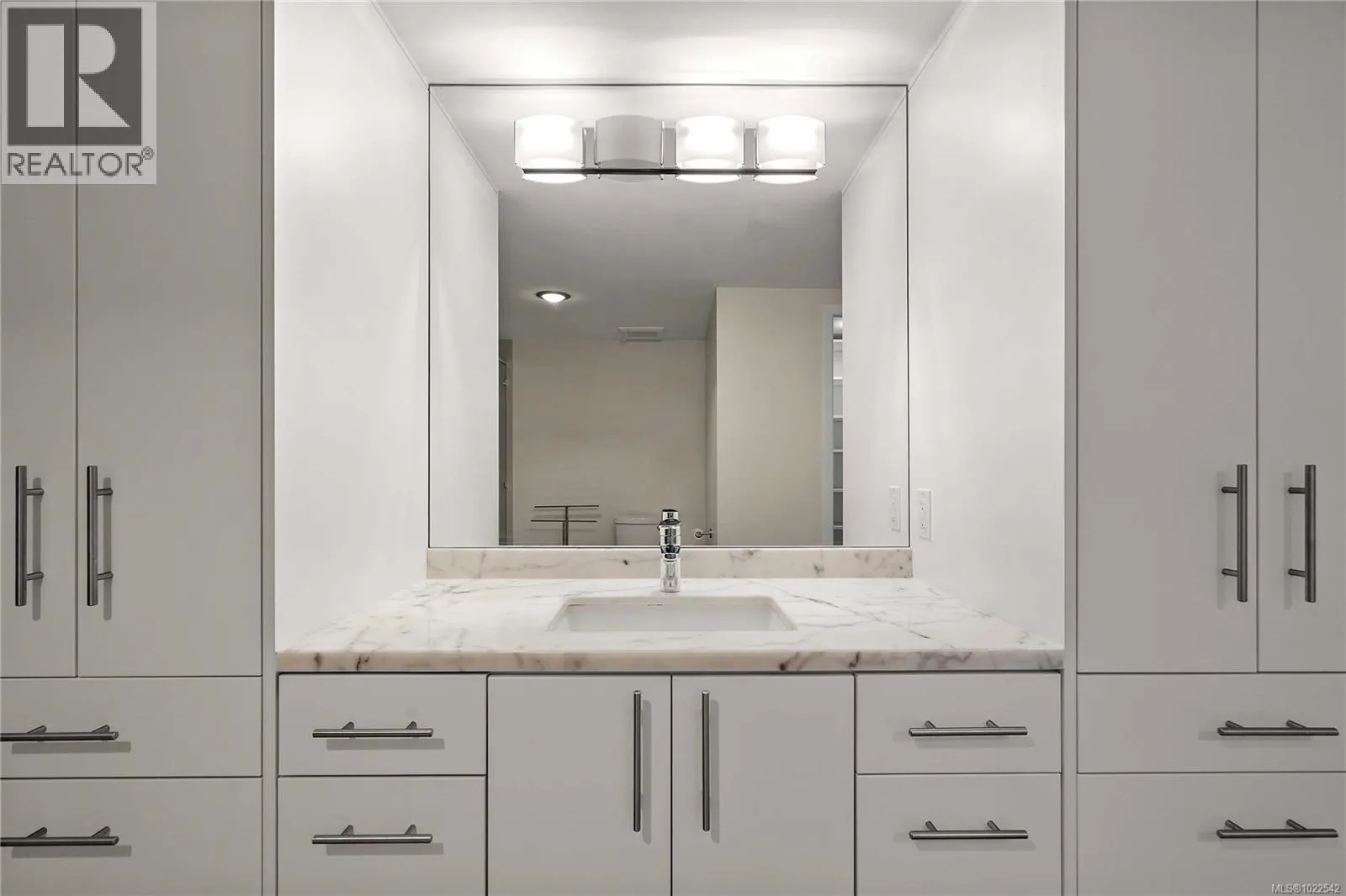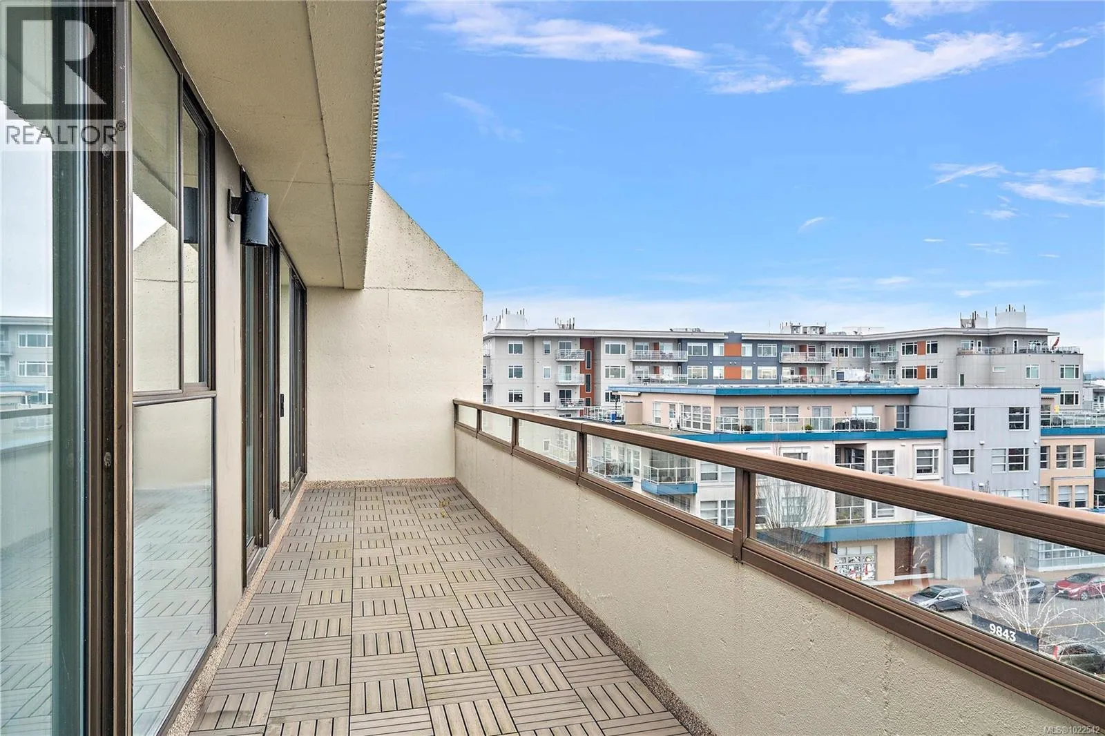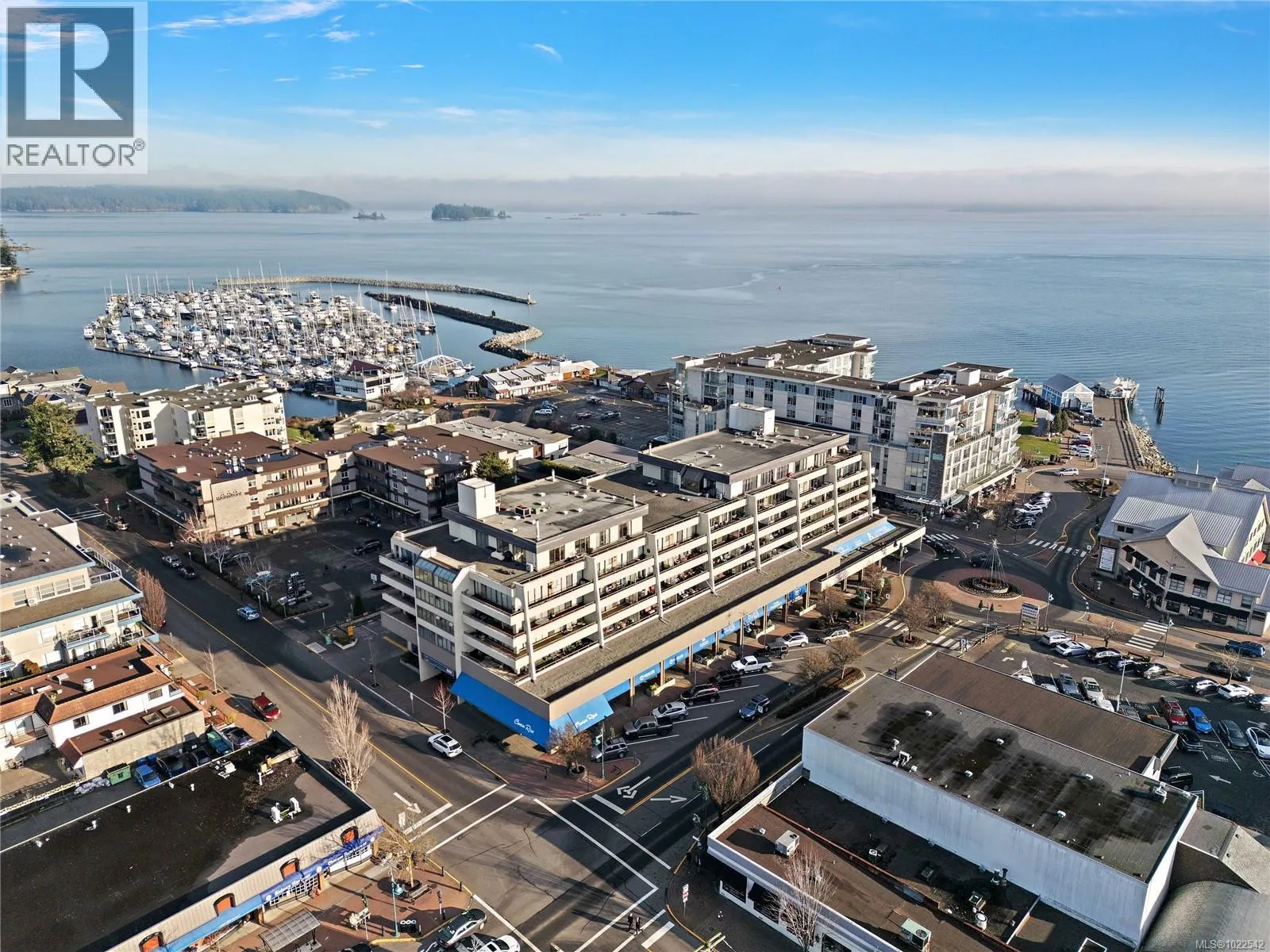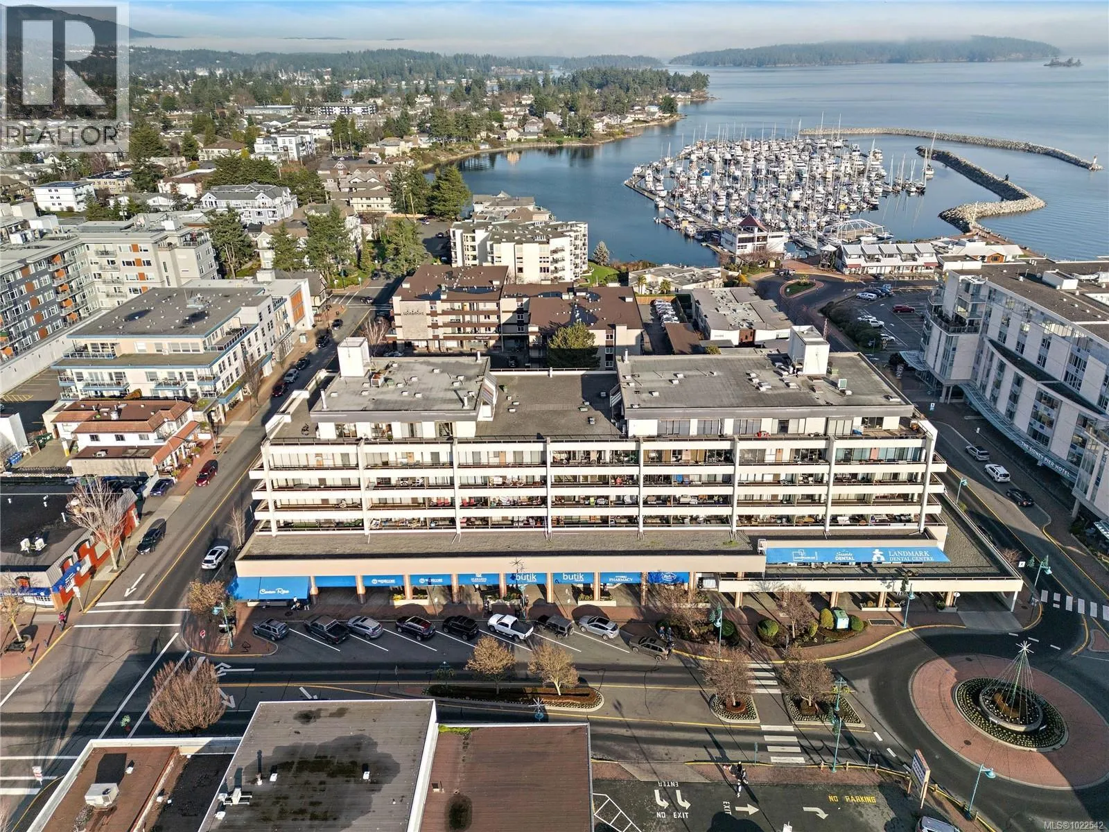 Welcome to 503-9805 Second Street, an updated fifth-floor water view condo in the heart of downtown Sidney. This spacious 2 bedroom, 2 bathroom home offers 1,221 sq. ft. of comfortable living and features a large 200 sq. ft. deckâperfect for taking in marina and ocean views. Located in the popular Landmark Building, a well-constructed concrete building just one block from the waterfront, this condo is ideally positioned to enjoy all that Sidney has to offer, including exceptional shopping, dining, and seaside strolls. The large primary suite features a 3-piece ensuite with ample cabinetry and a generous walk-in closet with organizer. The updated kitchen offers abundant cupboard space, solid surface countertops, and a tile backsplash, while both bathrooms have been updated with elegant marble countertops. Additional highlights include in-suite laundry with storage, secure underground parking, bike storage, separate storage locker, a building library, and a welcoming lobby ideal for entertaining or meetings. Enjoy the best of the Sidney-by-the-Sea lifestyle, with everything you need right at your doorstep. (id:27476)