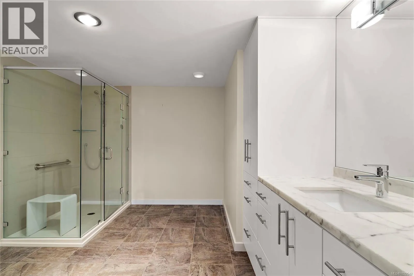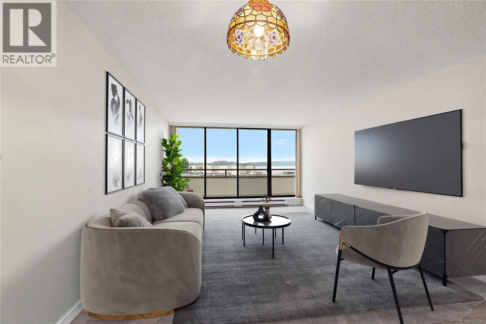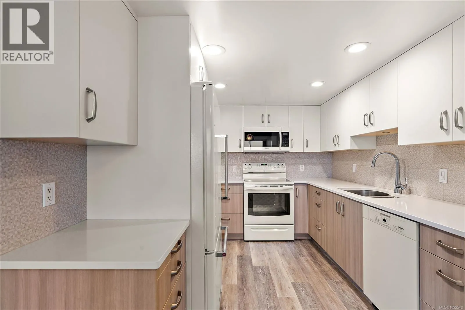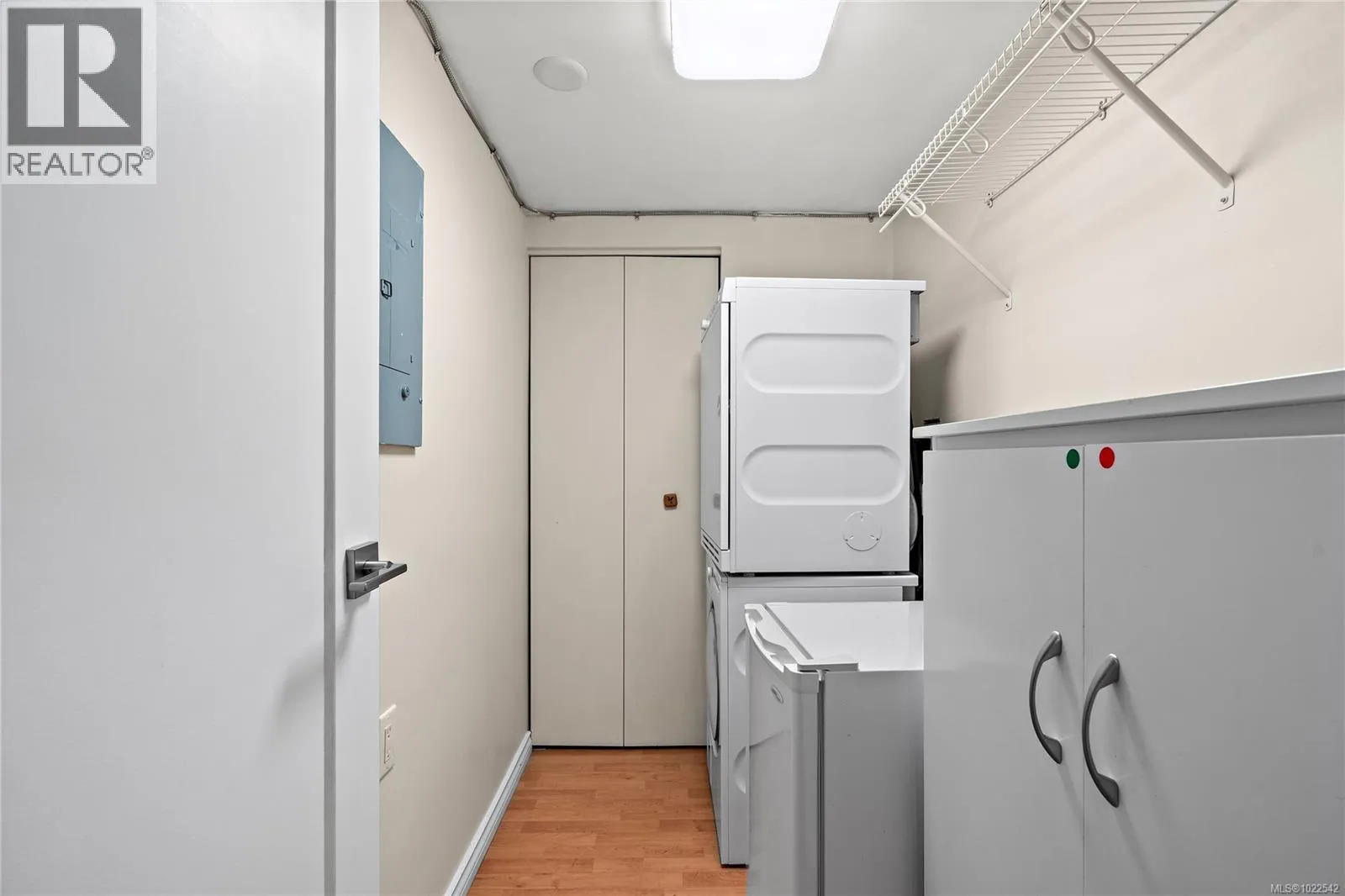 Welcome to 503-9805 Second Street, an updated fifth-floor water view condo in the heart of downtown Sidney. This spacious 2 bedroom, 2 bathroom home offers 1,221 sq. ft. of comfortable living and features a large 200 sq. ft. deckâperfect for taking in marina and ocean views. Located in the popular Landmark Building, a well-constructed concrete building just one block from the waterfront, this condo is ideally positioned to enjoy all that Sidney has to offer, including exceptional shopping, dining, and seaside strolls. The large primary suite features a 3-piece ensuite with ample cabinetry and a generous walk-in closet with organizer. The updated kitchen offers abundant cupboard space, solid surface countertops, and a tile backsplash, while both bathrooms have been updated with elegant marble countertops. Additional highlights include in-suite laundry with storage, secure underground parking, bike storage, separate storage locker, a building library, and a welcoming lobby ideal for entertaining or meetings. Enjoy the best of the Sidney-by-the-Sea lifestyle, with everything you need right at your doorstep. (id:27476)