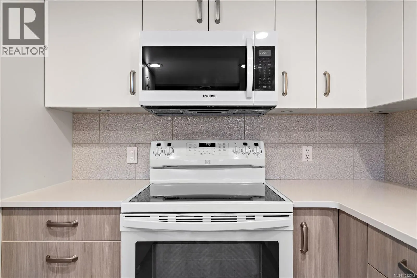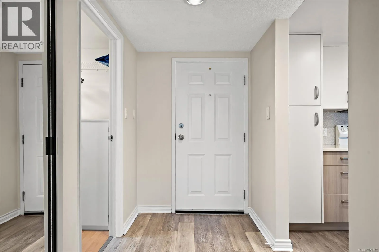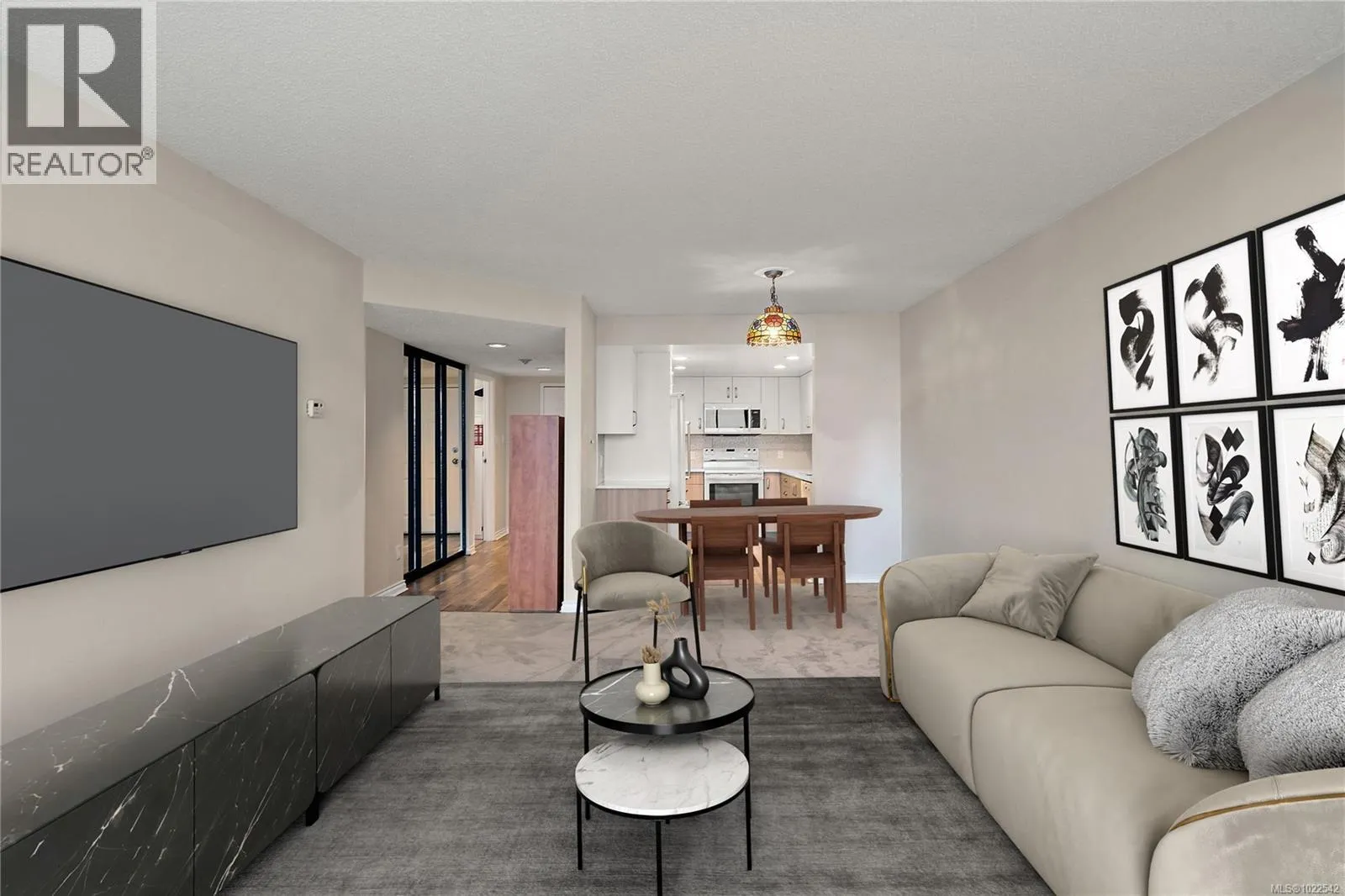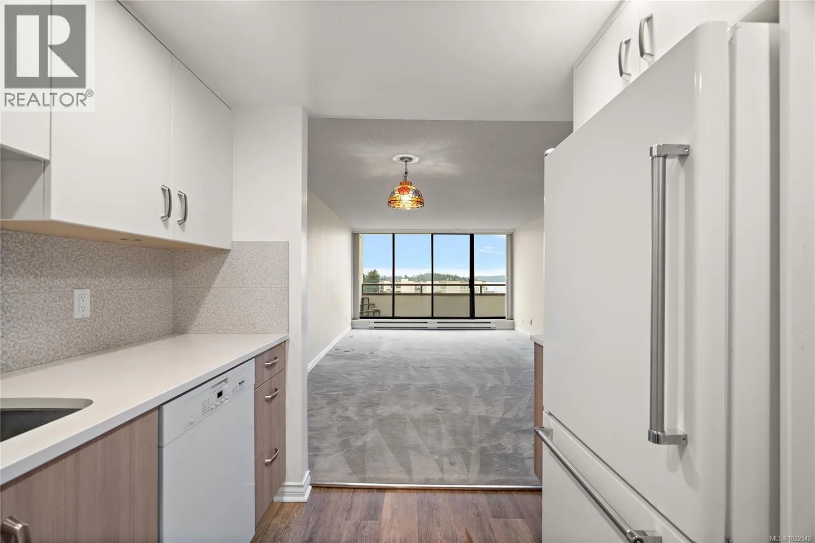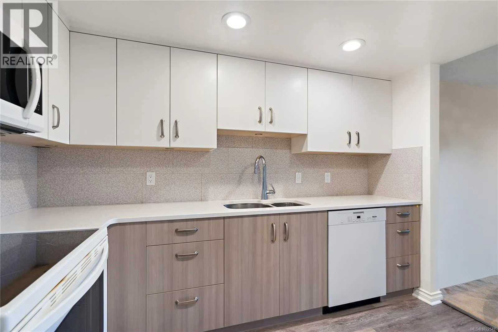 Welcome to 503-9805 Second Street, an updated fifth-floor water view condo in the heart of downtown Sidney. This spacious 2 bedroom, 2 bathroom home offers 1,221 sq. ft. of comfortable living and features a large 200 sq. ft. deckâperfect for taking in marina and ocean views. Located in the popular Landmark Building, a well-constructed concrete building just one block from the waterfront, this condo is ideally positioned to enjoy all that Sidney has to offer, including exceptional shopping, dining, and seaside strolls. The large primary suite features a 3-piece ensuite with ample cabinetry and a generous walk-in closet with organizer. The updated kitchen offers abundant cupboard space, solid surface countertops, and a tile backsplash, while both bathrooms have been updated with elegant marble countertops. Additional highlights include in-suite laundry with storage, secure underground parking, bike storage, separate storage locker, a building library, and a welcoming lobby ideal for entertaining or meetings. Enjoy the best of the Sidney-by-the-Sea lifestyle, with everything you need right at your doorstep. (id:27476)