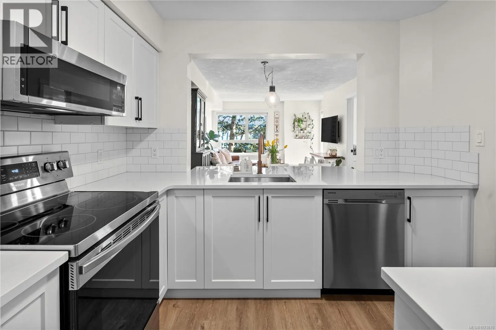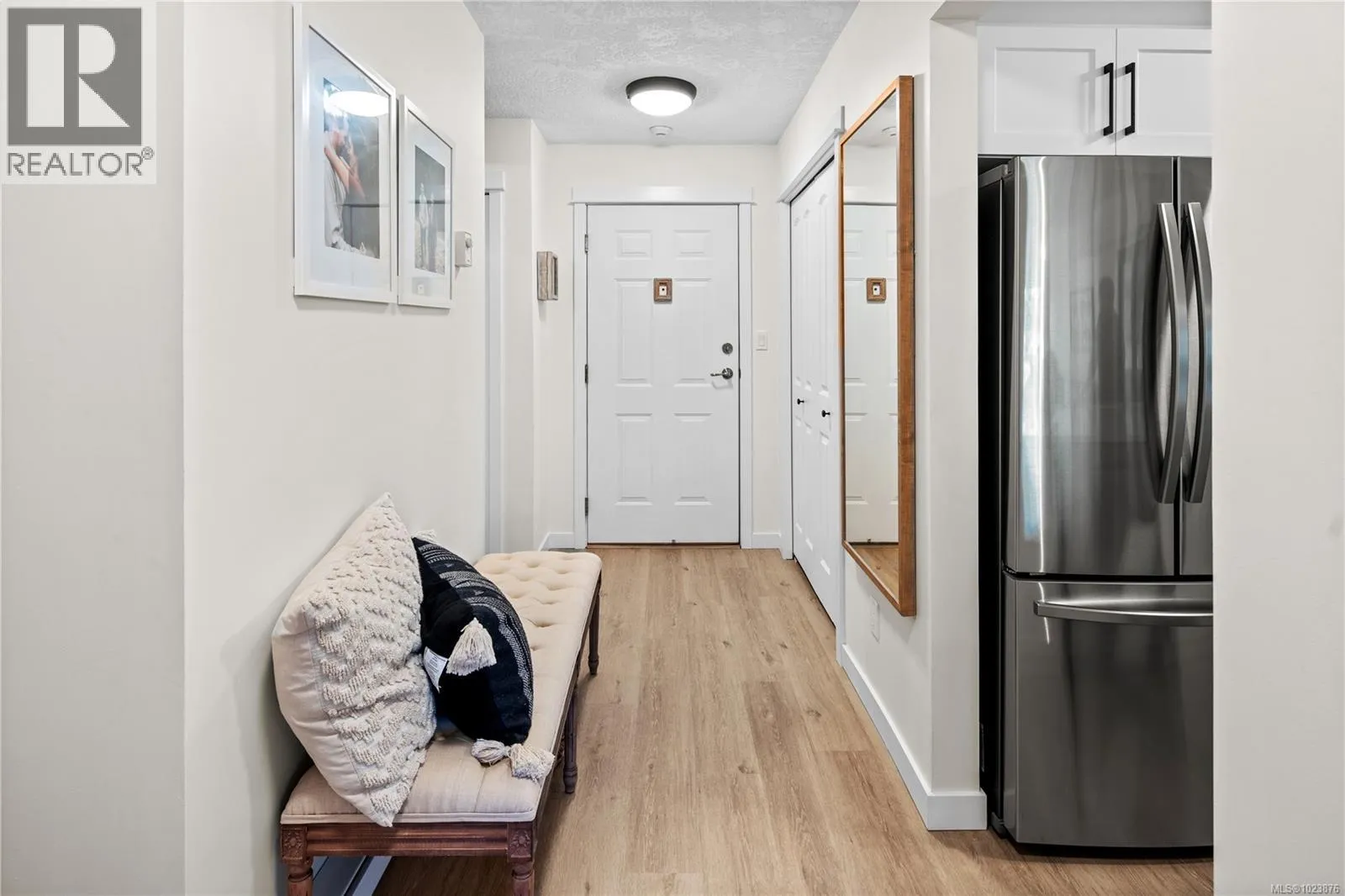 Welcome to The Lady James a well-maintained and beautifully landscaped complex nestled in the charming seaside community of Sidney. This beautifully updated 2-bedroom, 2-bath condo offers a bright, airy layout with an abundance of natural light throughout. Step inside to discover a turnkey home with brand-new flooring, a beautifully remodelled kitchen featuring stainless steel appliances, and stylishly updated bathrooms. Fully equipped in suite laundry with an abundance of storage and a balcony where you can enjoy the afternoon sun. Whether youâre hosting friends or enjoying a quiet night in, the open-concept design is perfect for both relaxing and entertaining. Enjoy the peaceful ambiance of The Lady James complex complete with a serene courtyard and tranquil pond just steps from everything Sidney has to offer. Located just steps to Sidney's charming downtown, restaurants, local boutiques, galleries, and the waterfront boardwalk. This professionally managed non smoking building also includes covered parking, storage locker, and resident workshop. (id:27476)