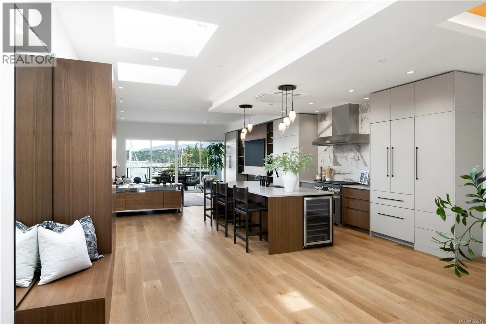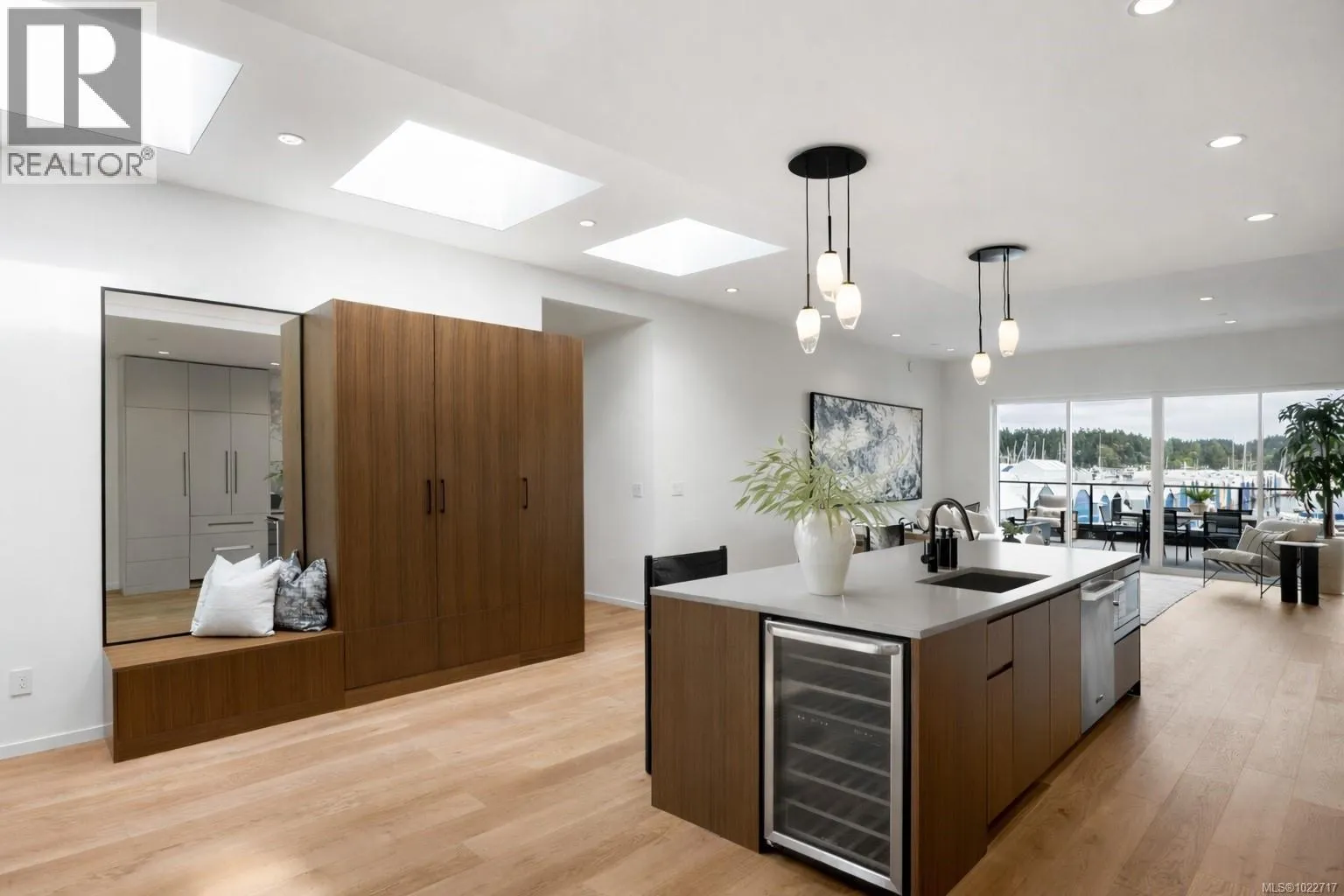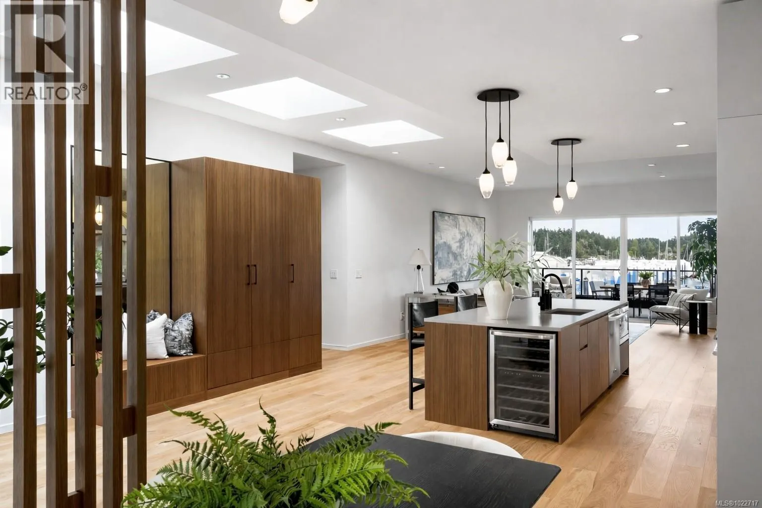 OH SAT - 1PM - 3PM - Brand-new luxury waterfront townhome in Sidney, BC, just steps from a top-tier marina, dining, and shops. Offering over 3,200 sq ft of curated living space, this home lives like a detached residence, ideal for downsizing without compromise. The main level features a full-size chefâs kitchen, dining area, gas fireplace, spacious patio, and a primary bedroom with spa-inspired ensuite. Upstairs offers a second primary suite plus two outdoor living areas, including west-facing ocean and marina views for sunset enjoyment and a southwest patio perfect for gardening. Additional highlights include a private elevator, over-height double garage with storage, and a self-contained suite ideal for guests or a professional practice. Walk to beaches, Roberts Bay and enjoy kayaking and paddleboarding from your doorstep. A rare opportunity for low-maintenance waterfront living. (id:27476)